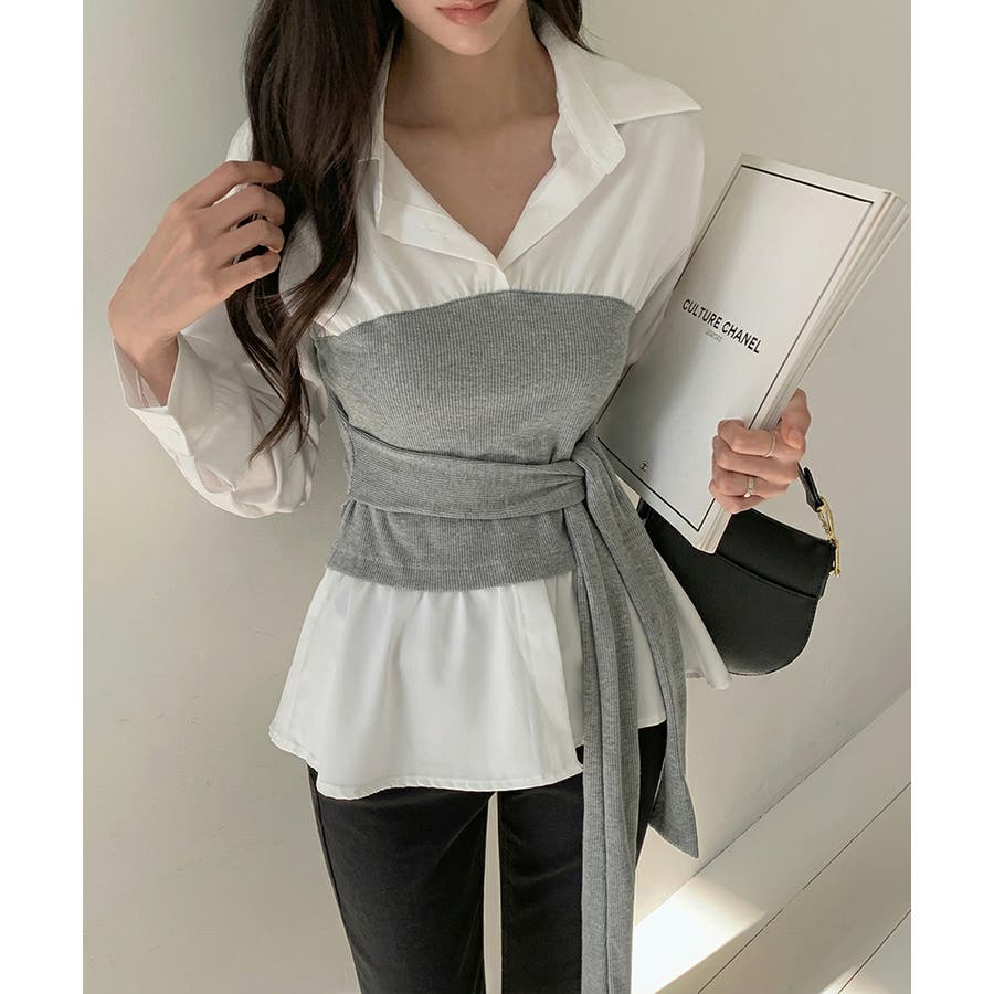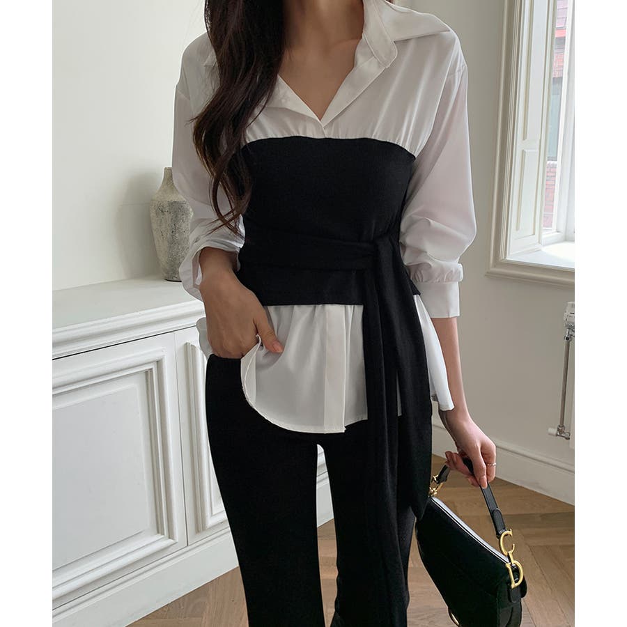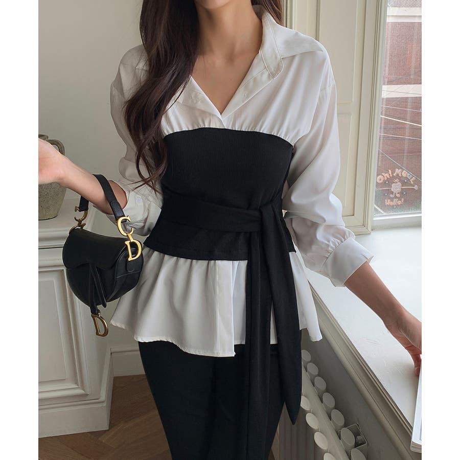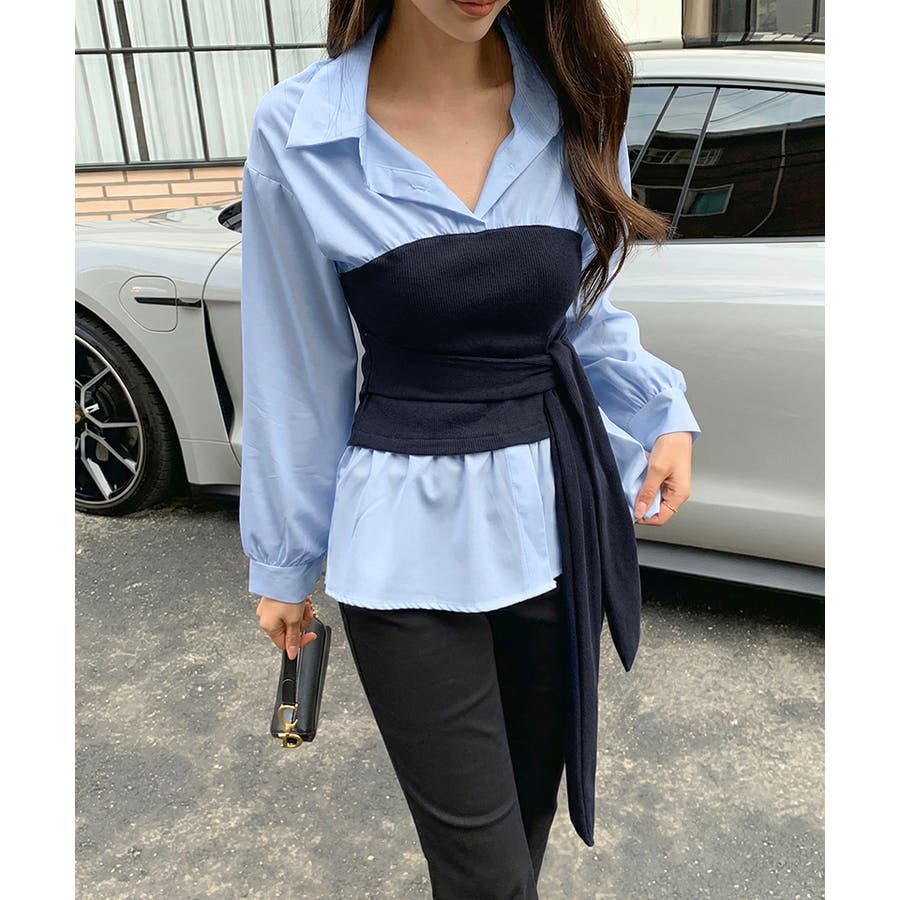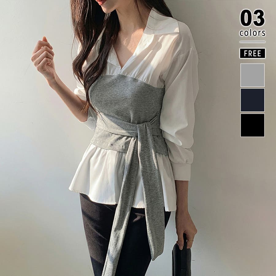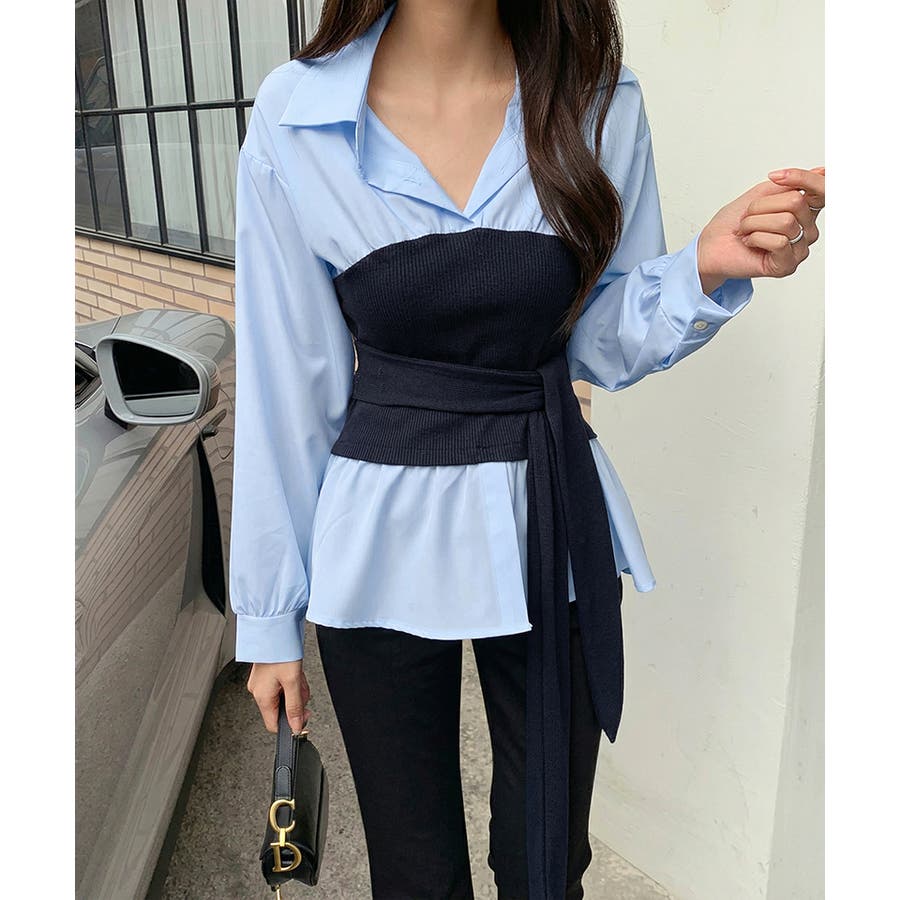 テクいらずでメリハリシルエット ビスチェドッキングシャツ コルセット風