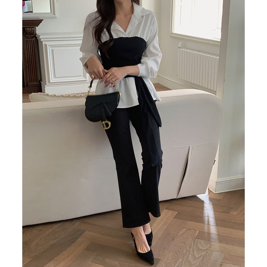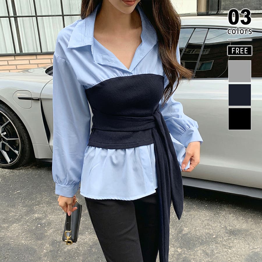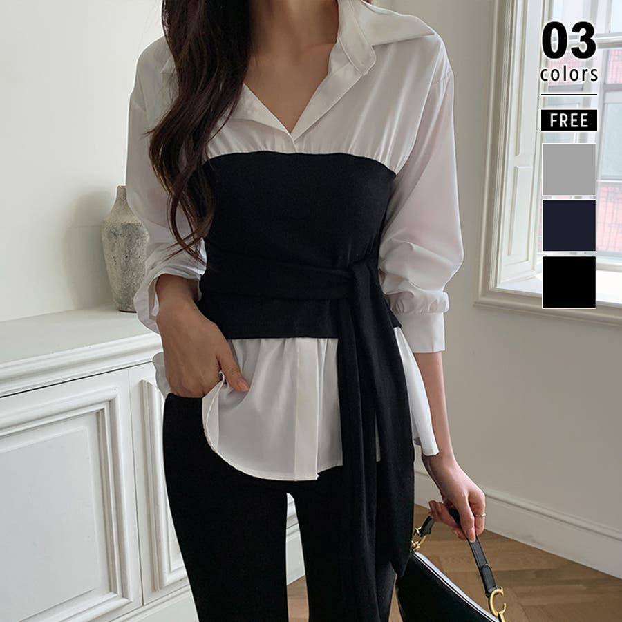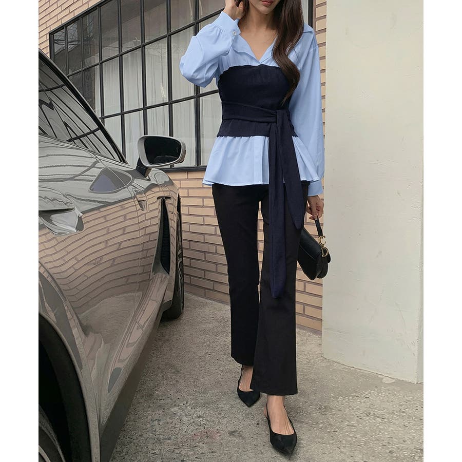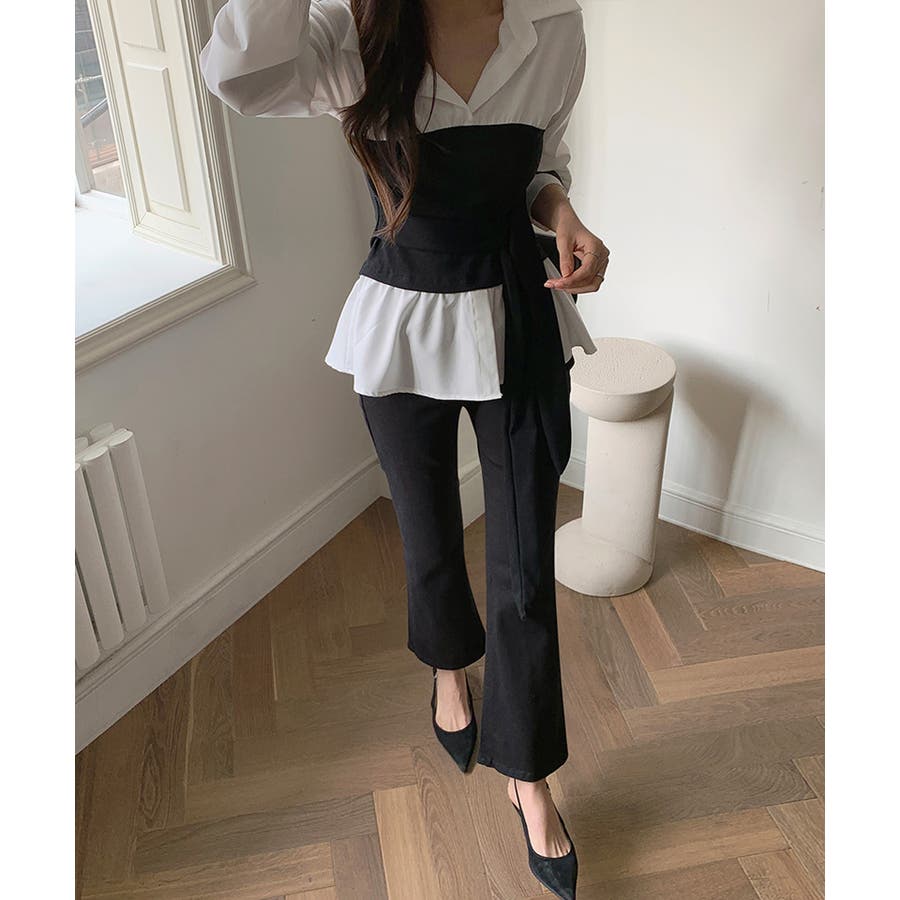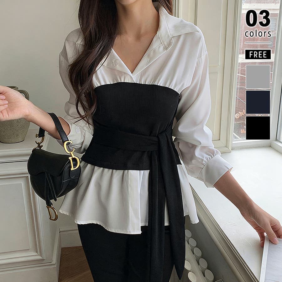 テクいらずでメリハリシルエット ビスチェドッキングシャツ コルセット風