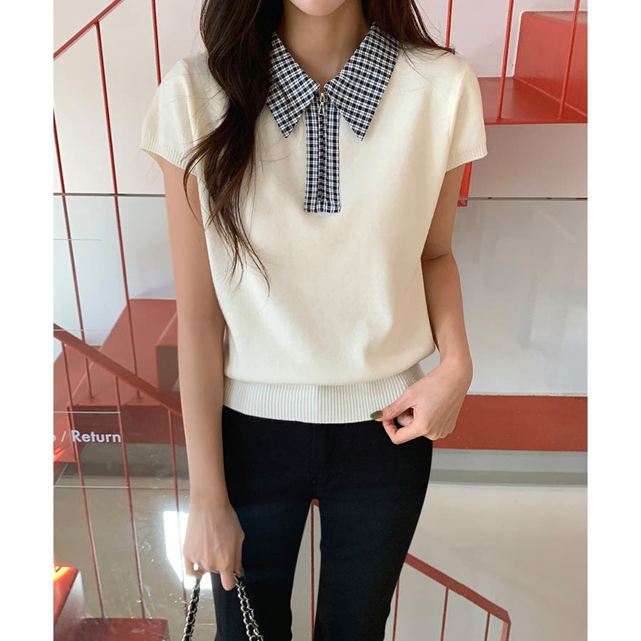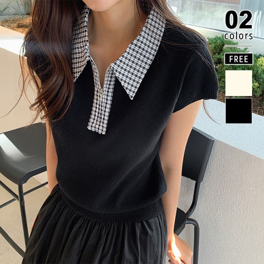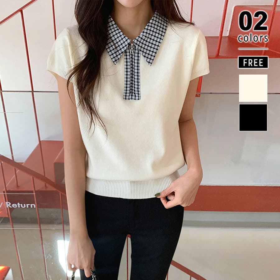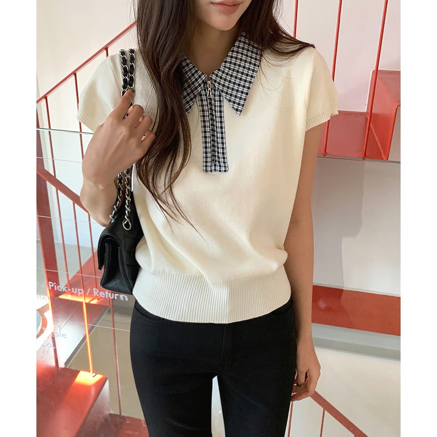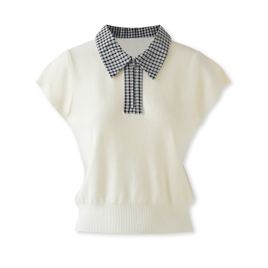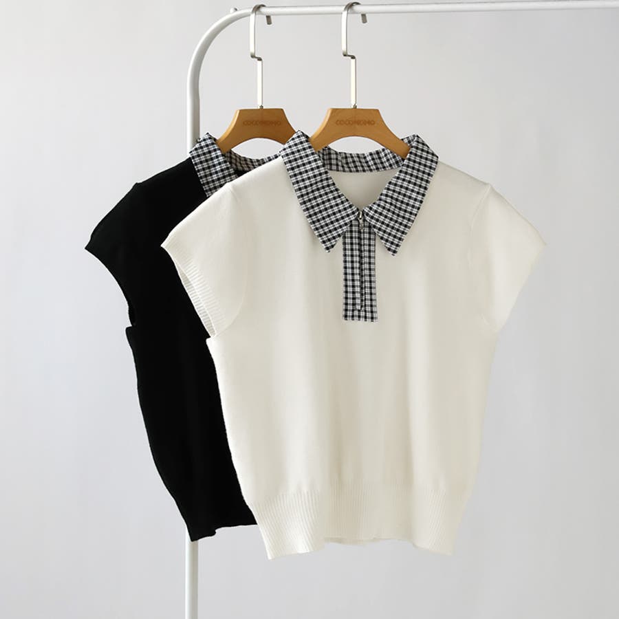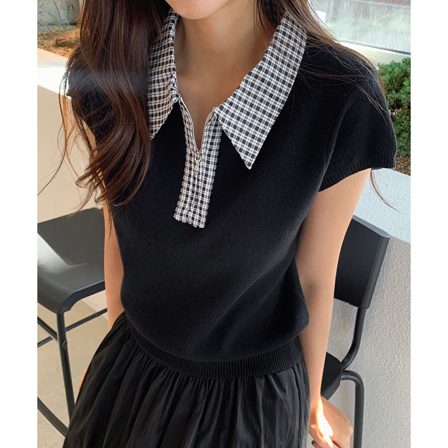 【チェック襟×ハーフジップ】 ポロシャツ サマーニット