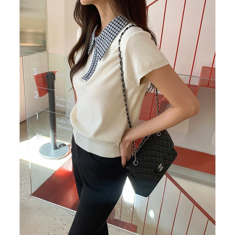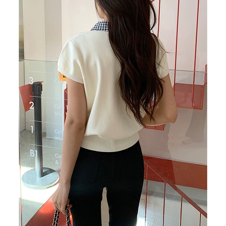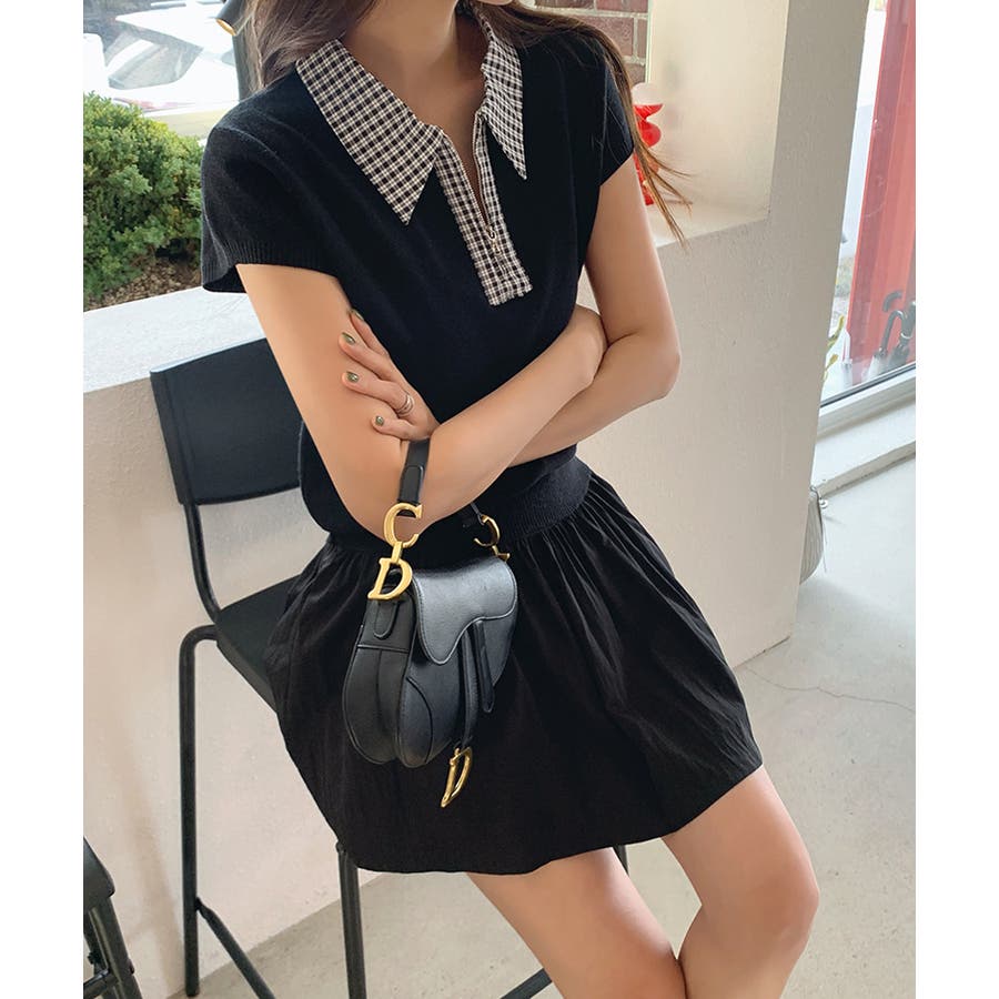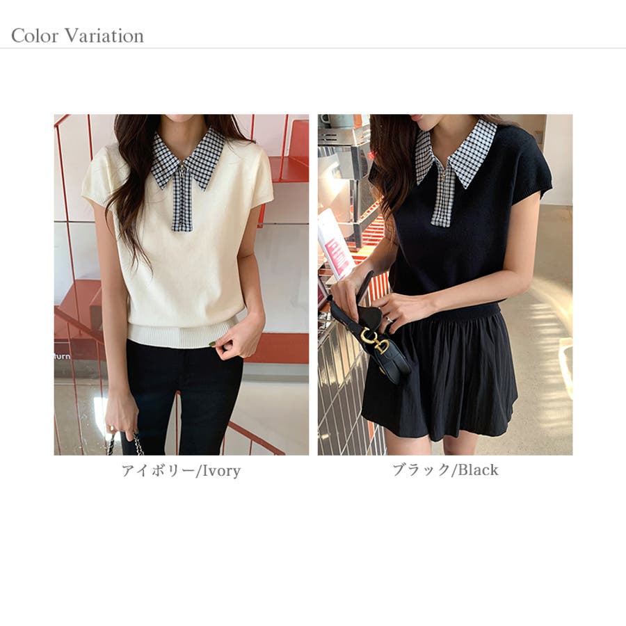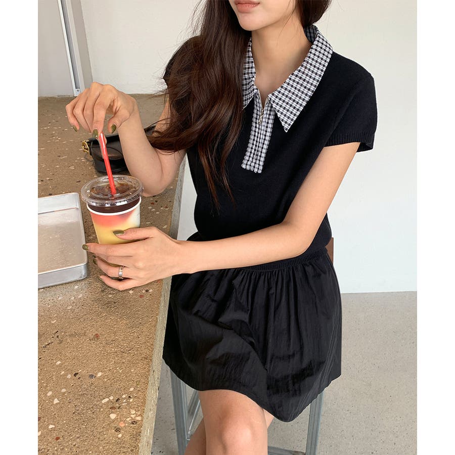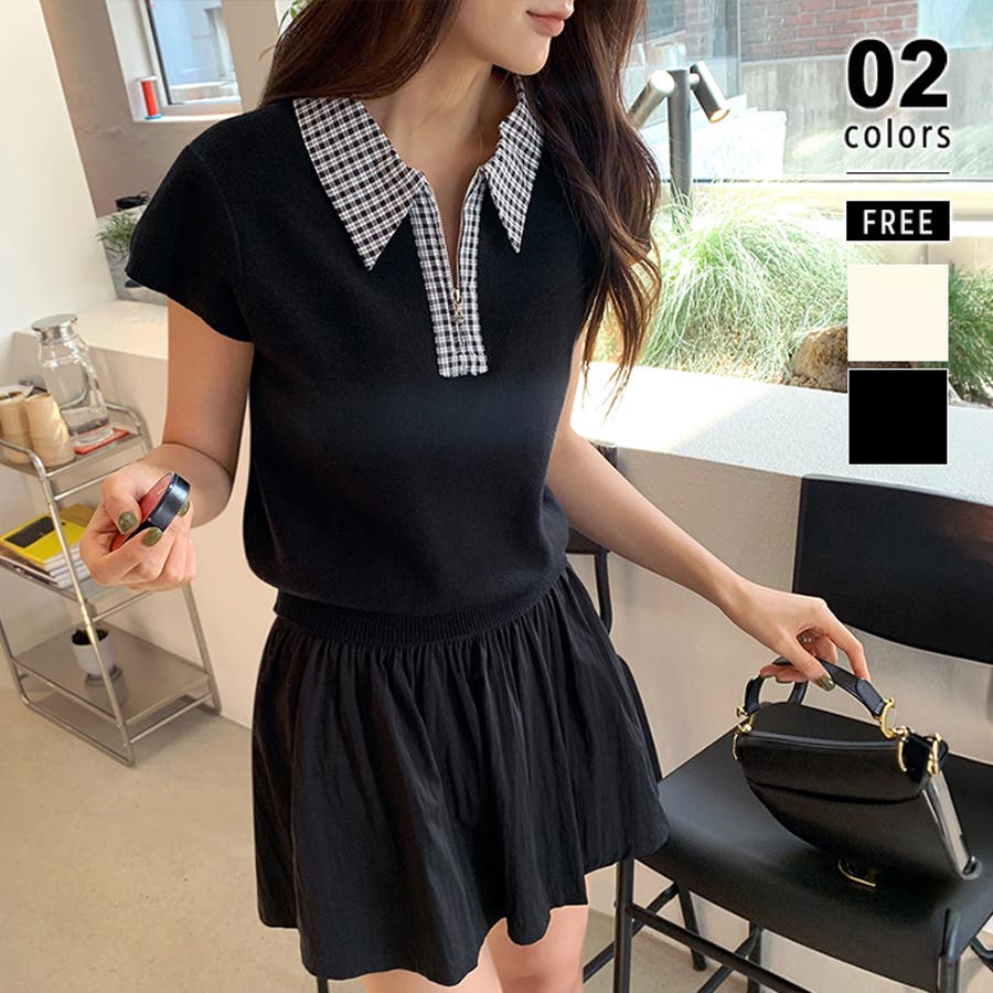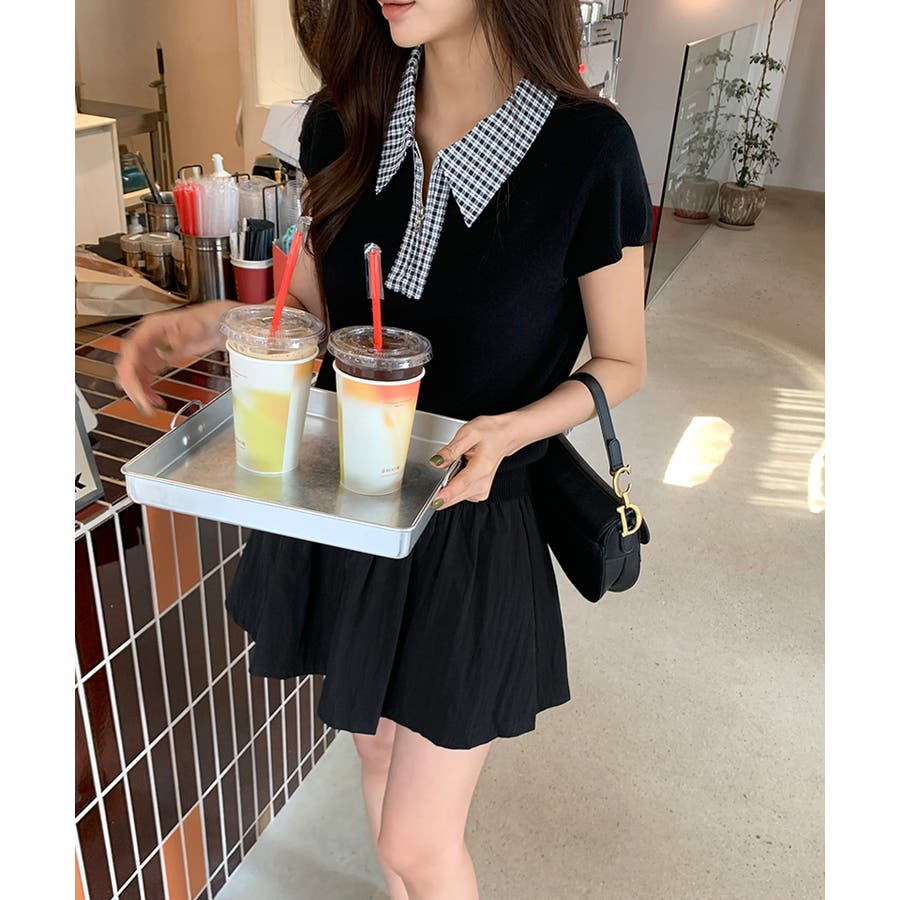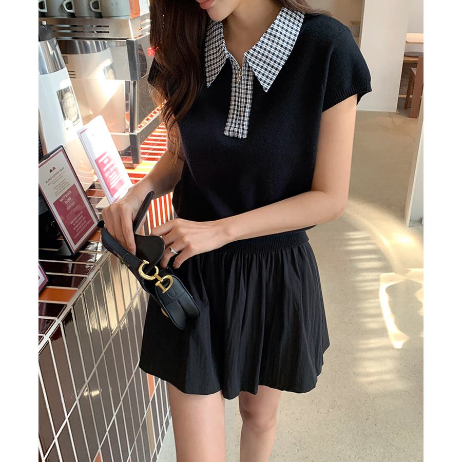 【チェック襟×ハーフジップ】 ポロシャツ サマーニット