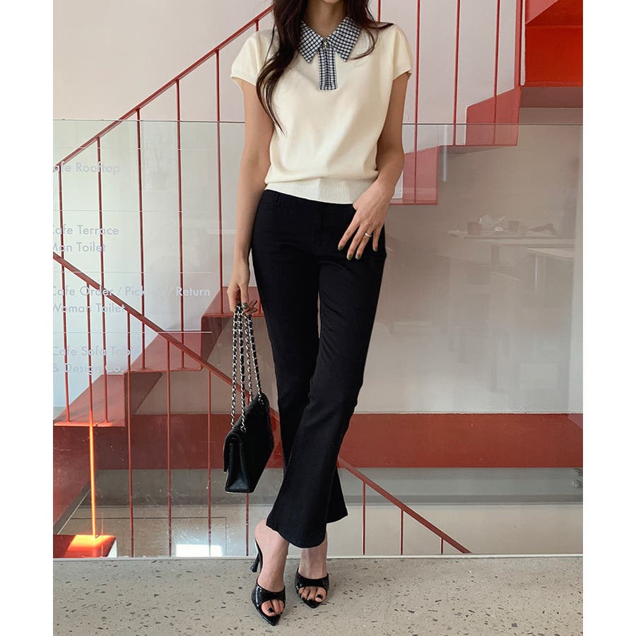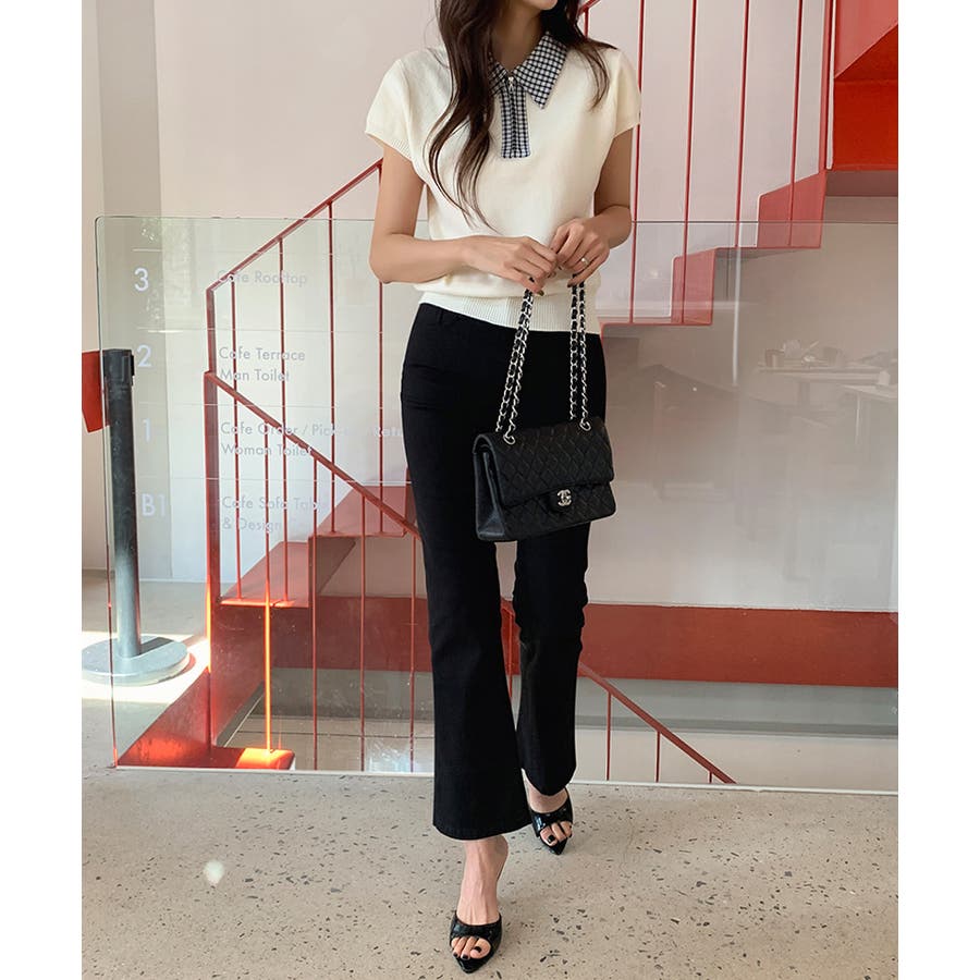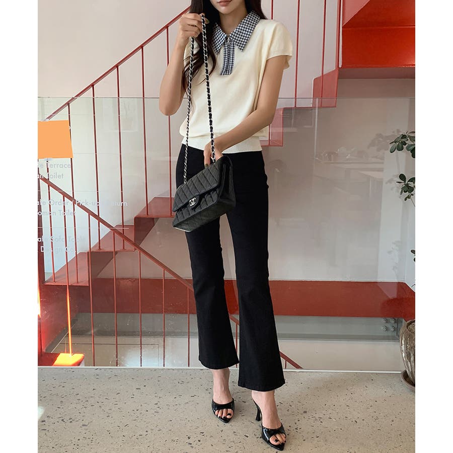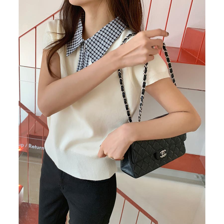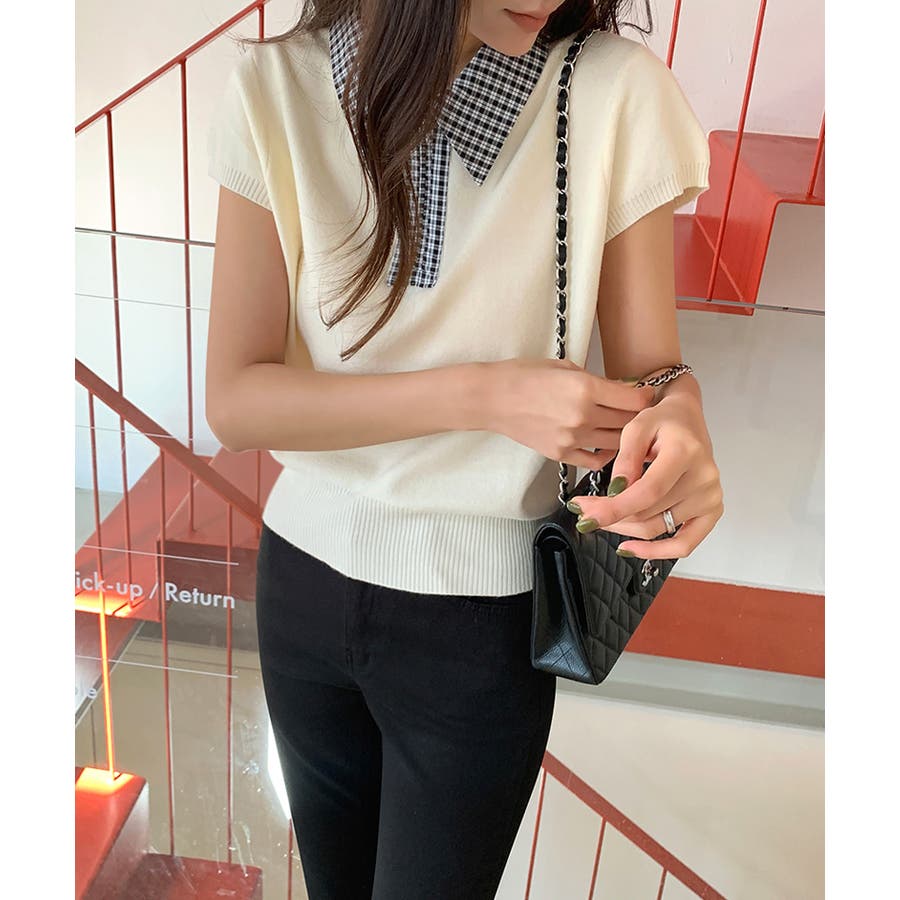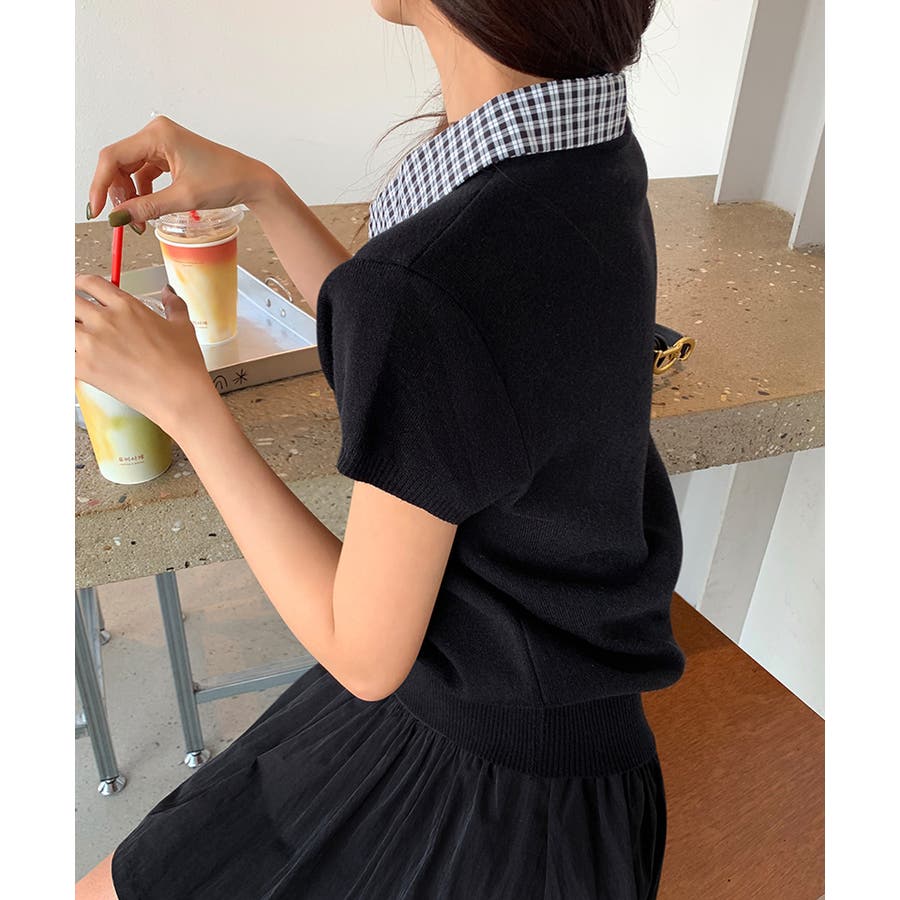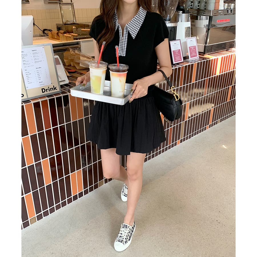 【チェック襟×ハーフジップ】 ポロシャツ サマーニット