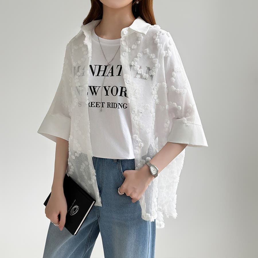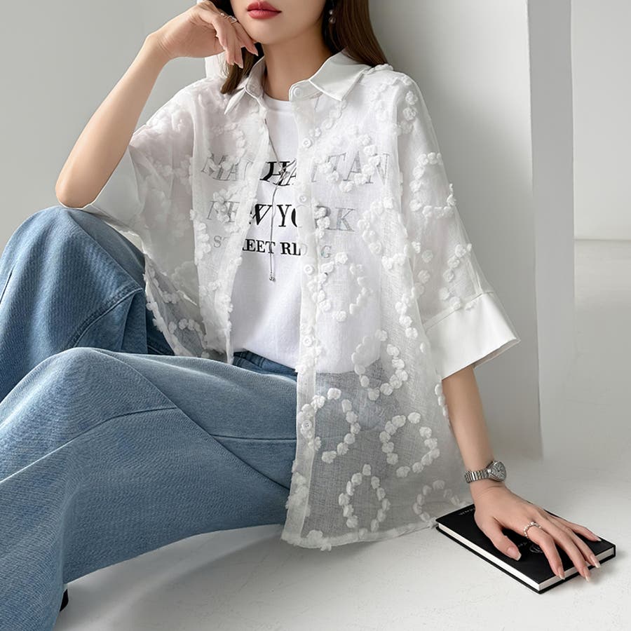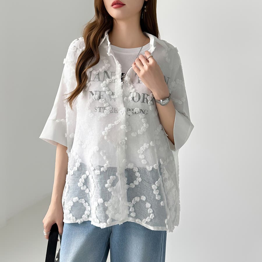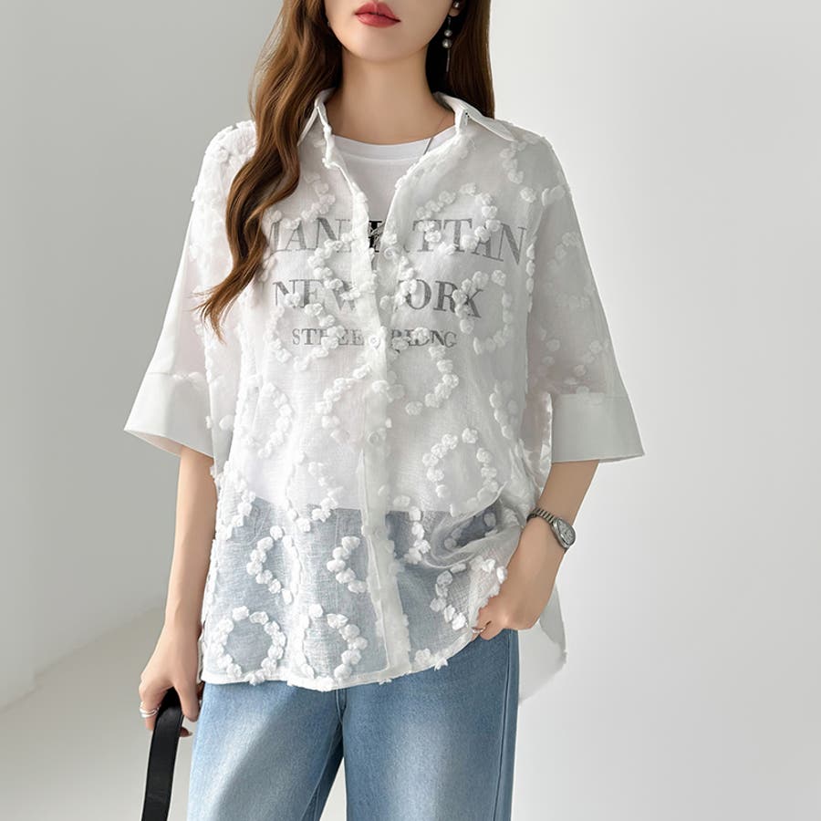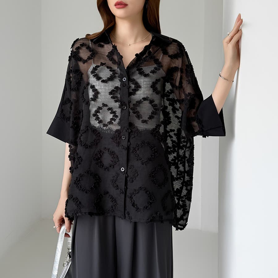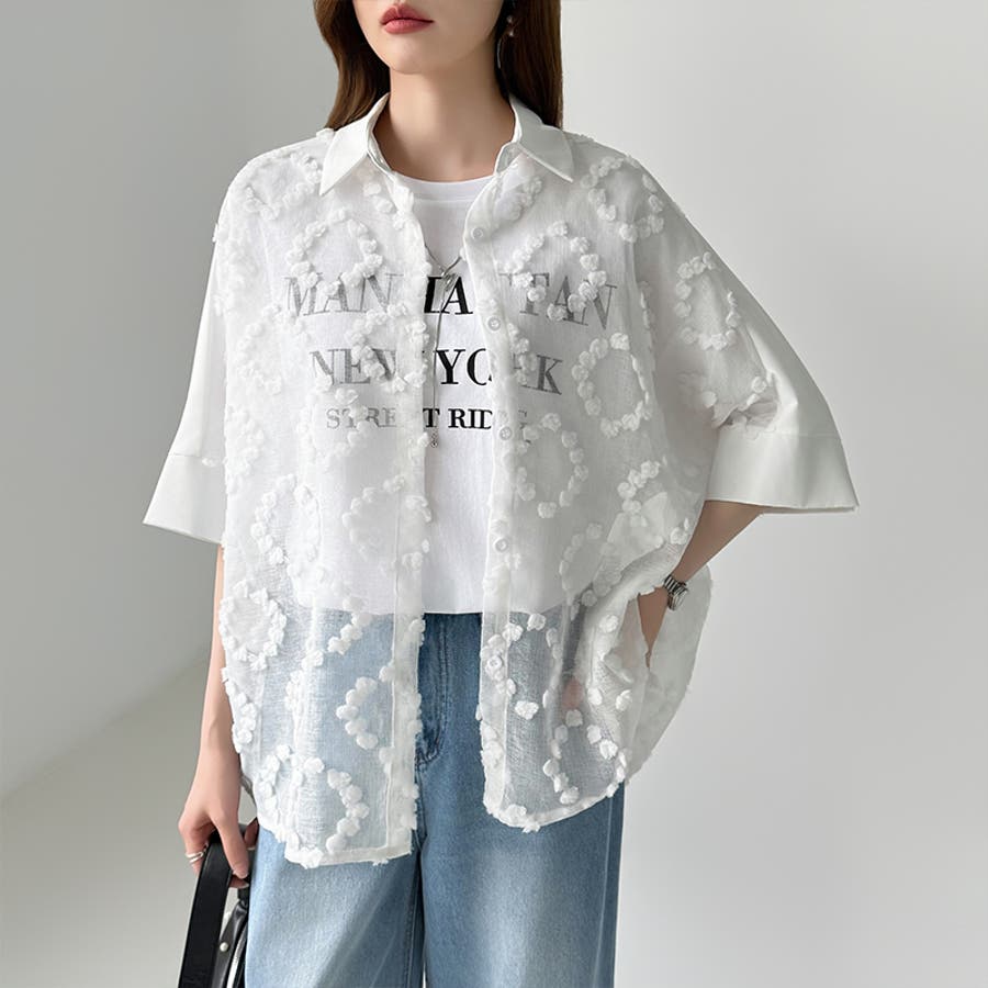 ぽこぽこカットジャガードシャツ シアーシャツ オーバーサイズ
