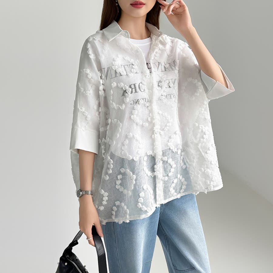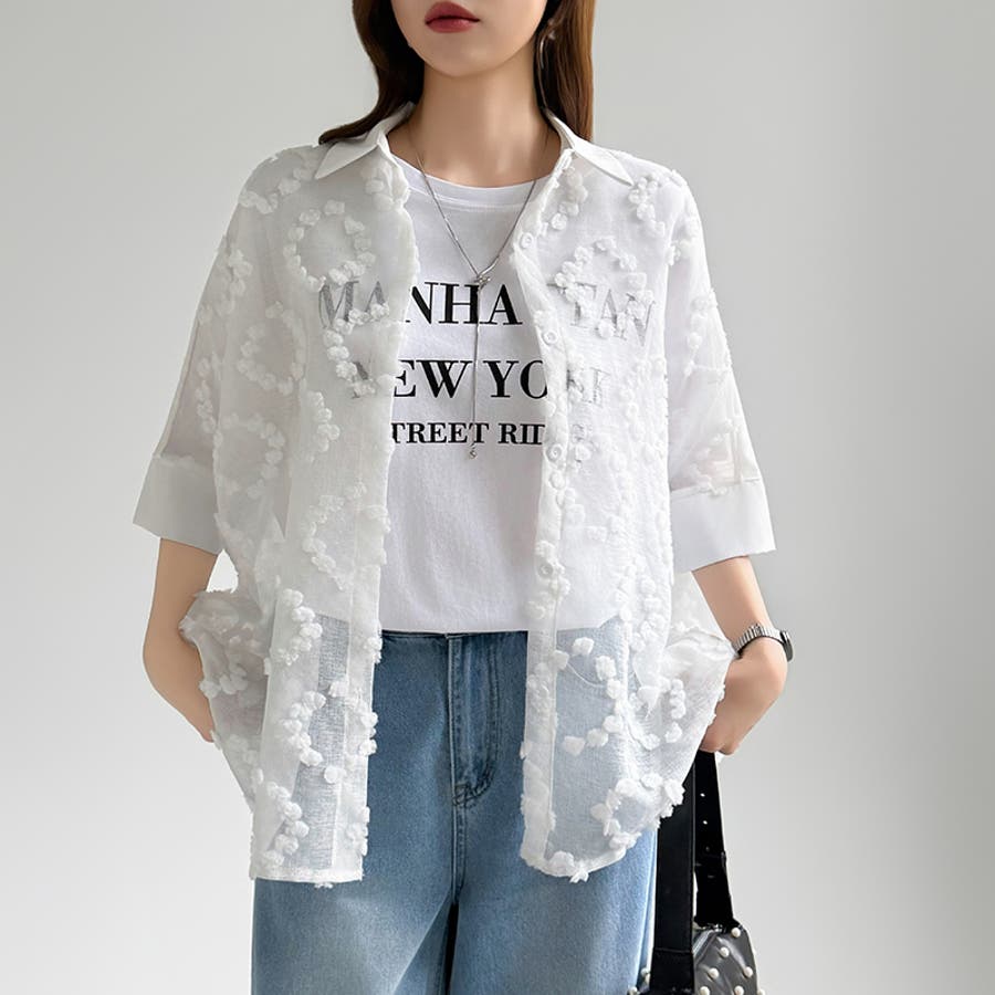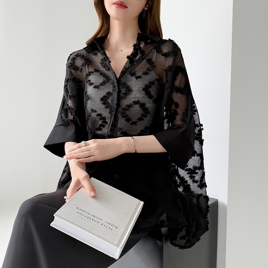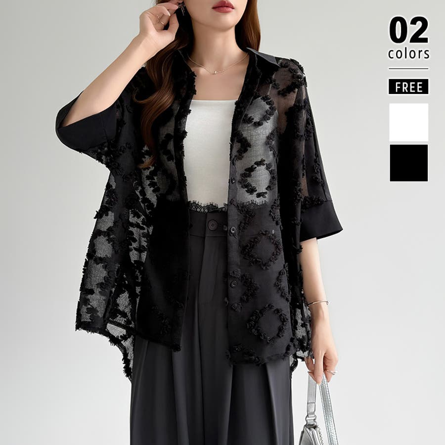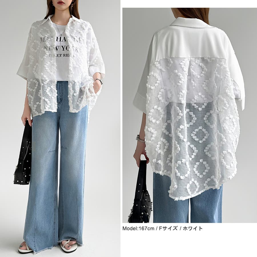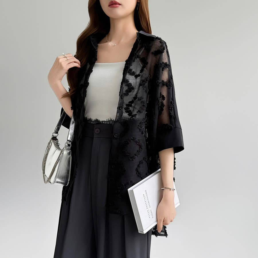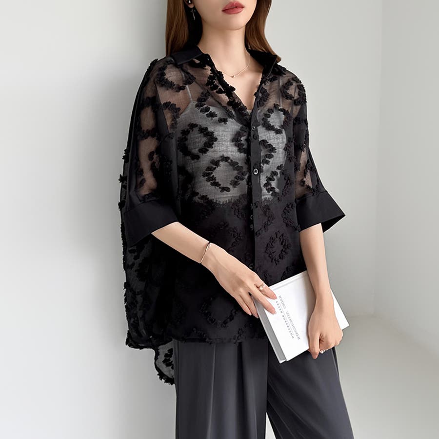 ぽこぽこカットジャガードシャツ シアーシャツ オーバーサイズ