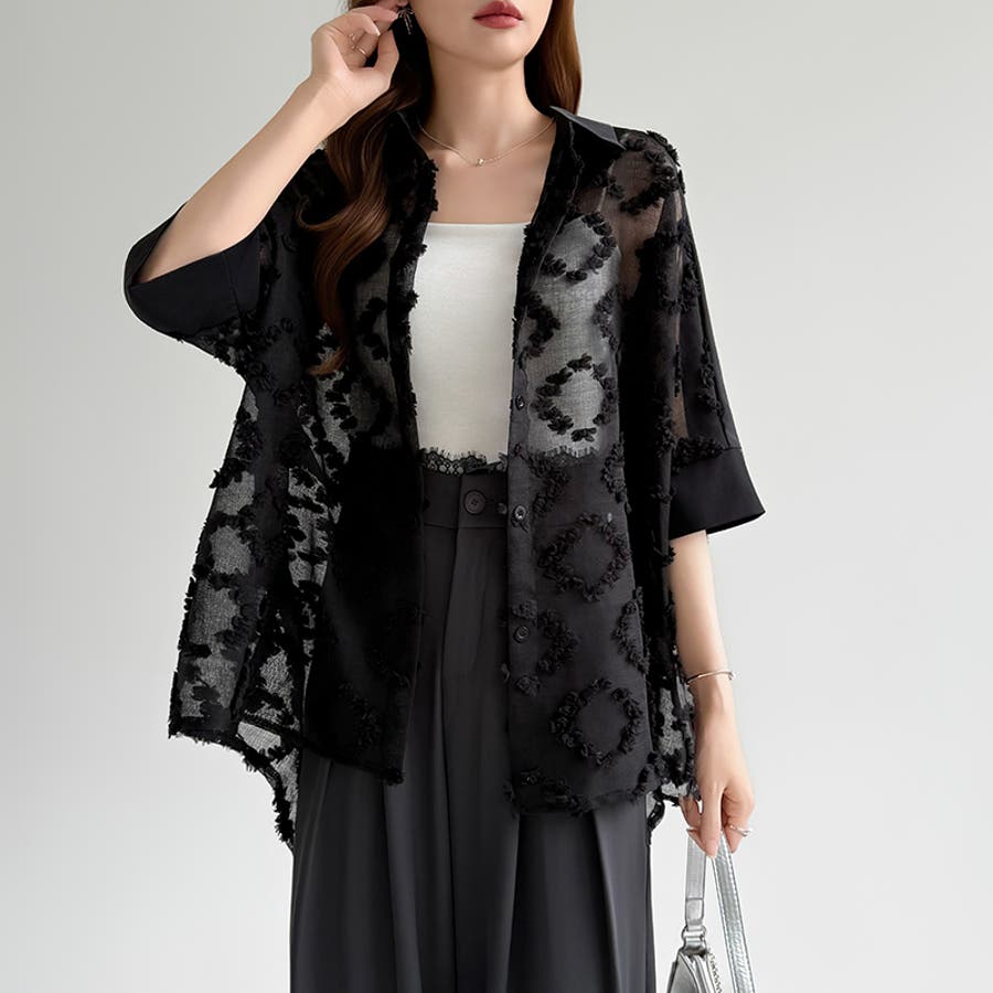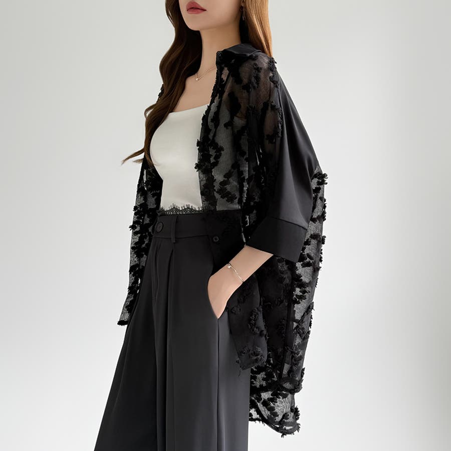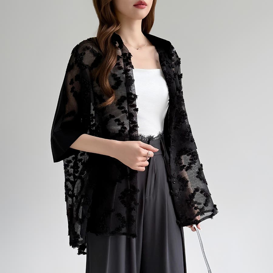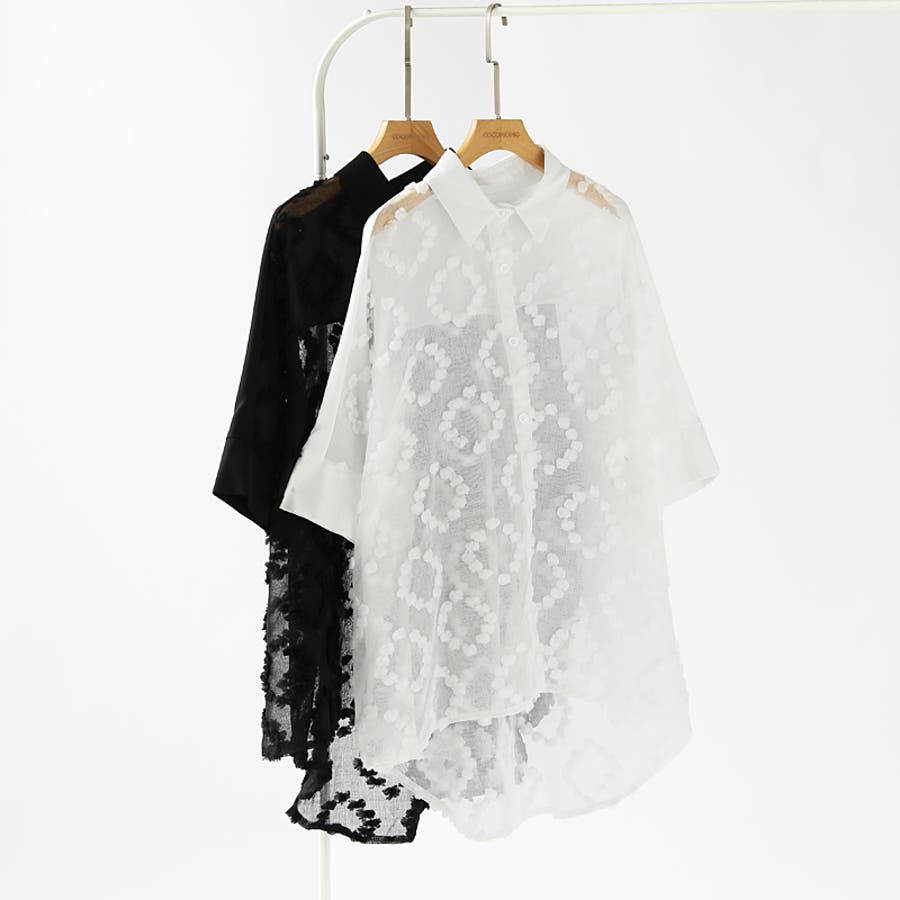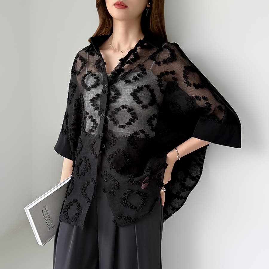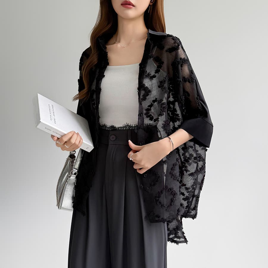 ぽこぽこカットジャガードシャツ シアーシャツ オーバーサイズ