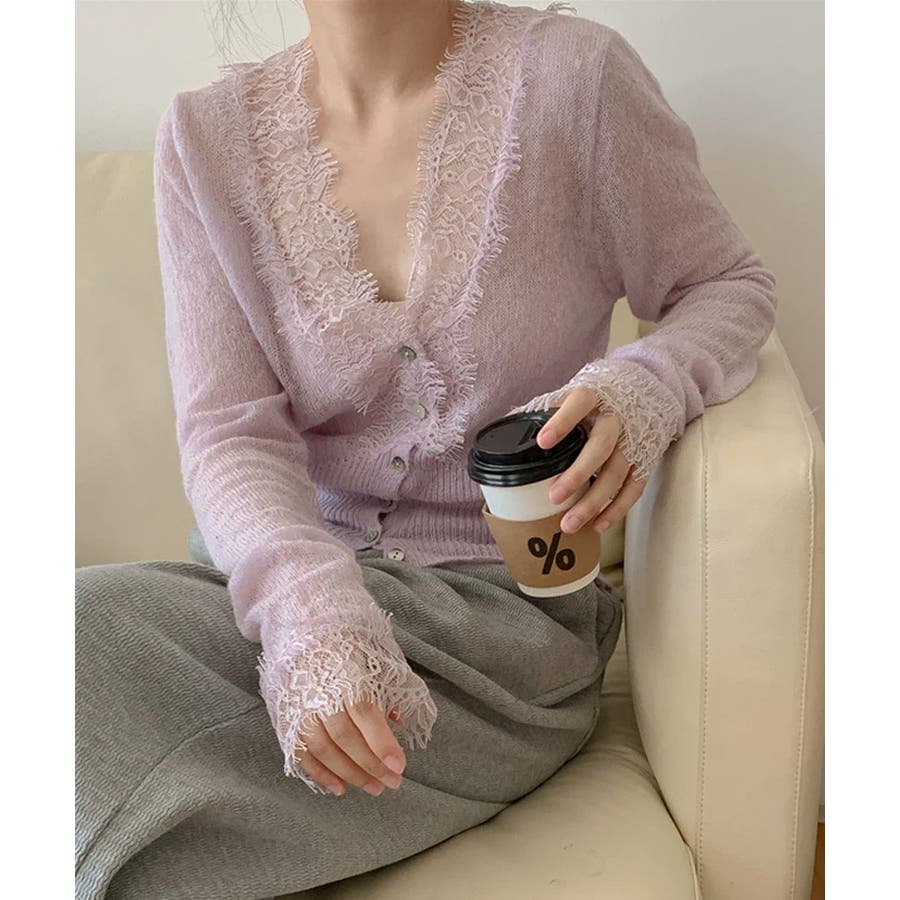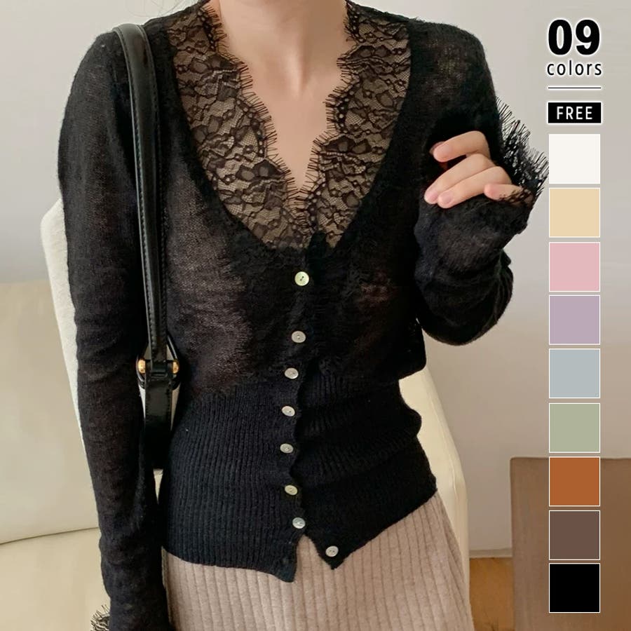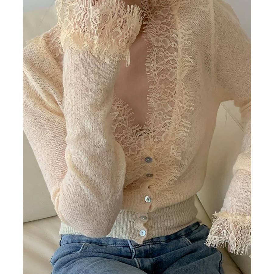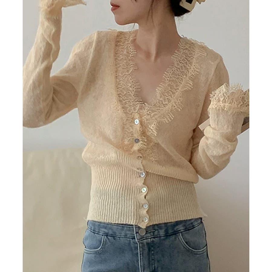 【繊細レース×シアー感】シアーレースカーディガン シアーカーディガン レースカー…