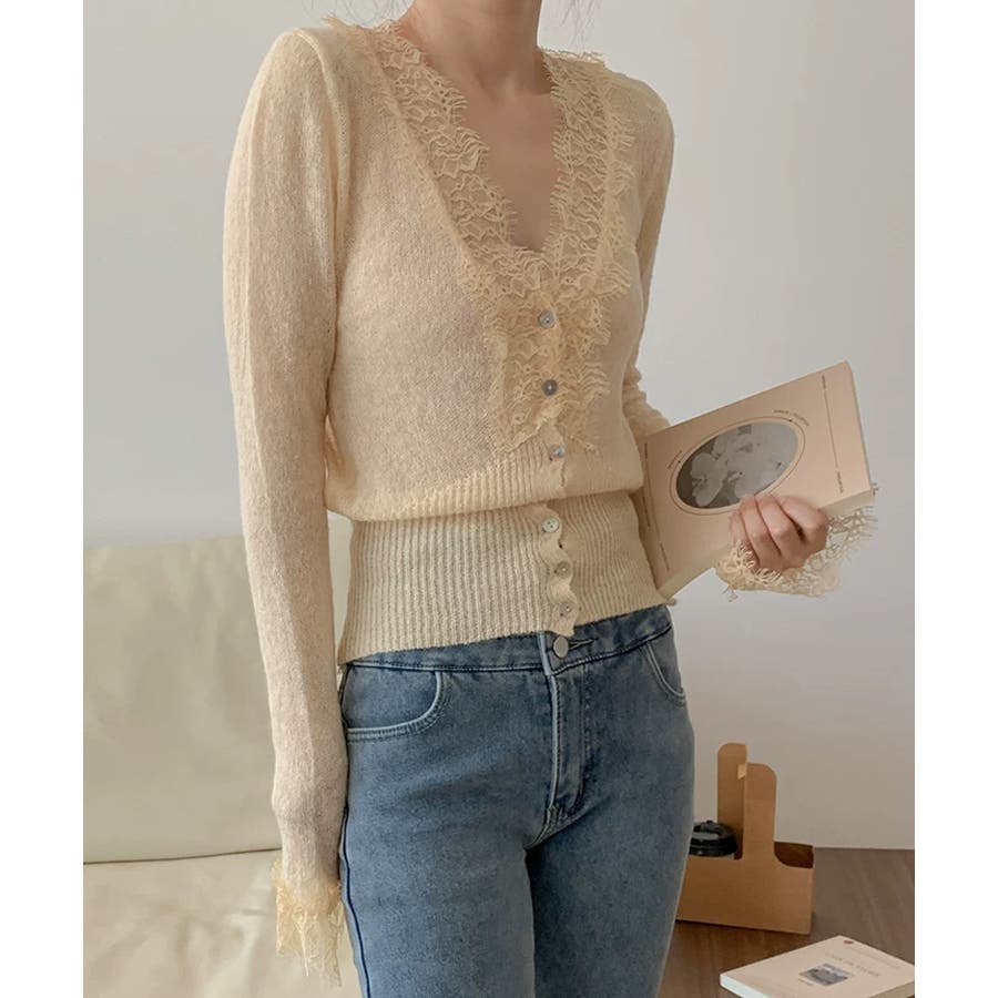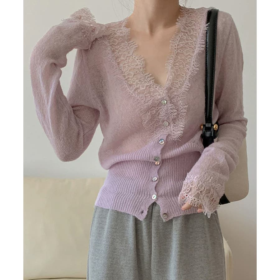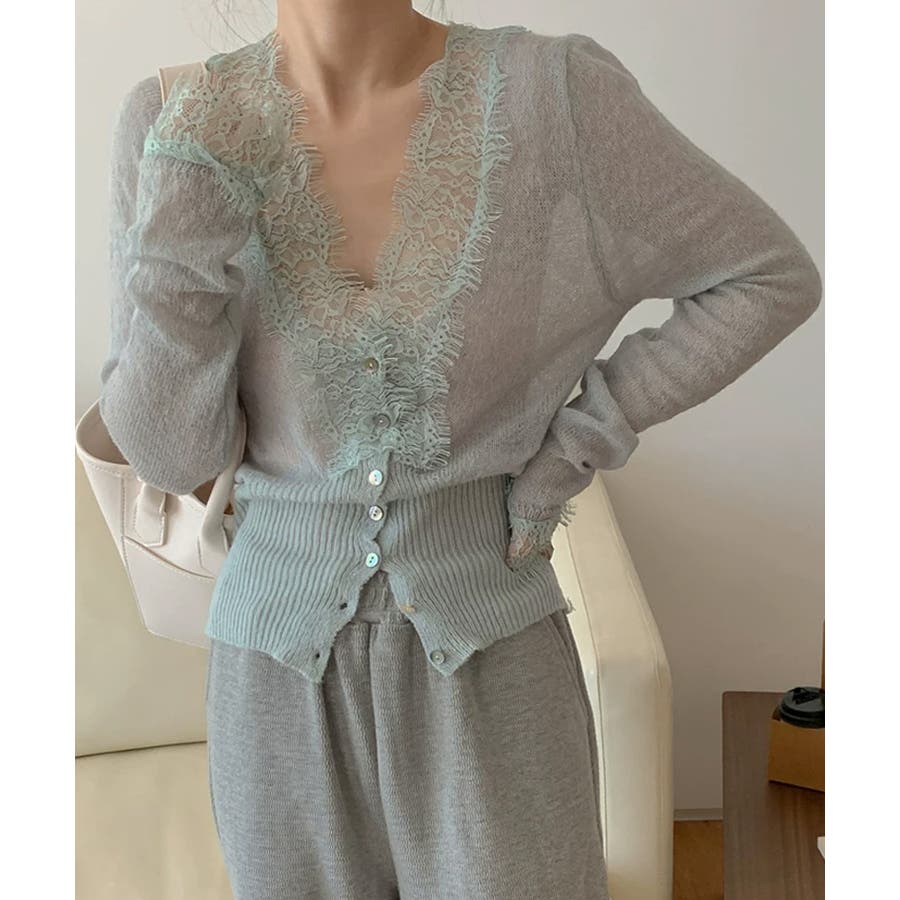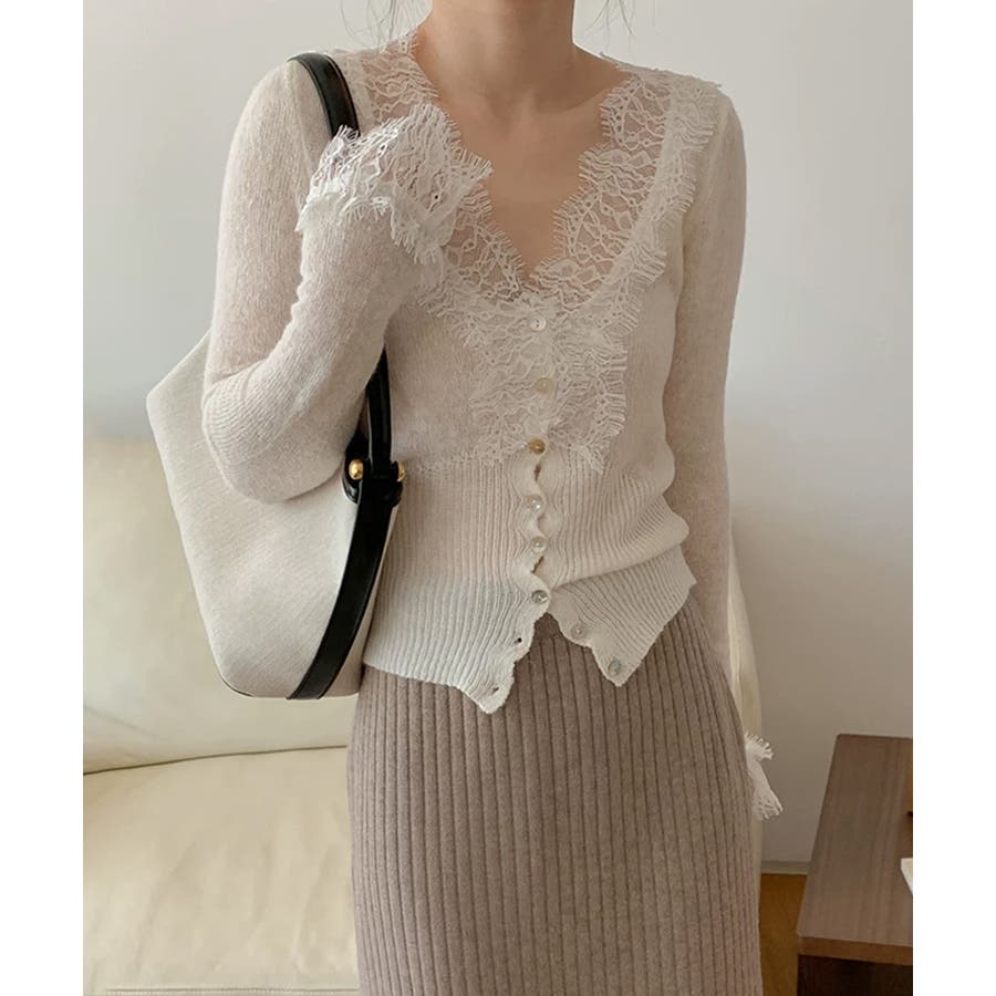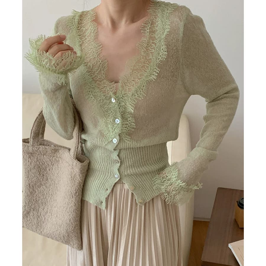 【繊細レース×シアー感】シアーレースカーディガン シアーカーディガン レースカー…