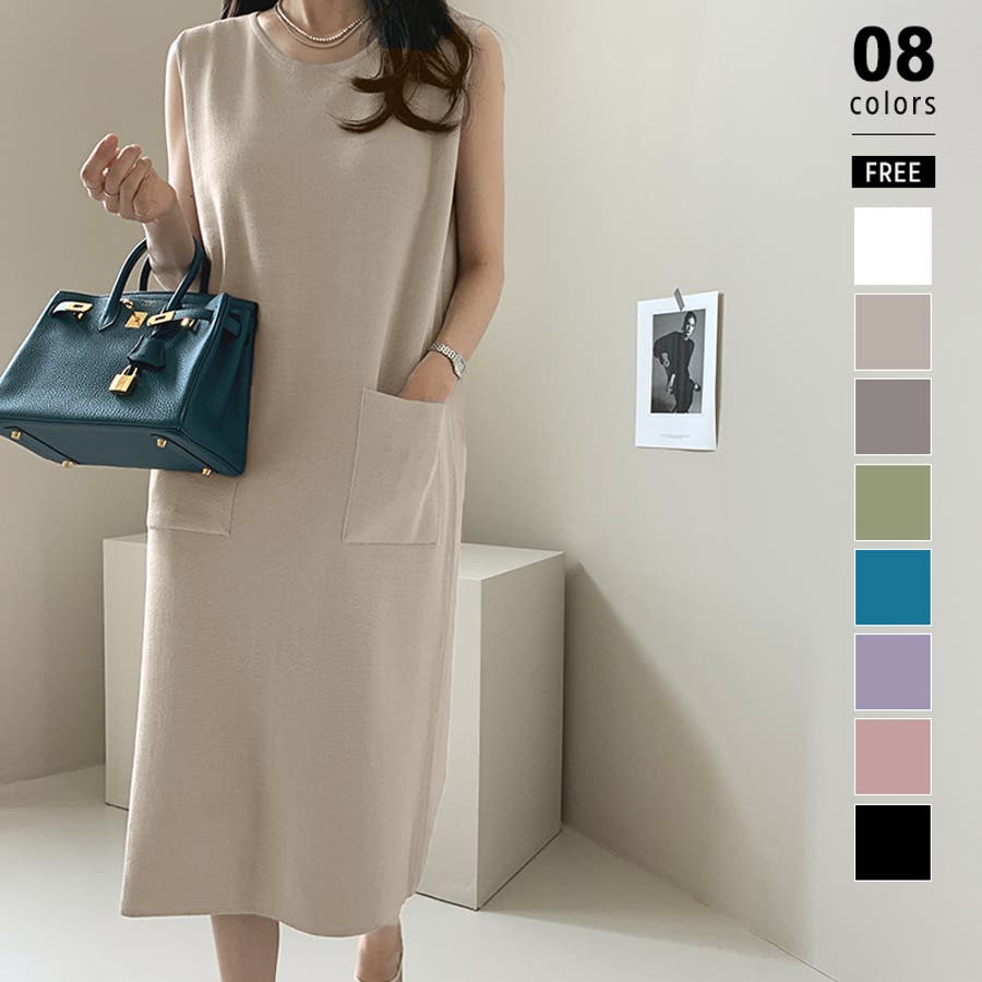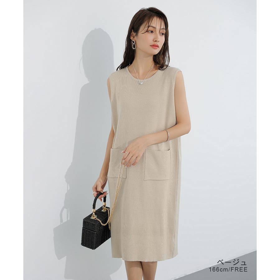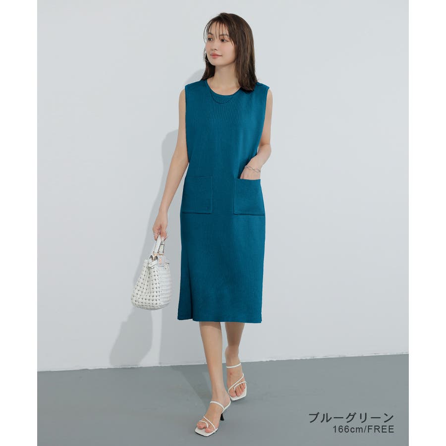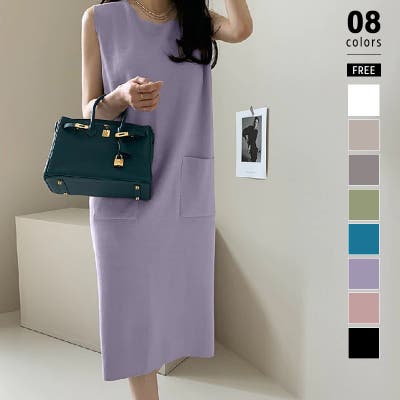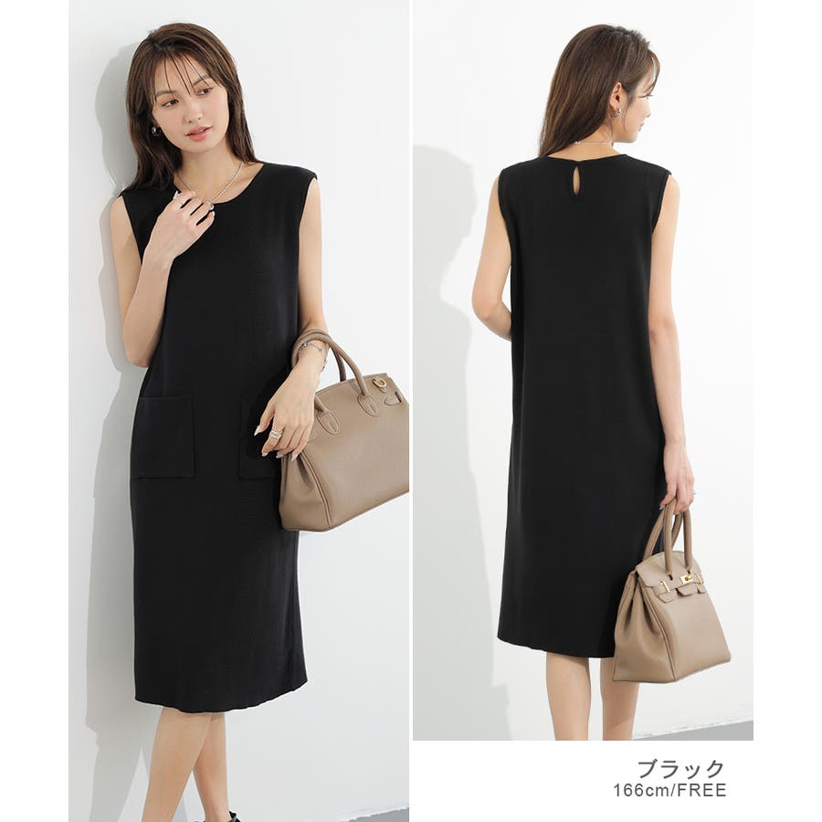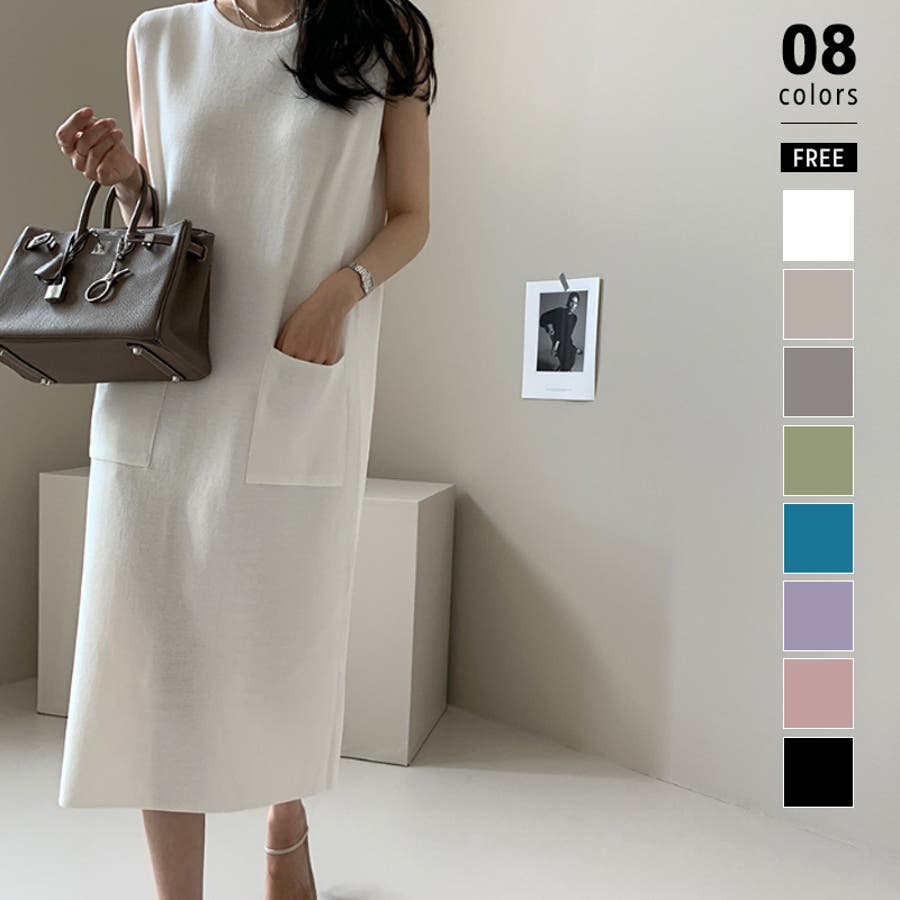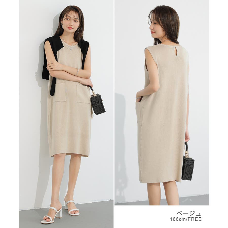 レディース ワンピース ノースリーブ タイトワンピース | Free 無地 ひざ下丈 ニット ポケットつき クルーネック アクリル カジュアル オフィス ビジネス 大人 上品 韓国 韓国ファッション 20代 30代 40代 50代 cocomomo 秋 秋服 春服