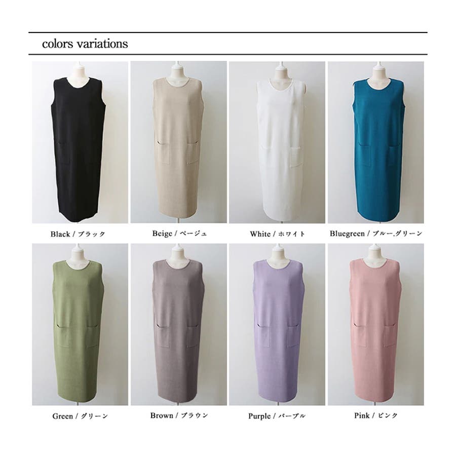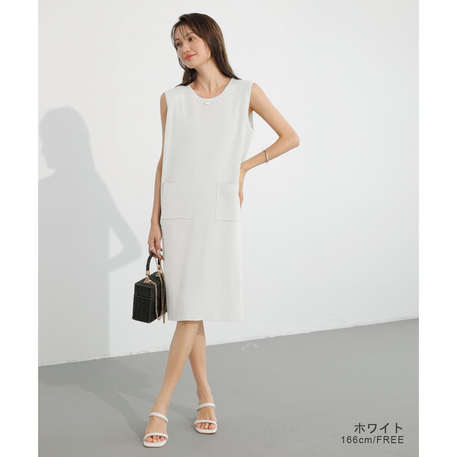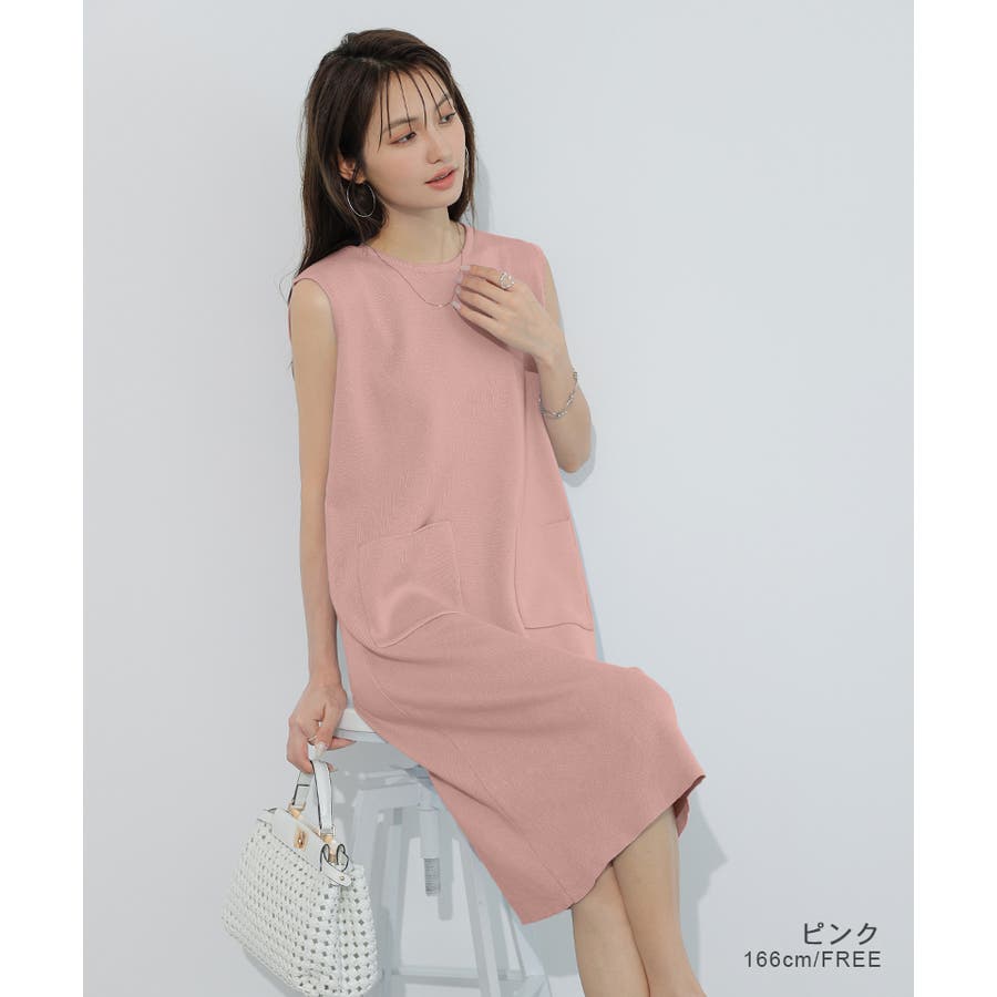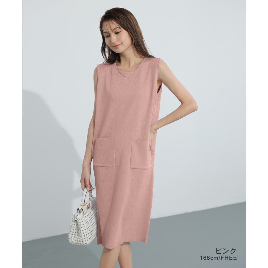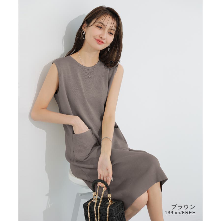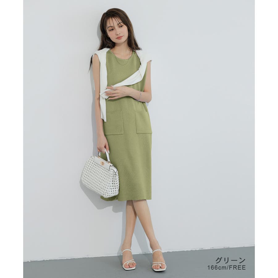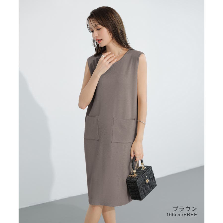 レディース ワンピース ノースリーブ タイトワンピース | Free 無地 ひざ下丈 ニット ポケットつき クルーネック アクリル カジュアル オフィス ビジネス 大人 上品 韓国 韓国ファッション 20代 30代 40代 50代 cocomomo 秋 秋服 春服