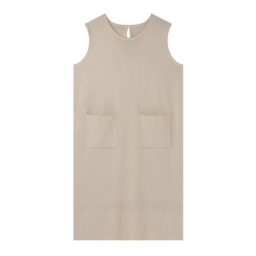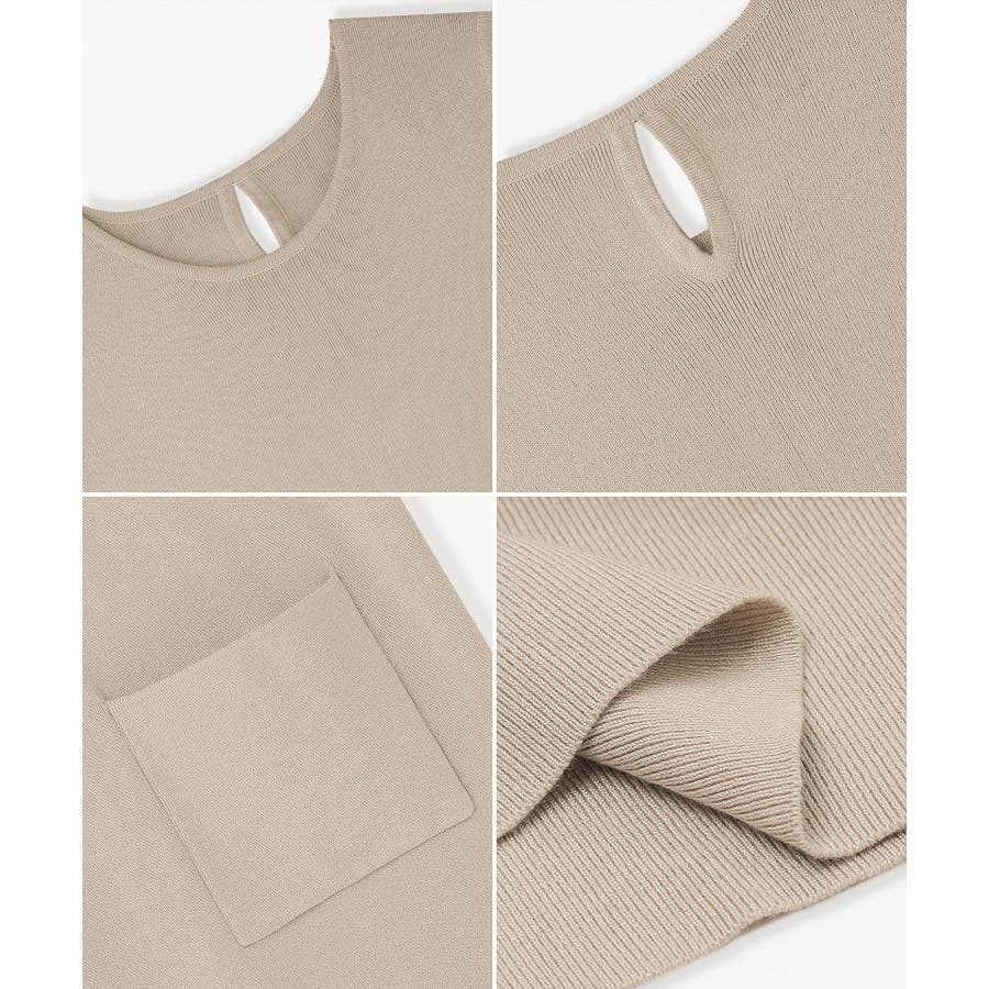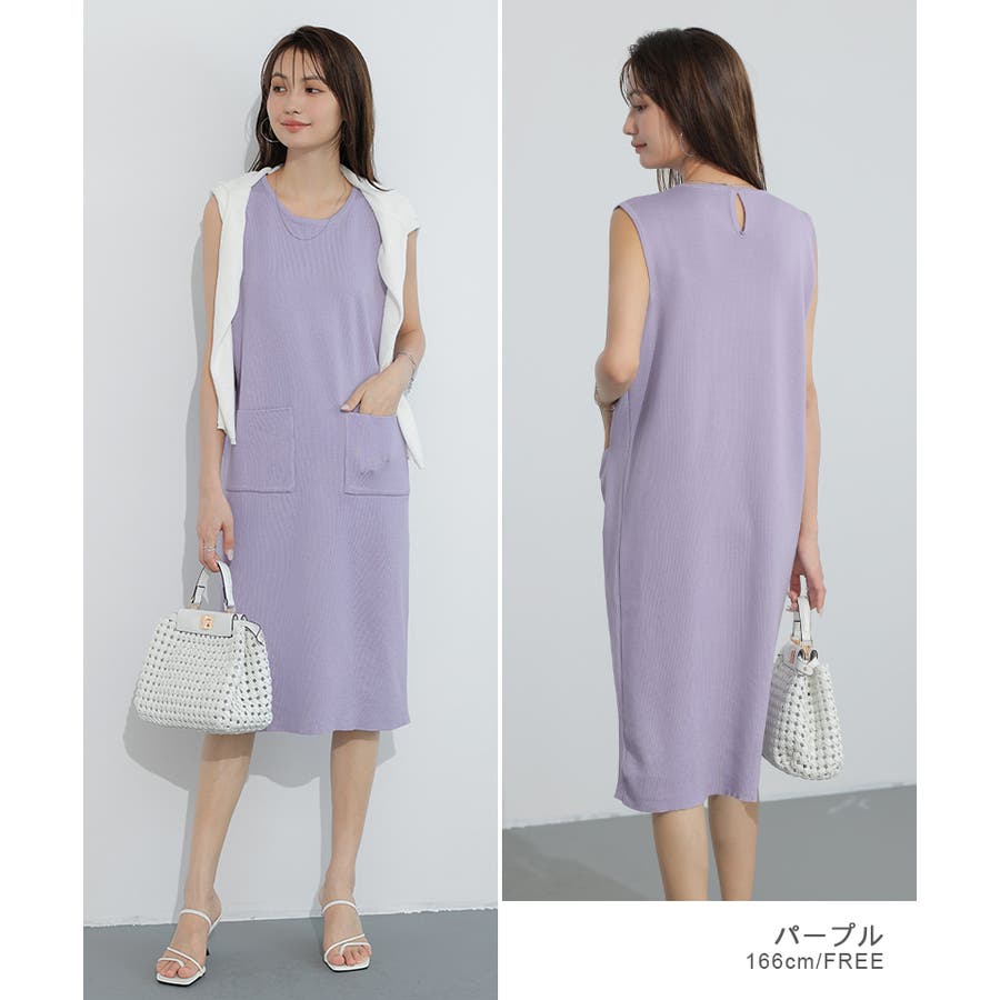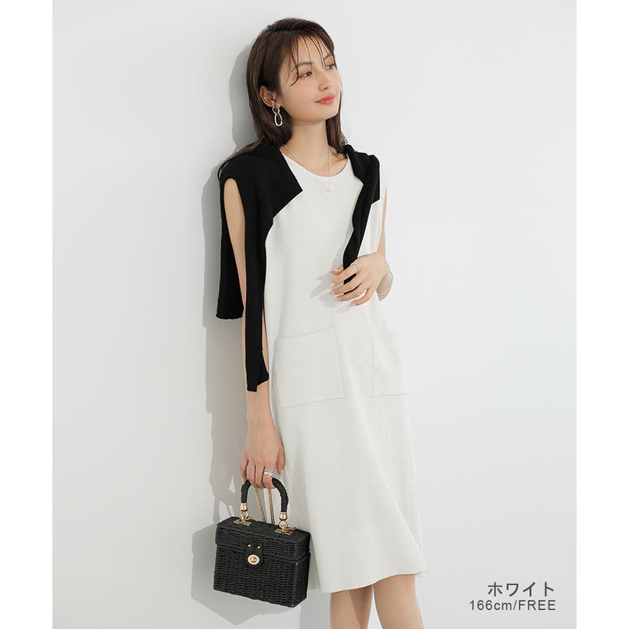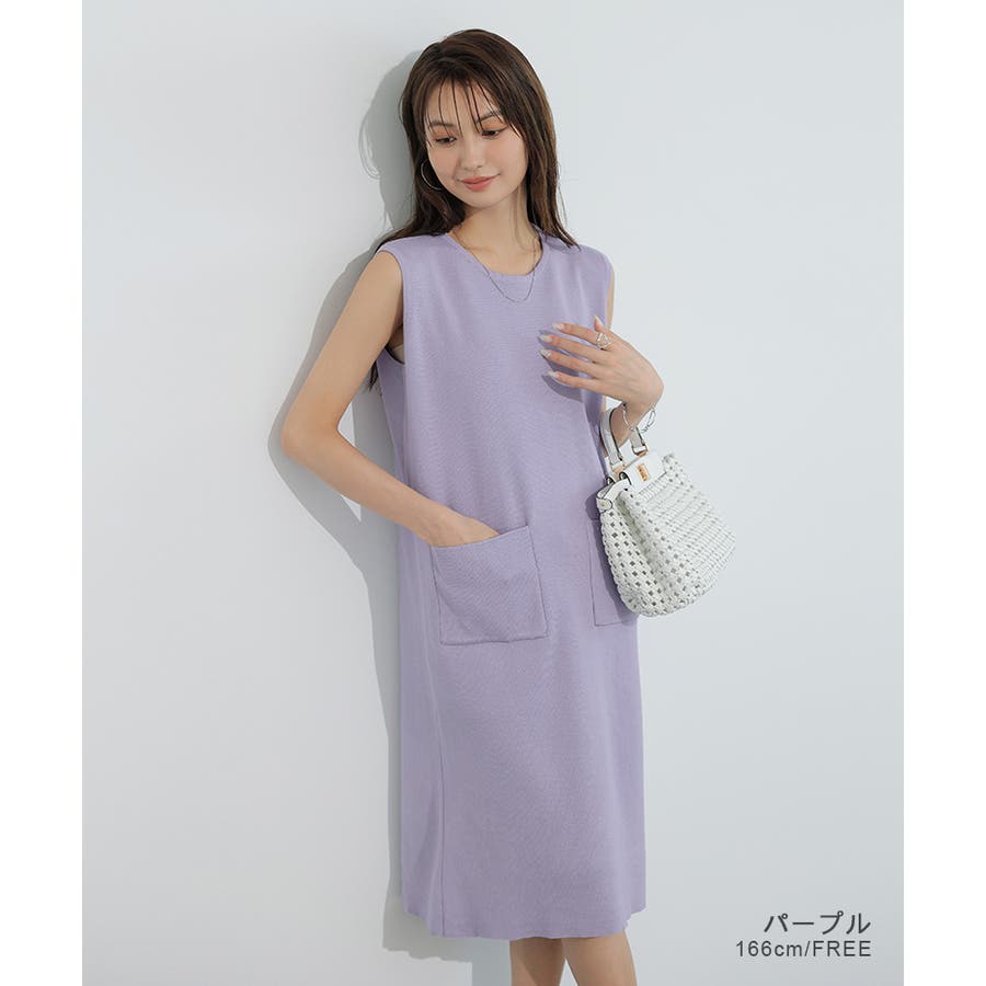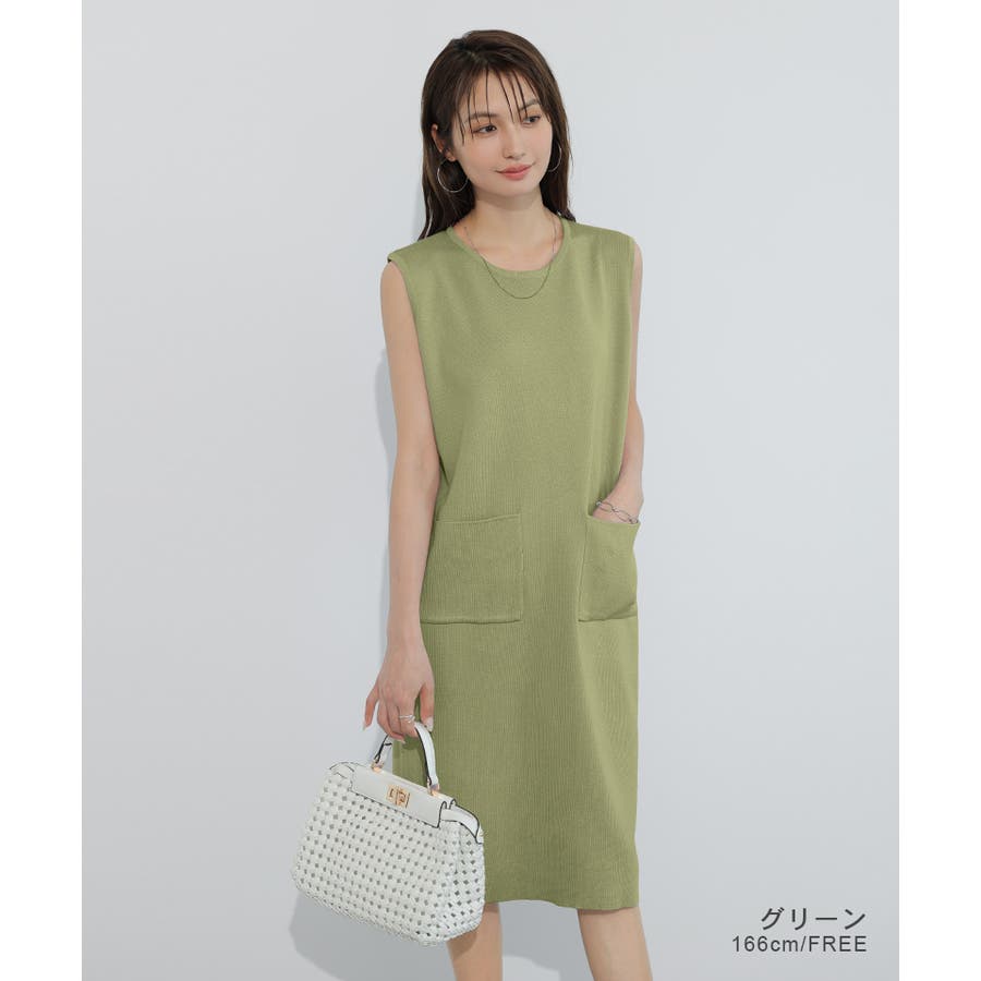 レディース ワンピース ノースリーブ タイトワンピース | Free 無地 ひざ下丈 ニット ポケットつき クルーネック アクリル カジュアル オフィス ビジネス 大人 上品 韓国 韓国ファッション 20代 30代 40代 50代 cocomomo 秋 秋服 春服
