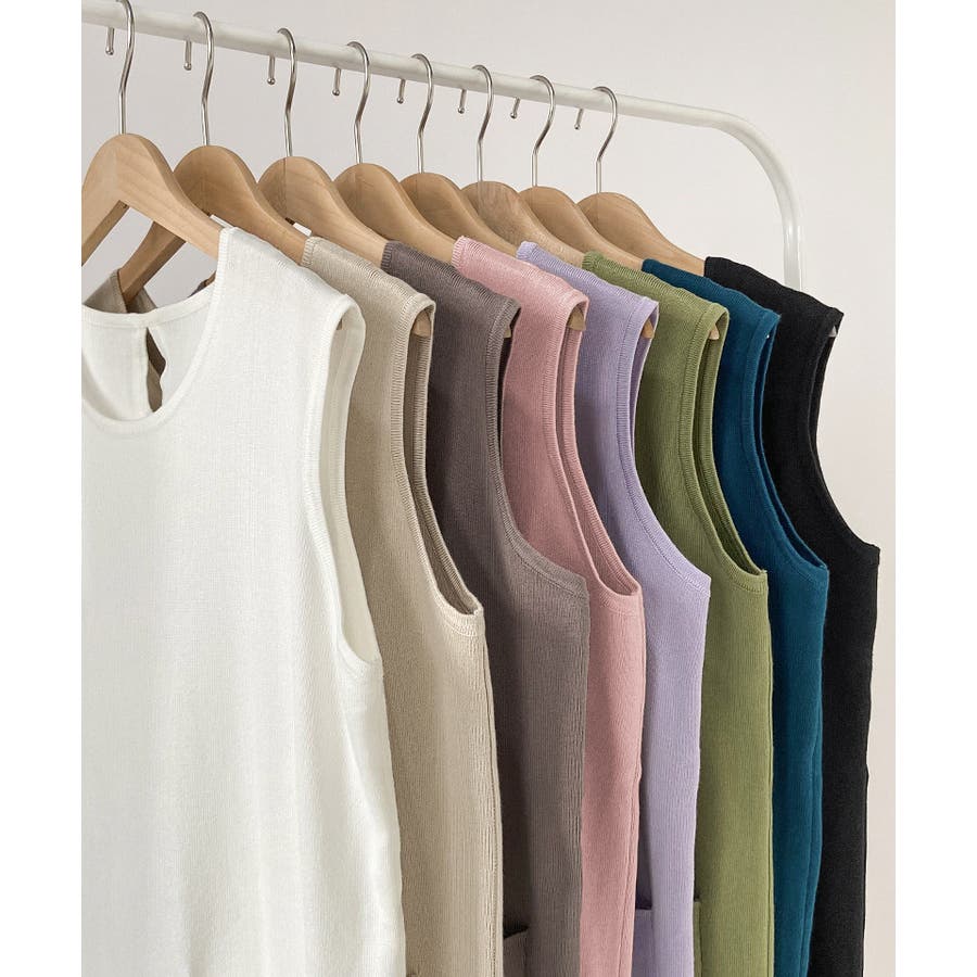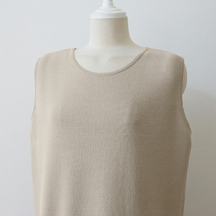 投稿日:2024.06.09生地はしっかりとしていますがサラっとしてチクチクしません!ノースリーブの形が直線的なので二の腕や胸の厚みもあまり気にならず、華奢見えします(^^)