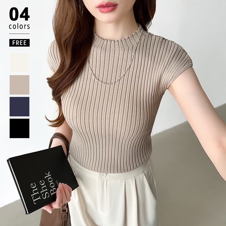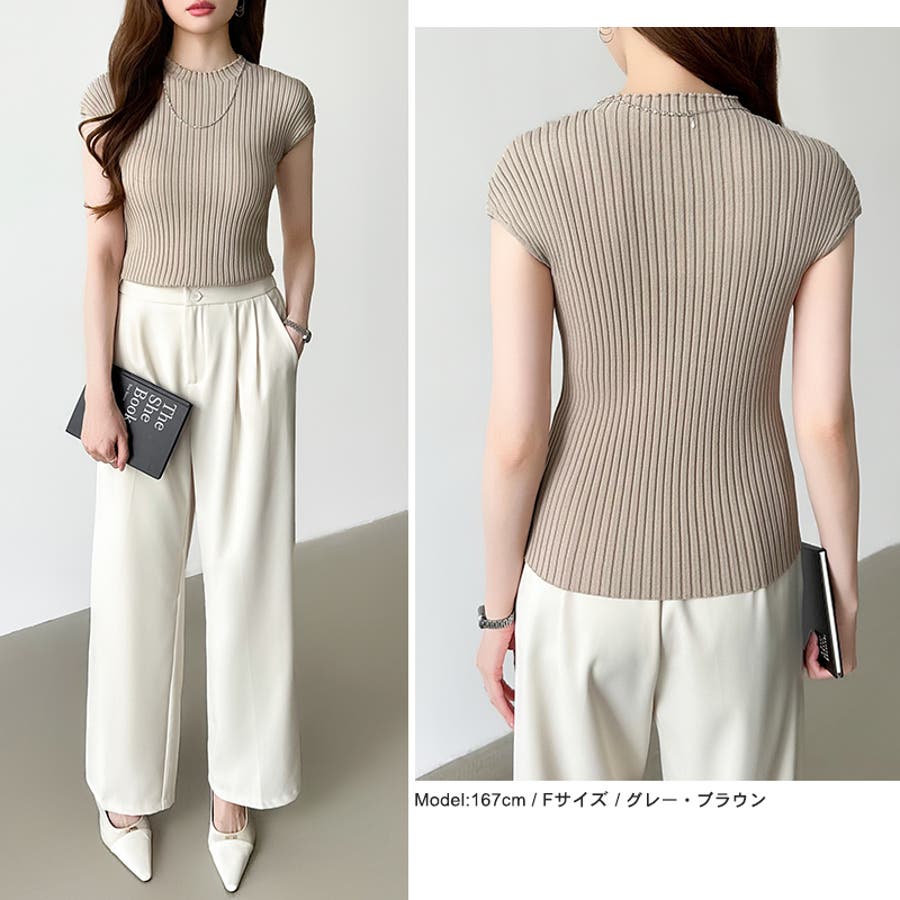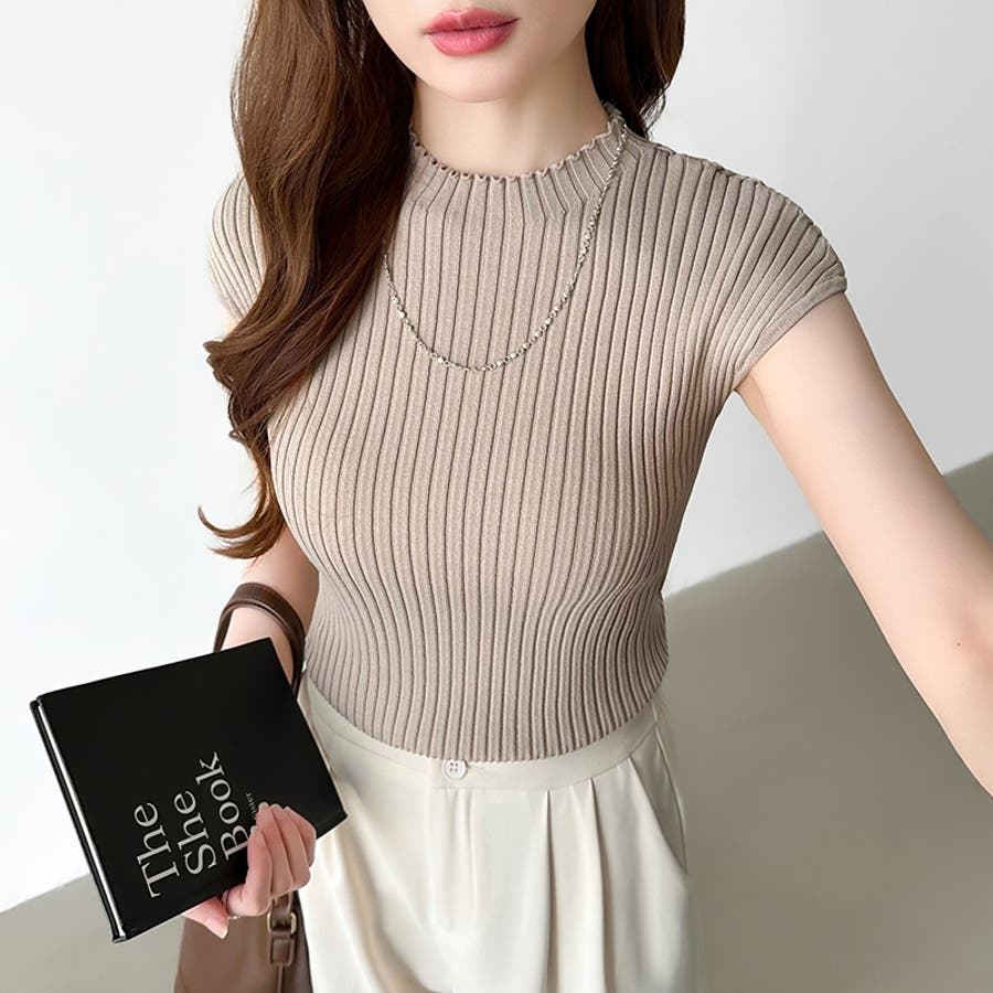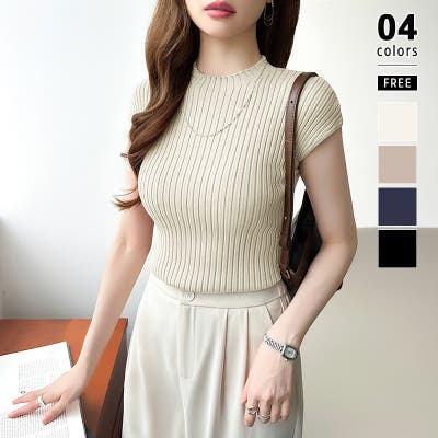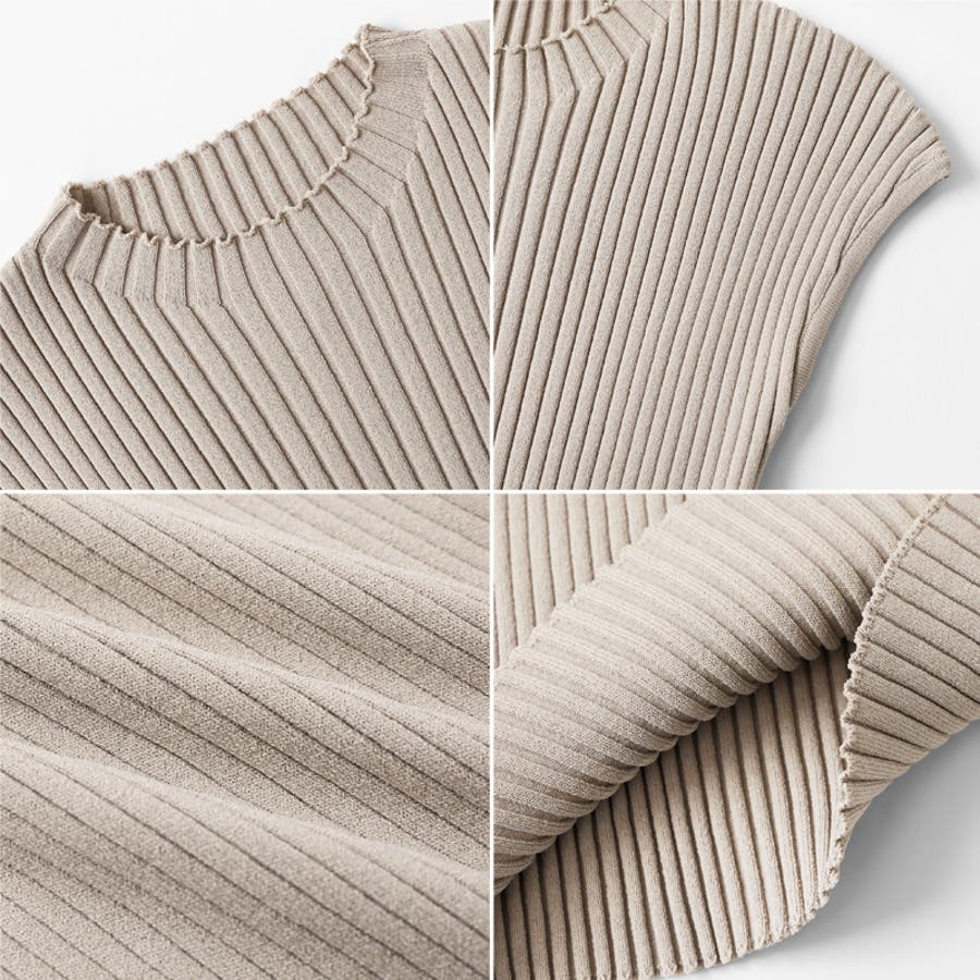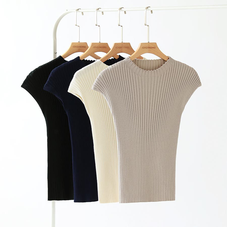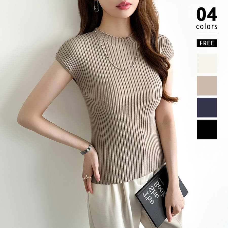 レディース エレガント リブニット 無地 ニットトップス ハイネック カットソー 春 夏 クルーネック ノースリーブ サマーニットきれいめ 可愛い かわいい 上品 オフィス 通勤 通学 韓国 韓国ファッション 20代 30代 40代 50代 cocomomo セクシー 春服