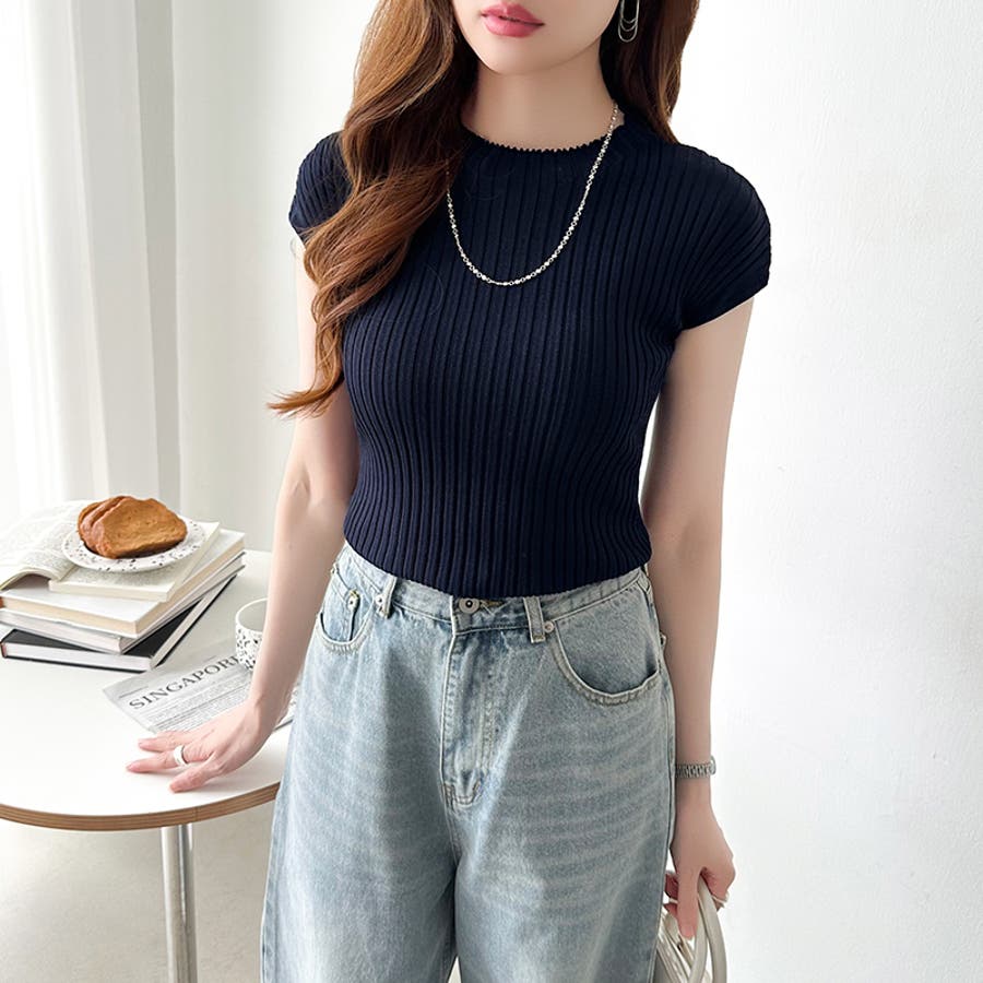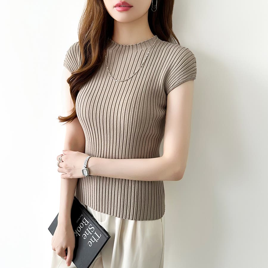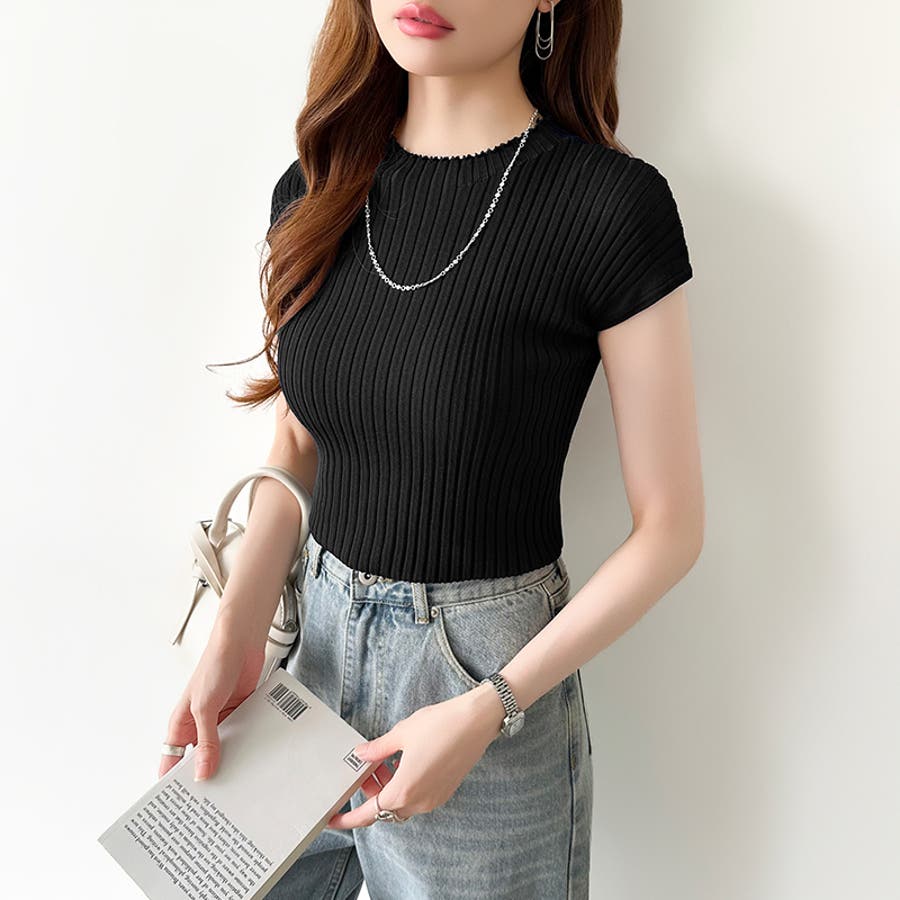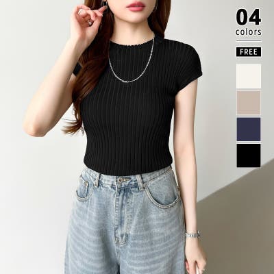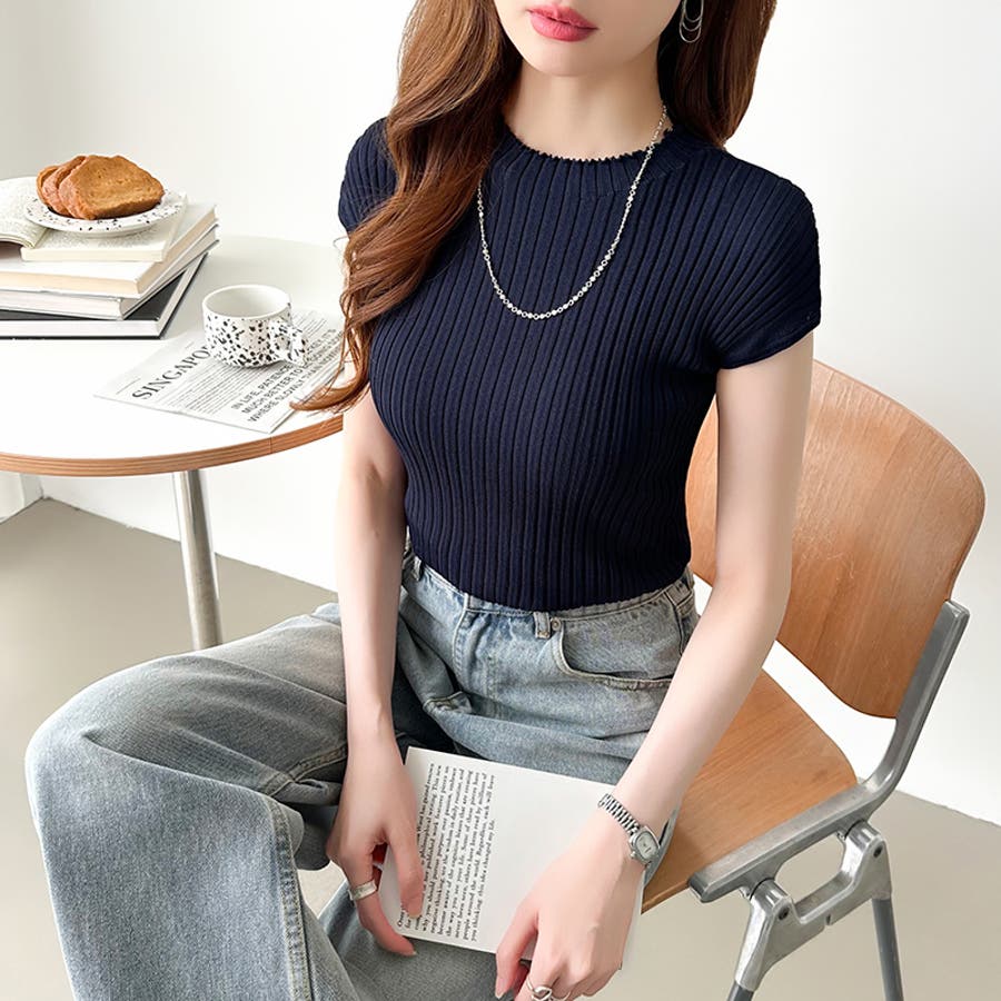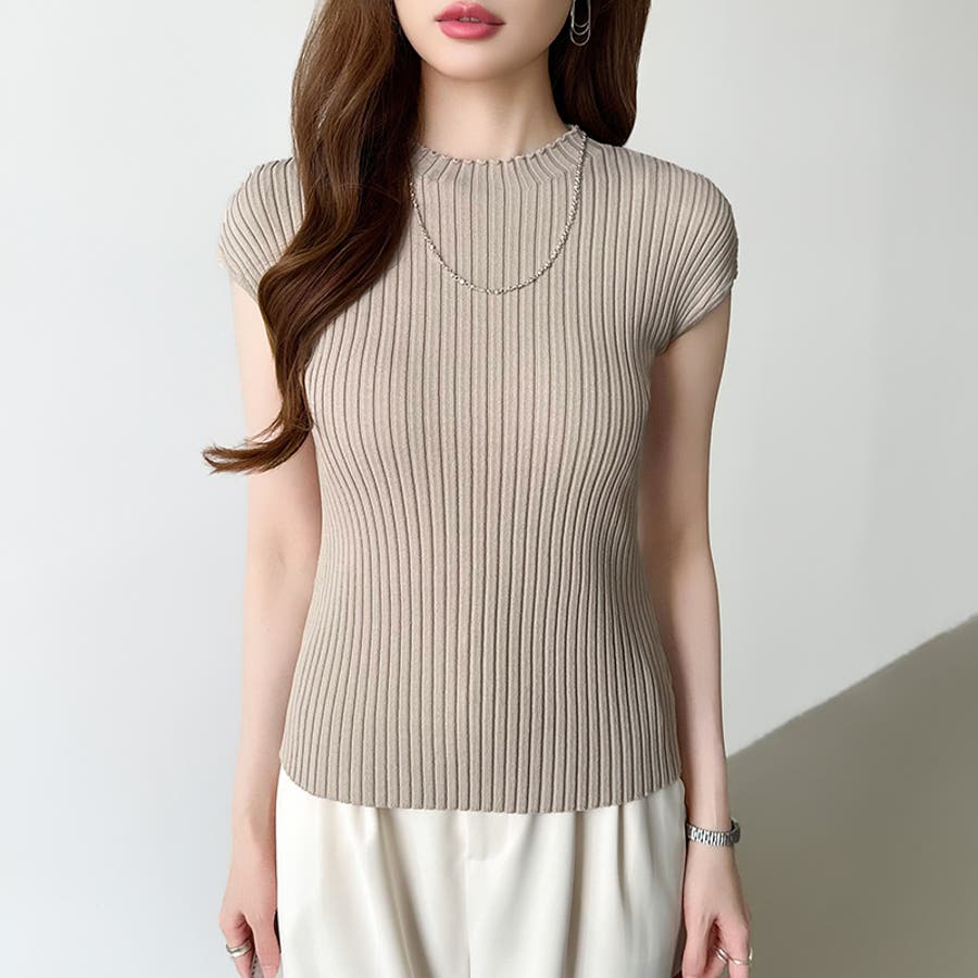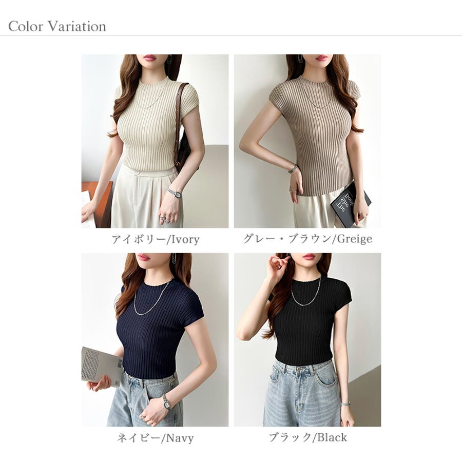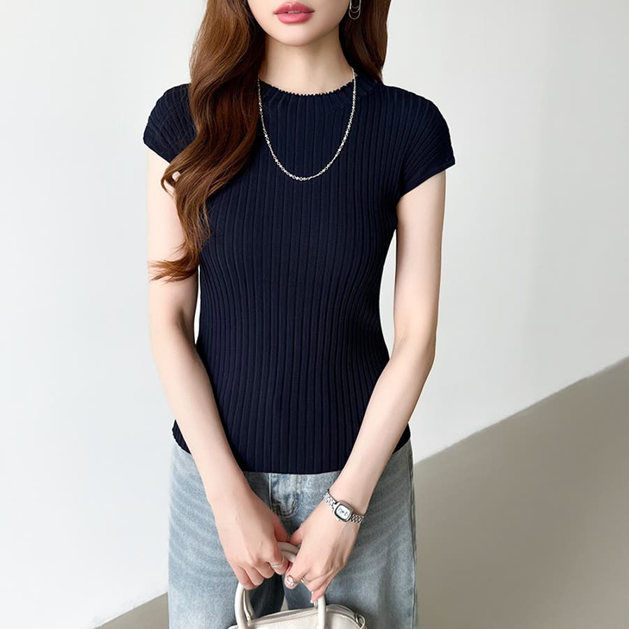 レディース エレガント リブニット 無地 ニットトップス ハイネック カットソー 春 夏 クルーネック ノースリーブ サマーニットきれいめ 可愛い かわいい 上品 オフィス 通勤 通学 韓国 韓国ファッション 20代 30代 40代 50代 cocomomo セクシー 春服