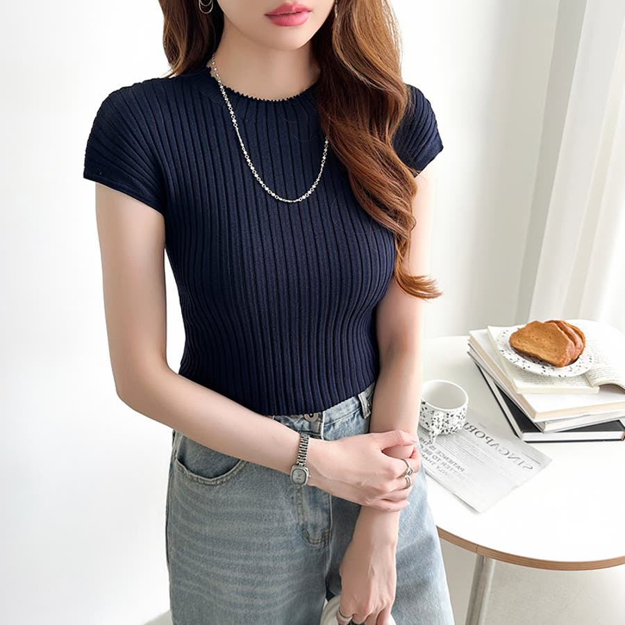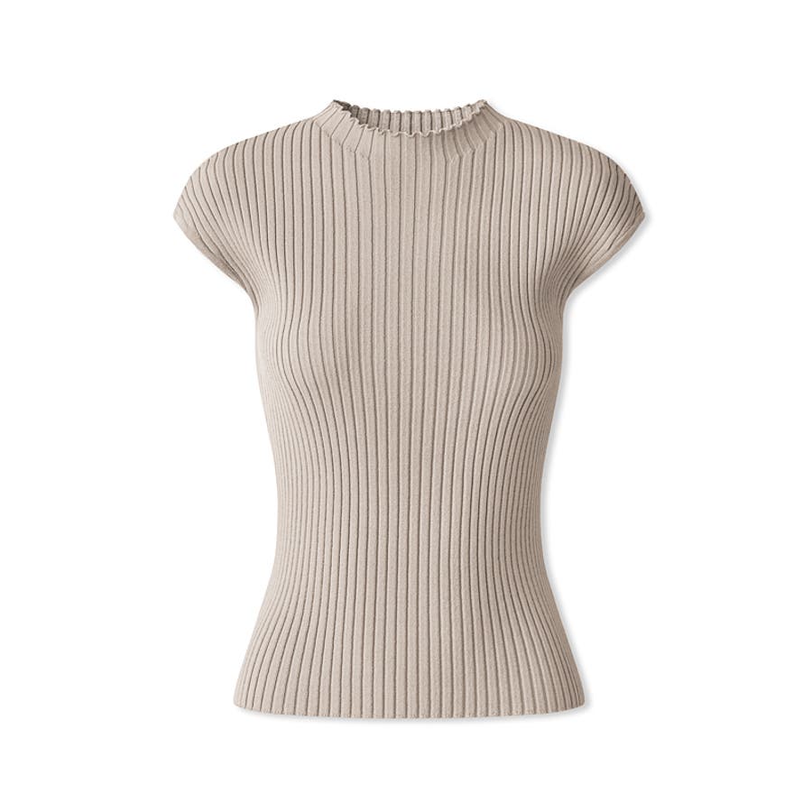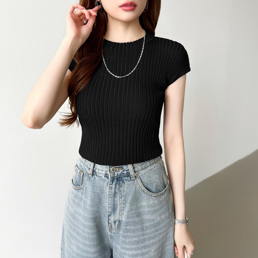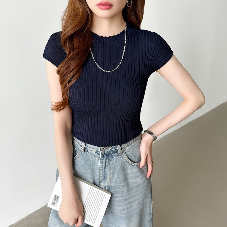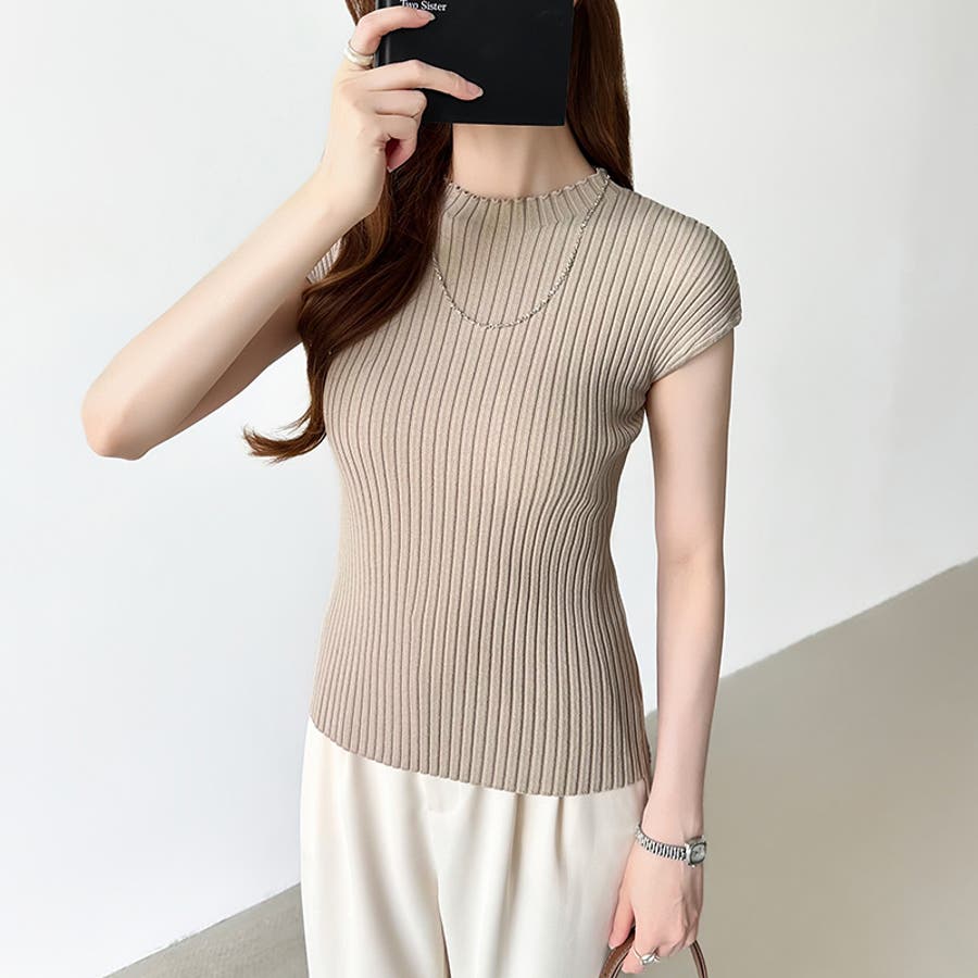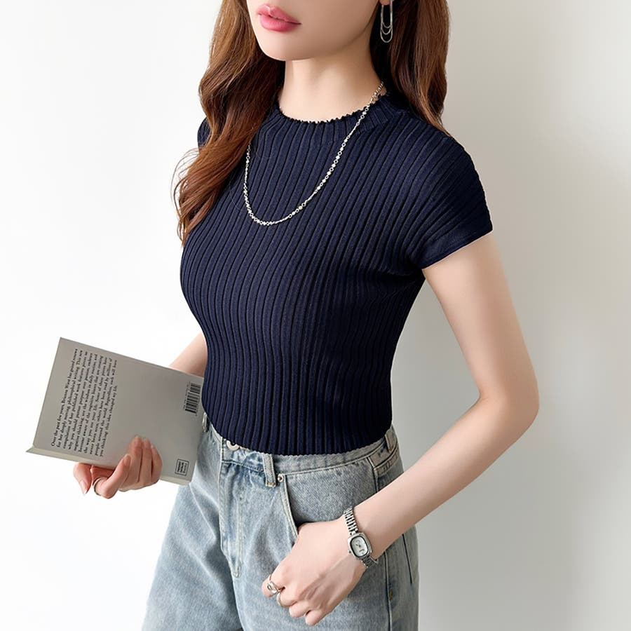 レディース エレガント リブニット 無地 ニットトップス ハイネック カットソー 春 夏 クルーネック ノースリーブ サマーニットきれいめ 可愛い かわいい 上品 オフィス 通勤 通学 韓国 韓国ファッション 20代 30代 40代 50代 cocomomo セクシー 春服