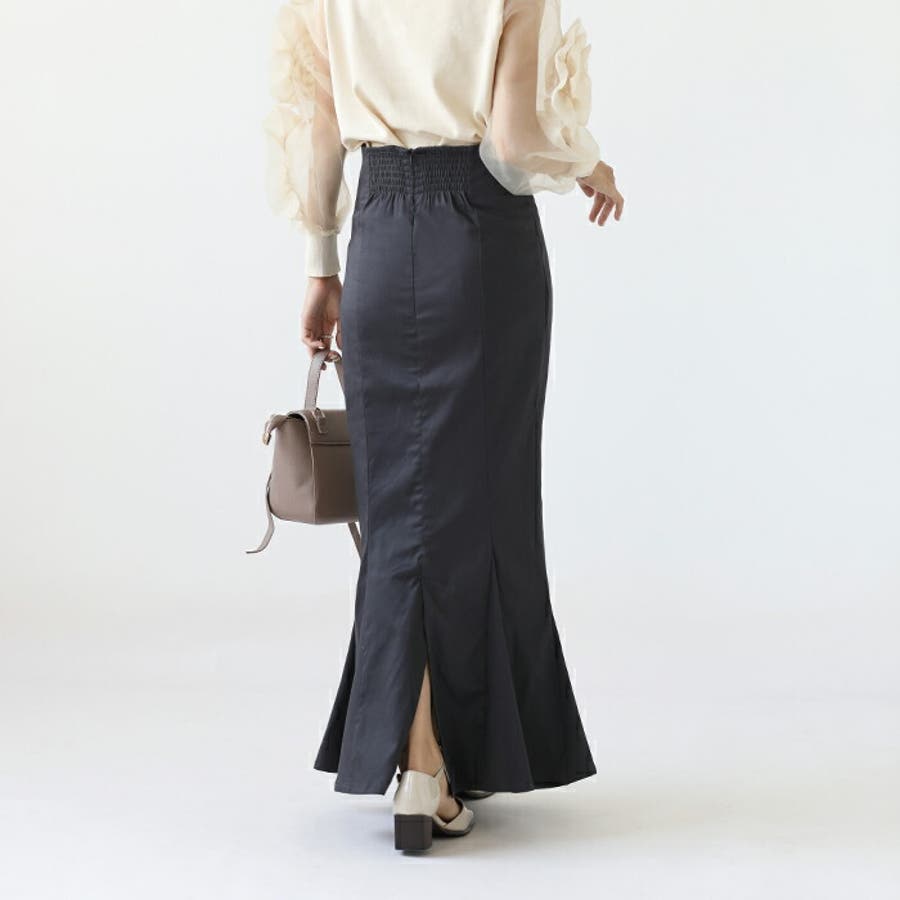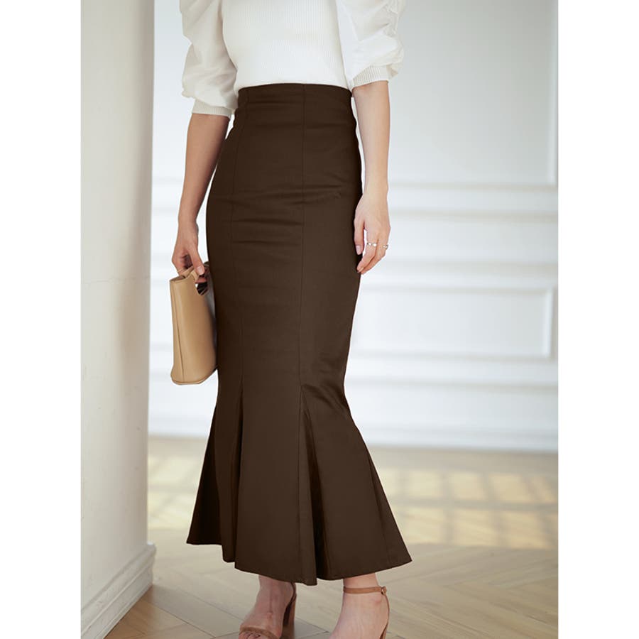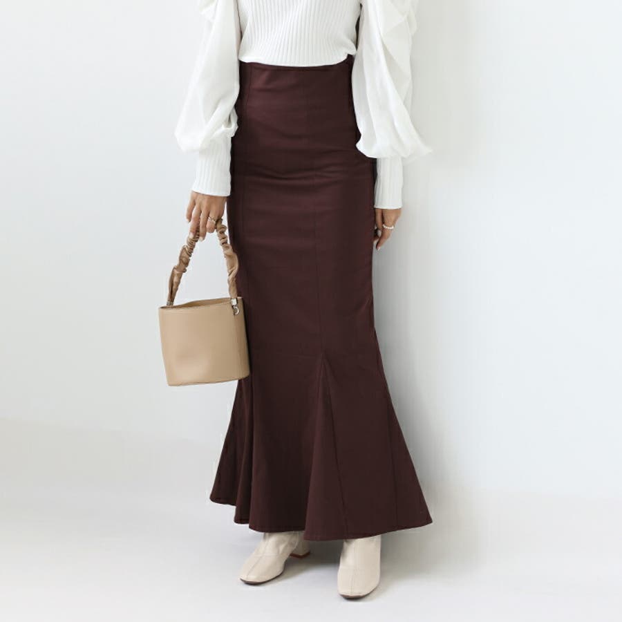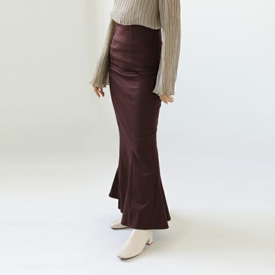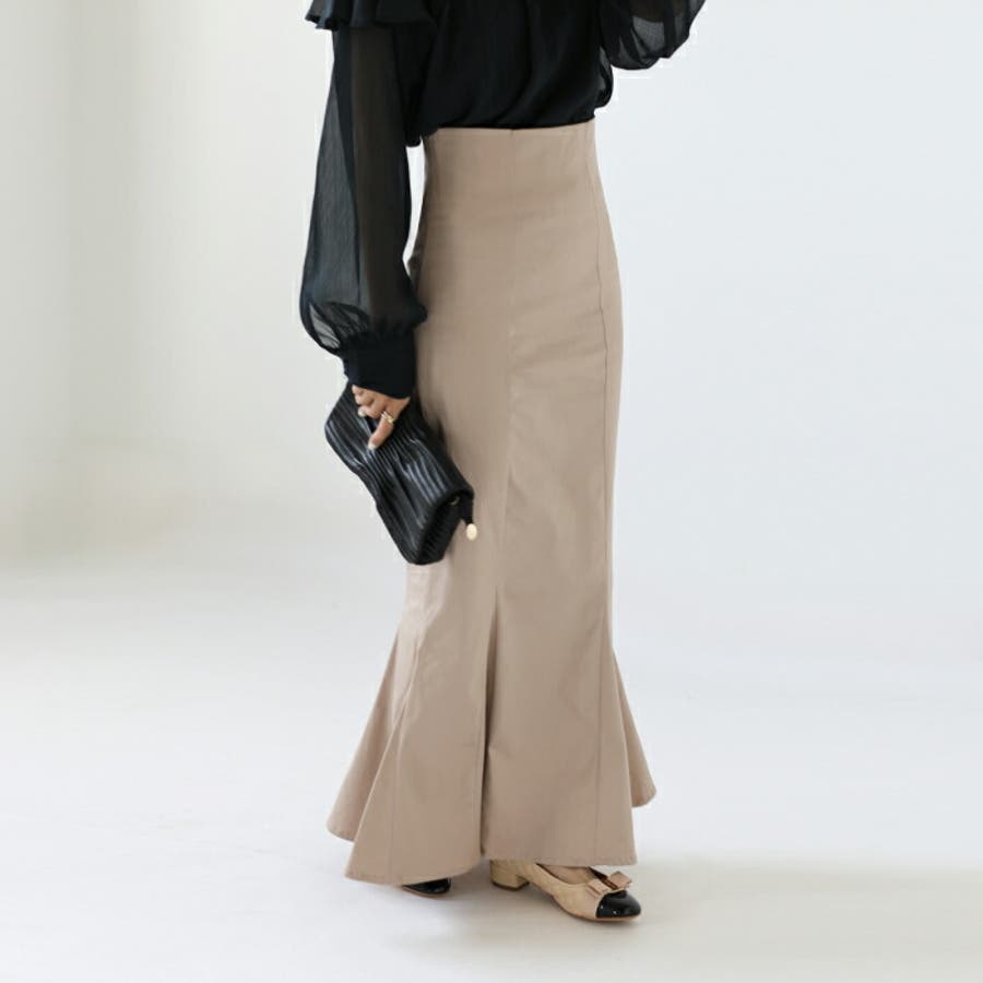 ハイウエストにロング丈、マーメイドシルエットで、