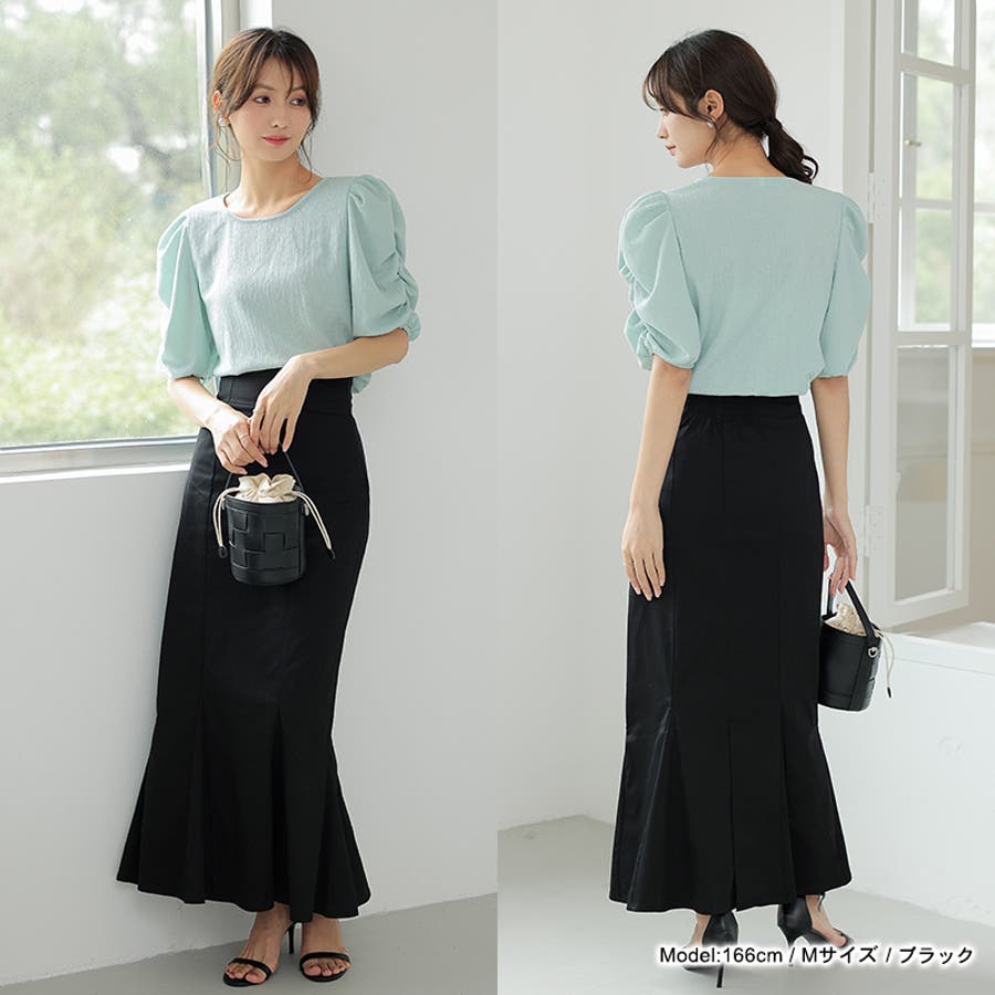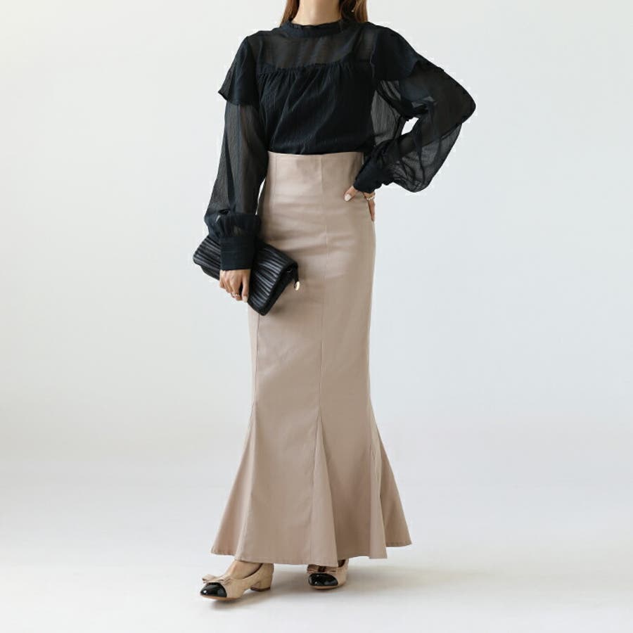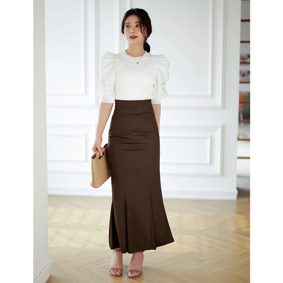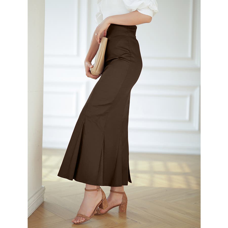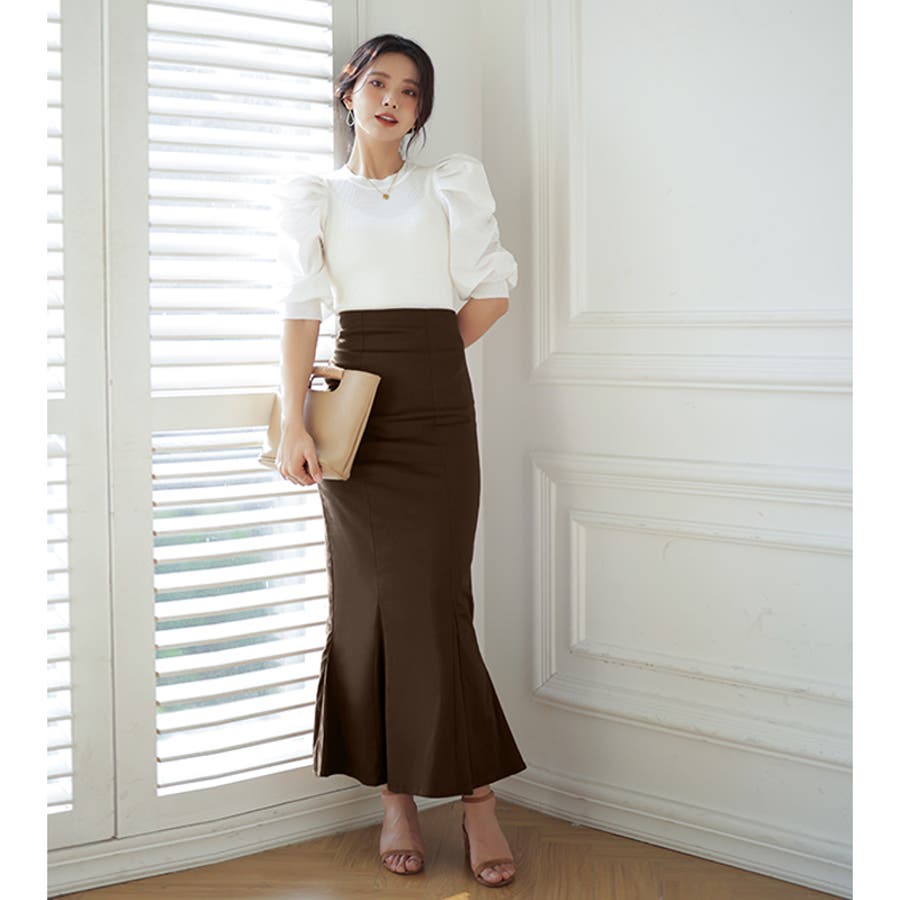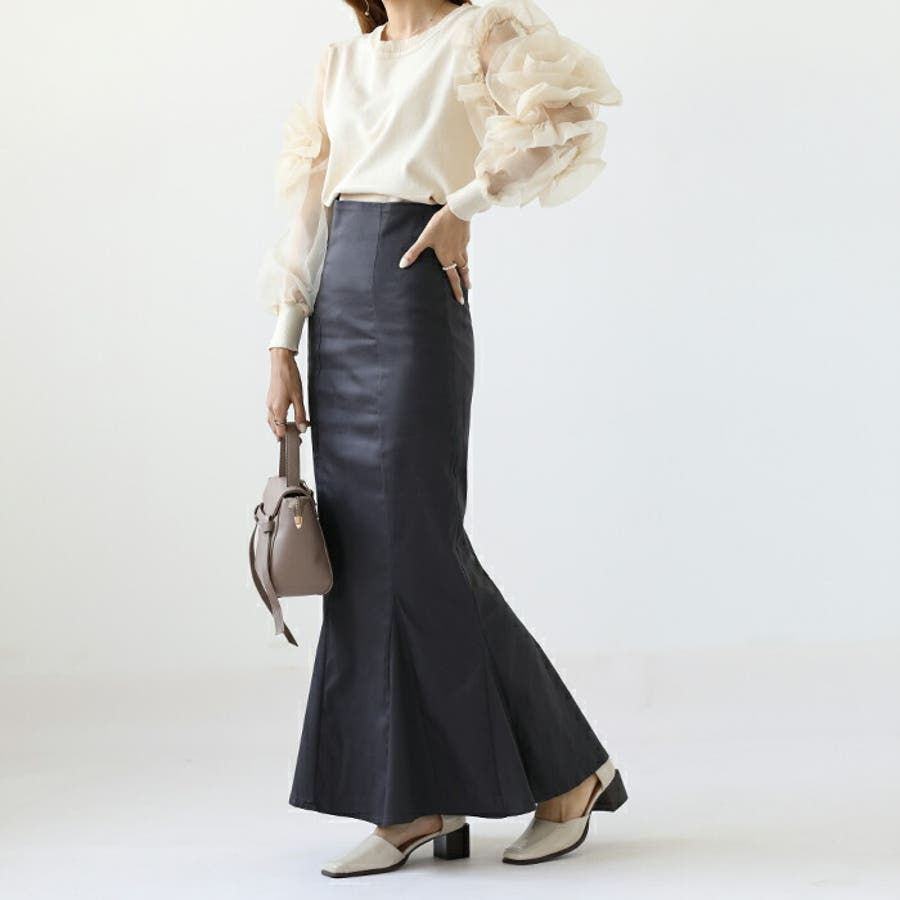 ハイウエストにロング丈、マーメイドシルエットで、