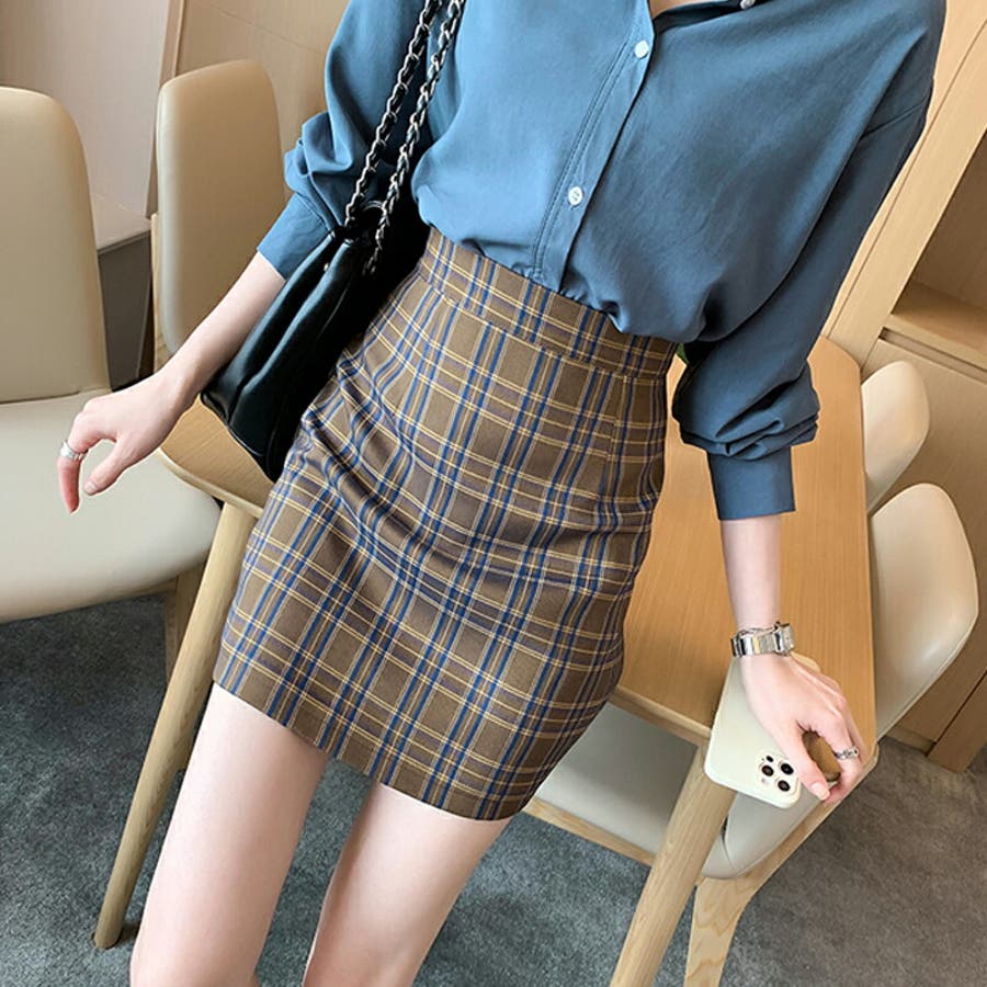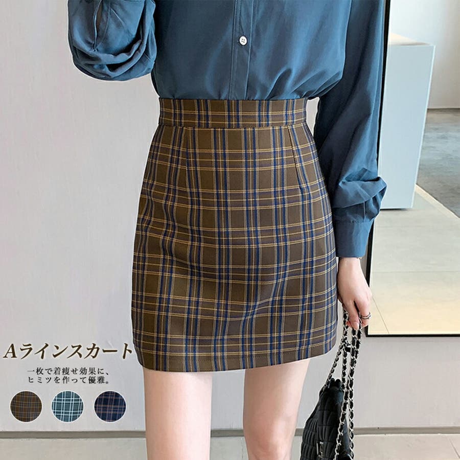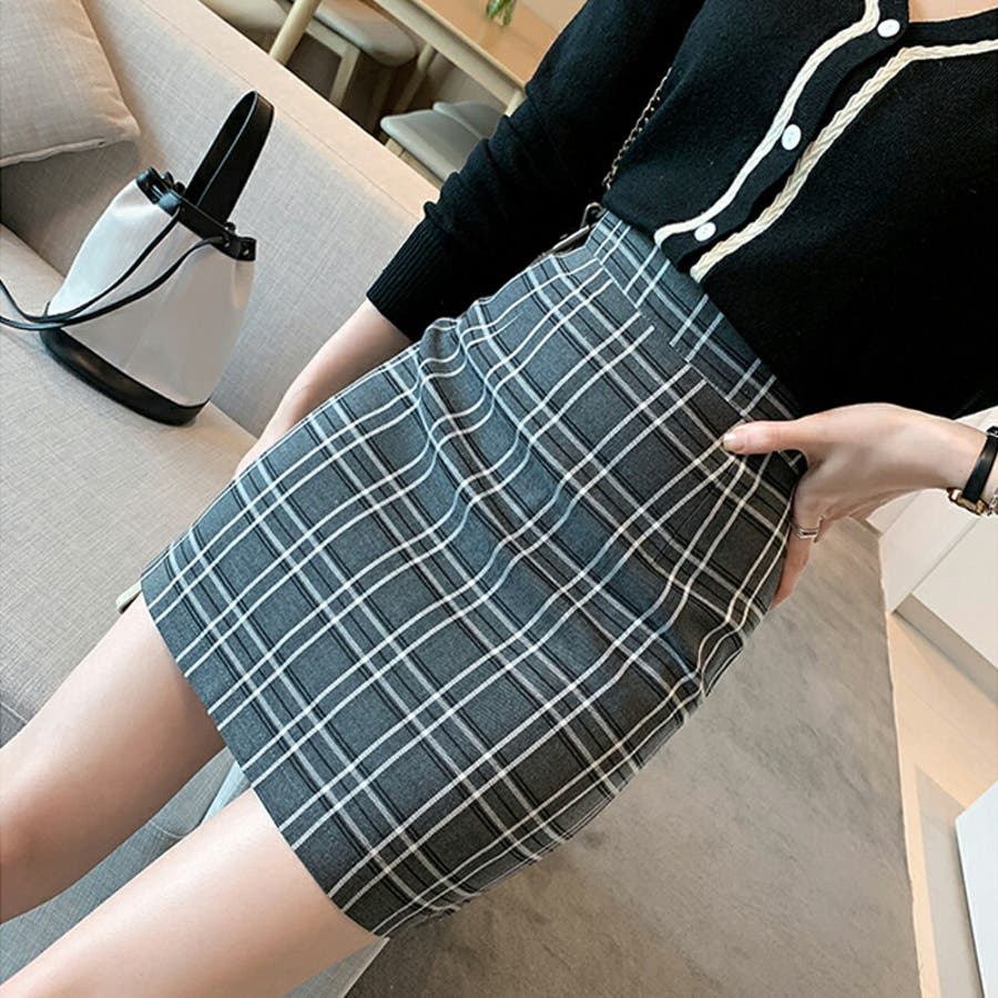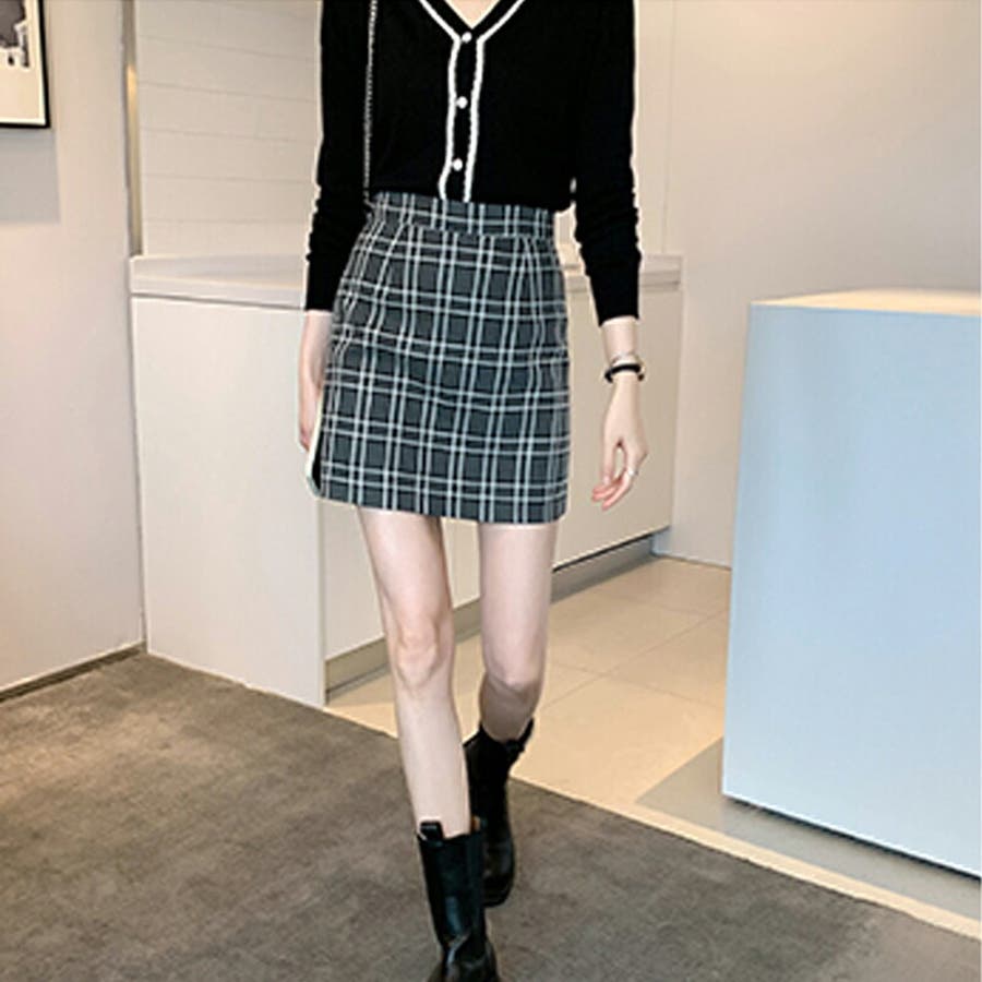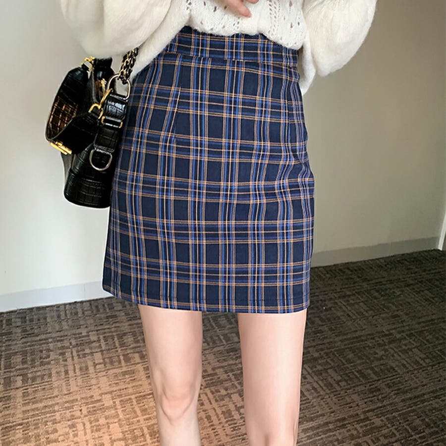 S M L チェック柄 ミニ丈 ポリエステル ハイウエスト タイト 脚長効果 スタイルアップ 着痩せ ママコーデ 20代 30代 cocomomo 2021秋冬 秋 秋冬 秋服 韓国 韓国ファッション セクシー 冬 冬服