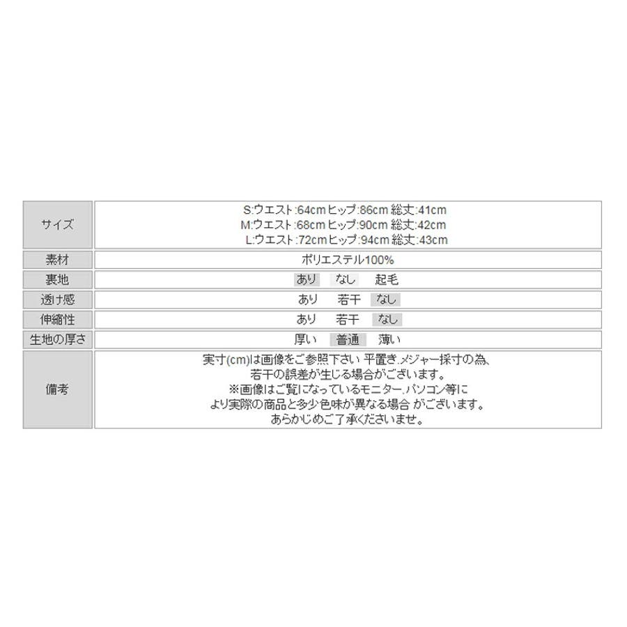 | サイズ | S:ウエスト64cm ヒップ86cm 総丈41cm M:ウエスト68cm ヒップ90cm 総丈42cm L:ウエスト72cm ヒップ94cm 総丈43cm |