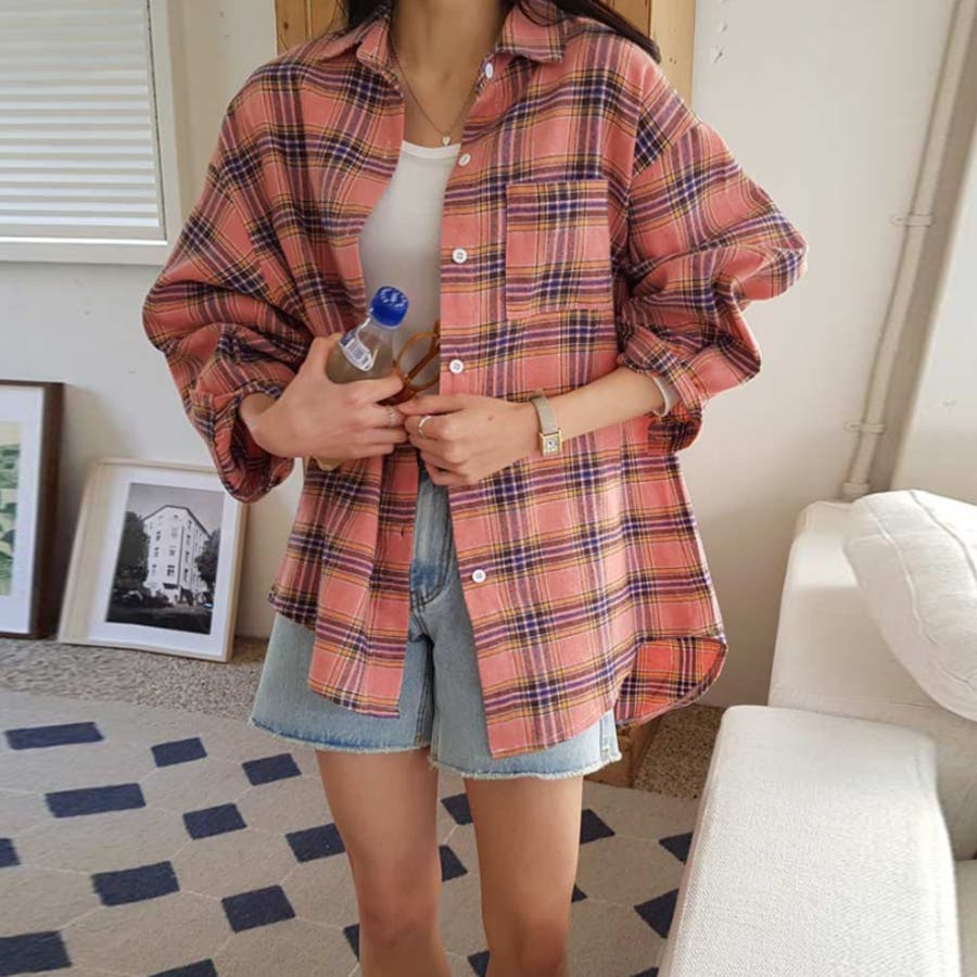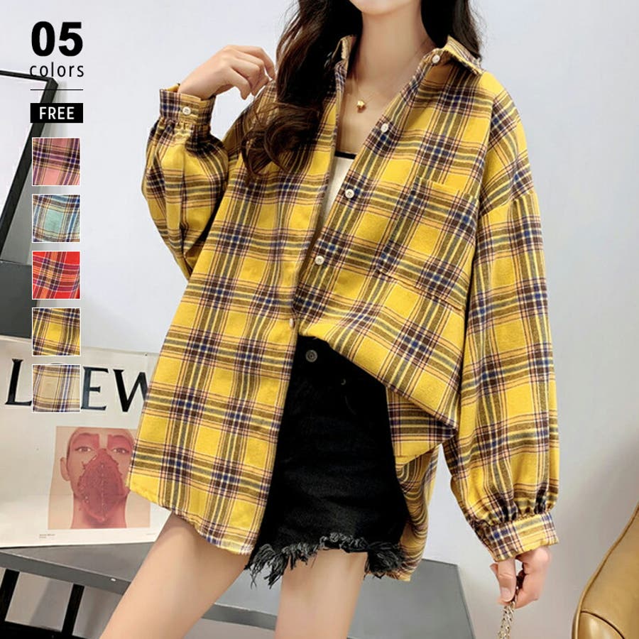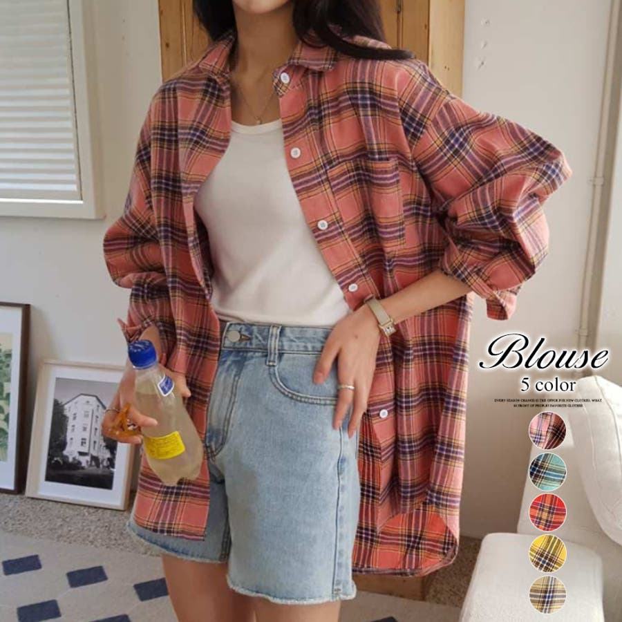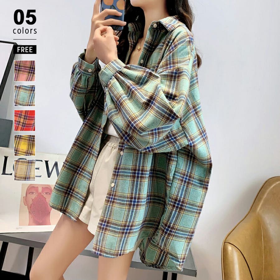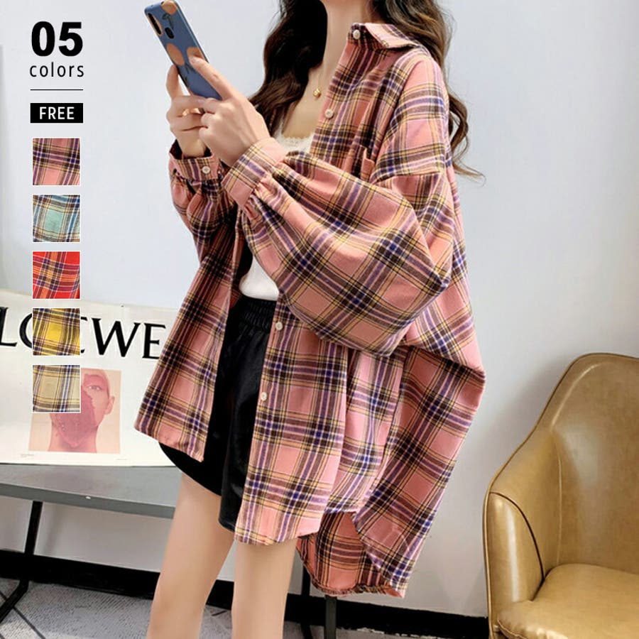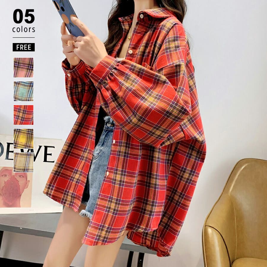 Free チェック柄 長袖 綿 コットン ポリエステル オーバーサイズ ドロップショルダー カジュアル ママコーデ 20代 30代 40代 50代 cocomomo 春 春服 秋 秋服 秋冬 韓国 韓国ファッション 冬 冬服