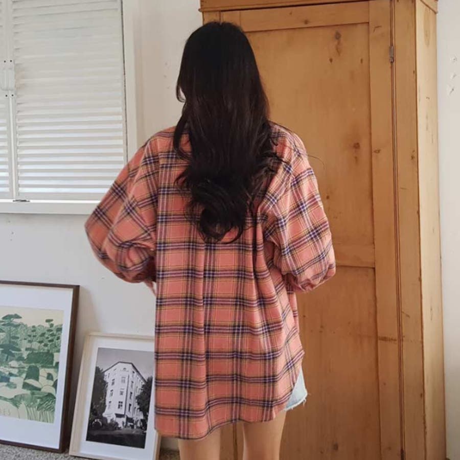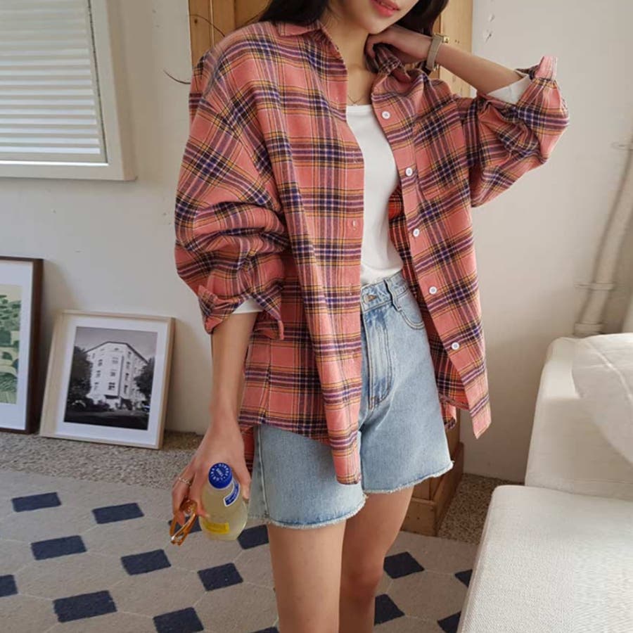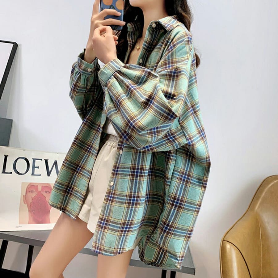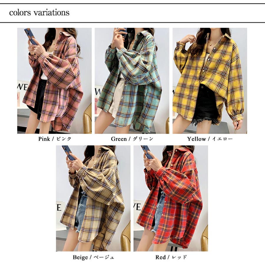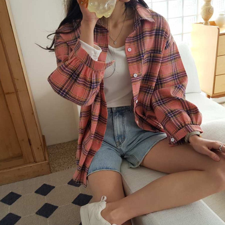 Free チェック柄 長袖 綿 コットン ポリエステル オーバーサイズ ドロップショルダー カジュアル ママコーデ 20代 30代 40代 50代 cocomomo 春 春服 秋 秋服 秋冬 韓国 韓国ファッション 冬 冬服