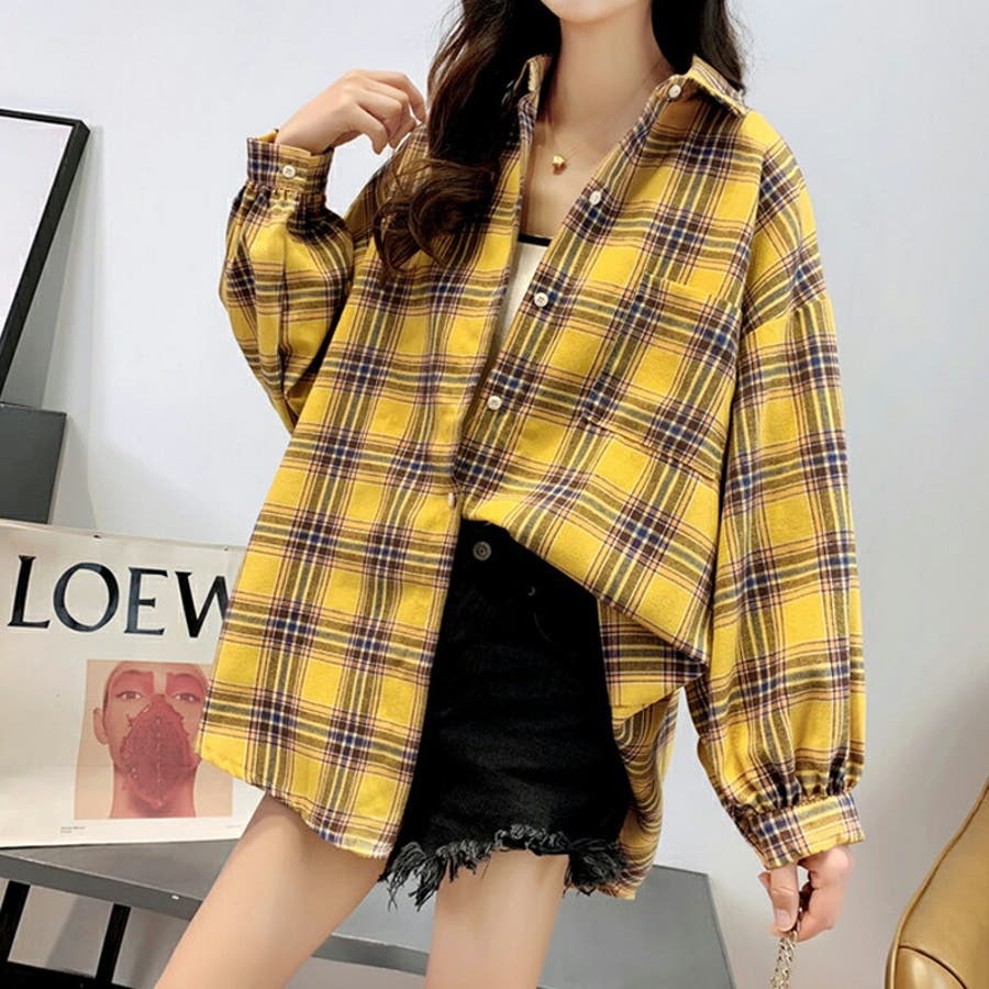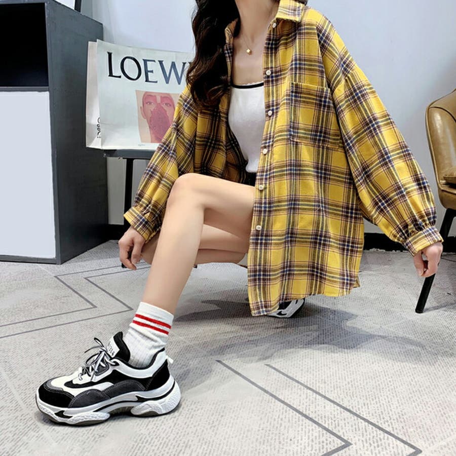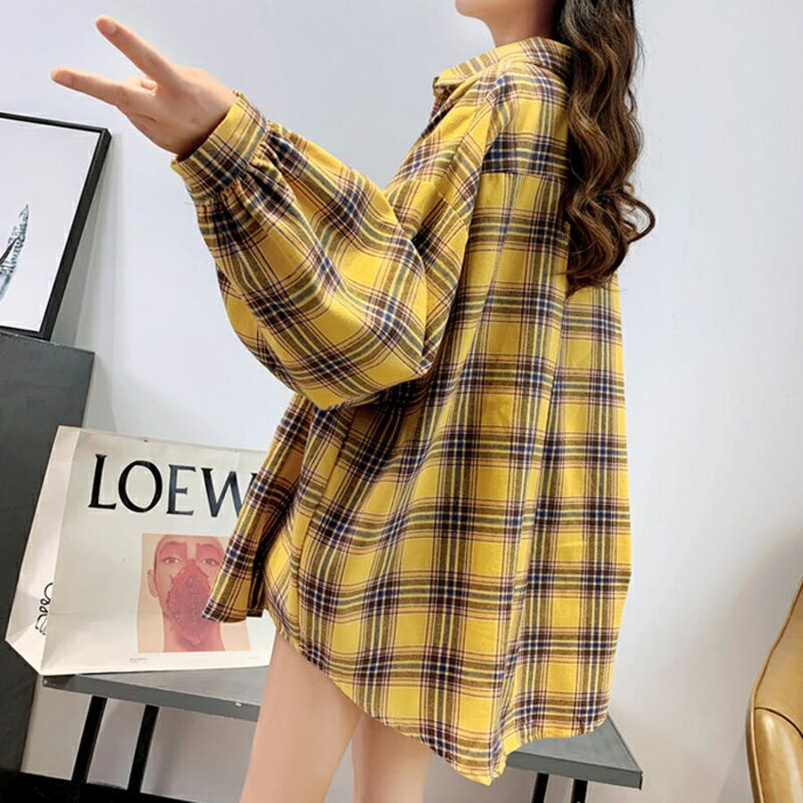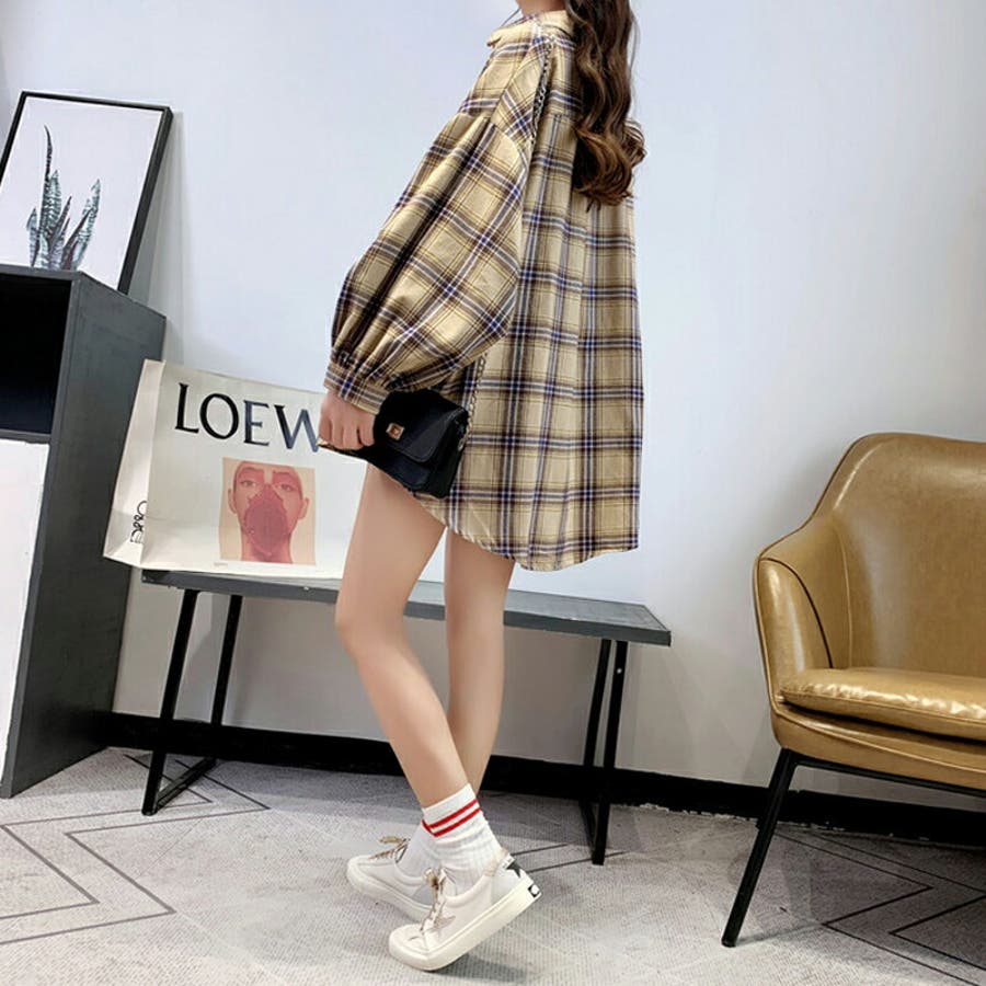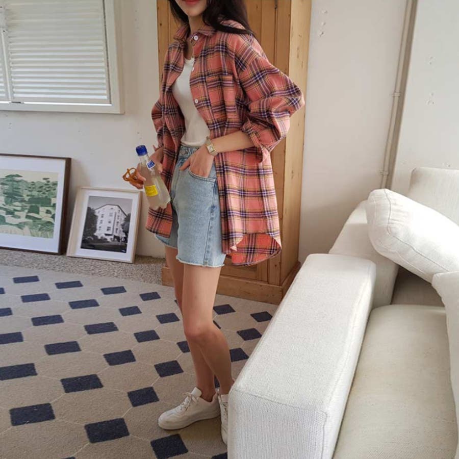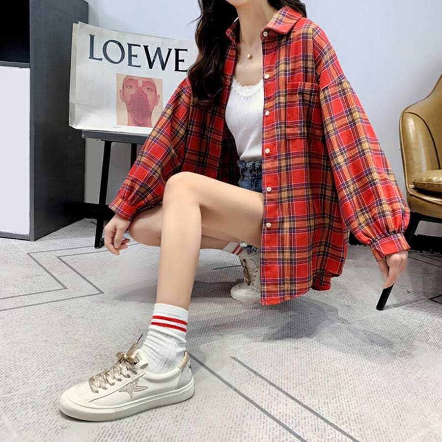 Free チェック柄 長袖 綿 コットン ポリエステル オーバーサイズ ドロップショルダー カジュアル ママコーデ 20代 30代 40代 50代 cocomomo 春 春服 秋 秋服 秋冬 韓国 韓国ファッション 冬 冬服