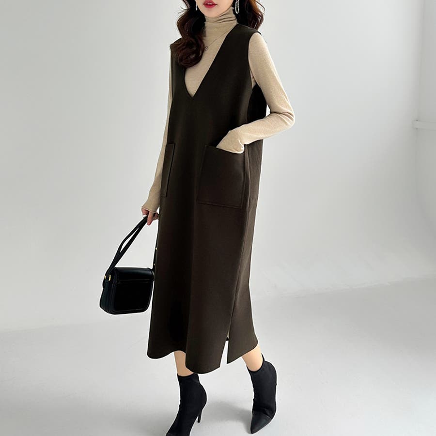 ジャンパースカート vネック ワンピース レディース ノースリーブ ロングワンピース ロング丈 ロング 秋冬 大きいサイズ きれいめ カジュアル プチプラ ミディアムワンピース ミディアム丈 ミディアム ジャンスカ ワンピ ポケット付き 細見え 着痩せ フィス オフィスカジュアル 大人 上品 可愛い ひざ丈 iライン ミモレ ミディ 膝丈 ひざ丈 丈 切りっぱなし ミモレ丈 らくちん 楽ちん かぶるだけ ゆったり 体型カバー シンプル 無地 レイヤード 重ね着 シワになりにくい シワにならない スリット フォーマル お出かけ おでかけ 旅行 高見え ナチュラル エレガント きれい きれいめ キレイめ かわいい 可愛い 大人可愛い 大人可愛いワンピース オトナ女子 おしゃれ オシャレ 女性 女子 ママ ママコーデ 母 m l サイズ mサイズ lサイズ ブラック 黒 アイボリー 生成り ネイビー 紺 ブラウン 茶色 グリーン 緑 カーキ ベージュ 新作 2023 2023aw 春 秋 冬 春服 秋服 冬服 韓国 韓国ファッション 10代 20代 30代 40代 50代 cocomomo ココモモ オフィスカジュアル秋冬