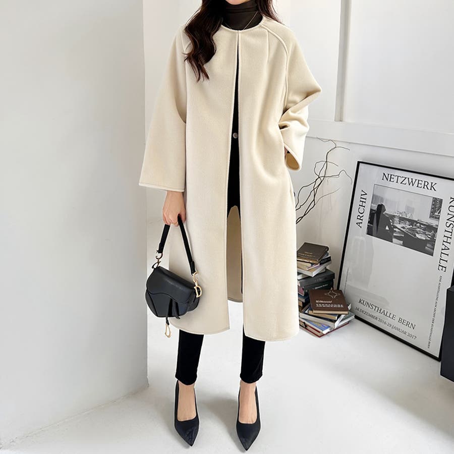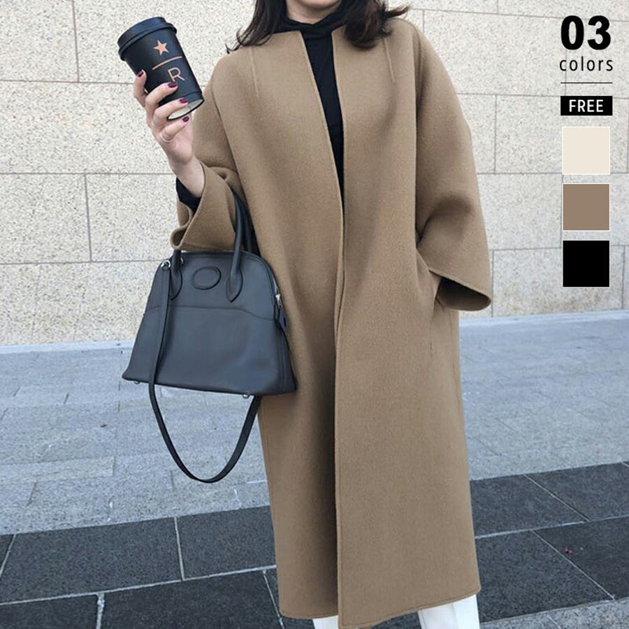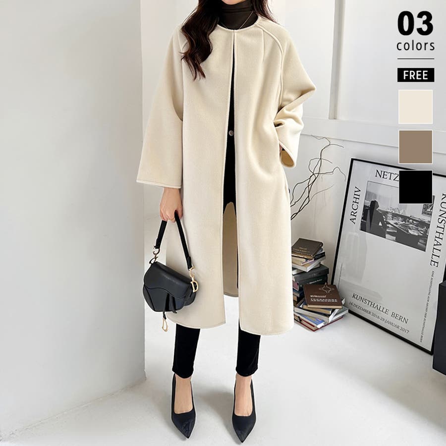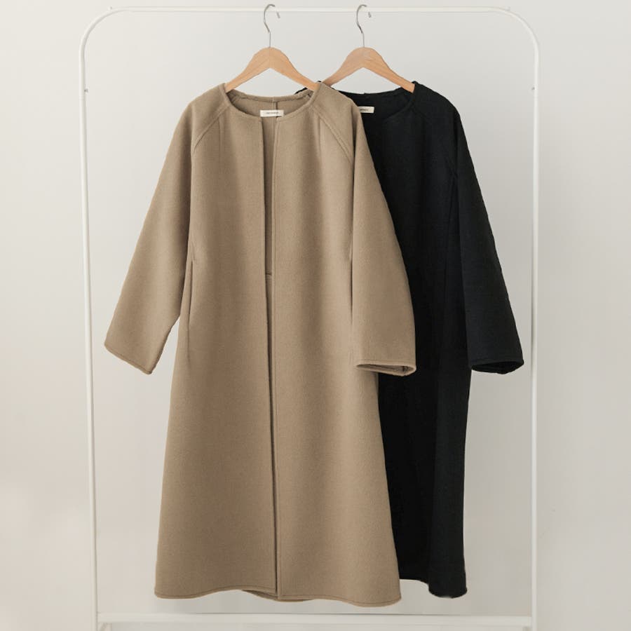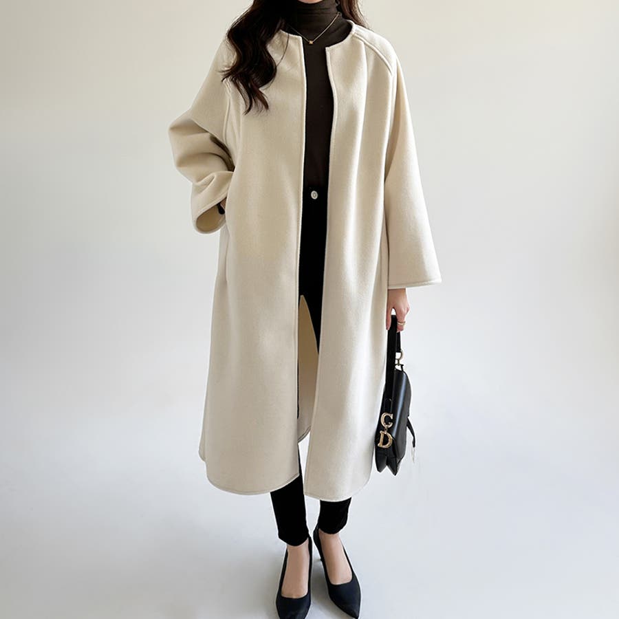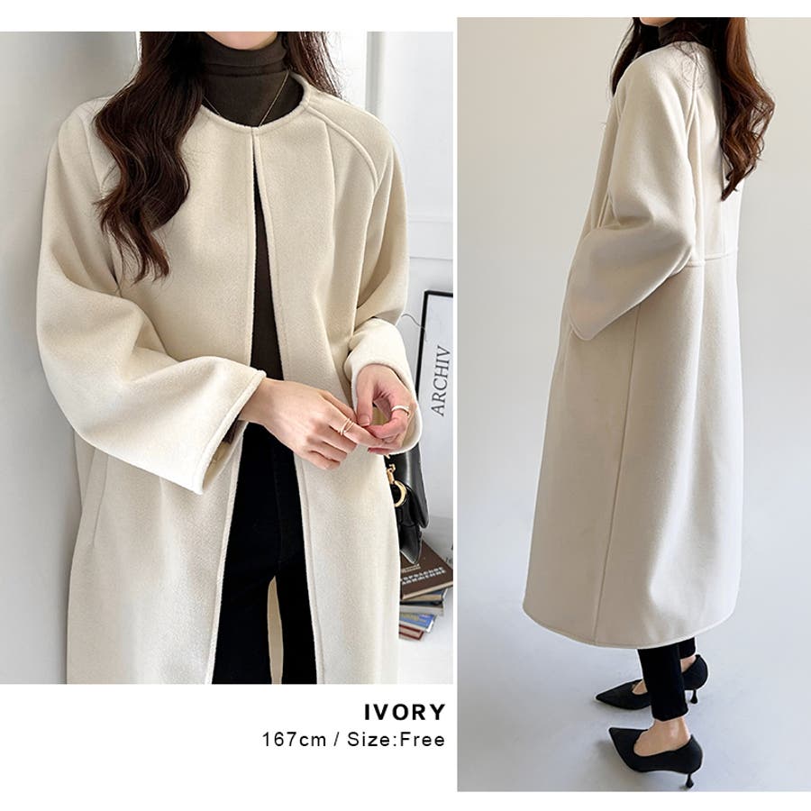 ロングコート ノーカラーコート アウター