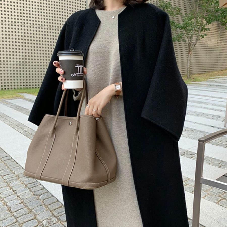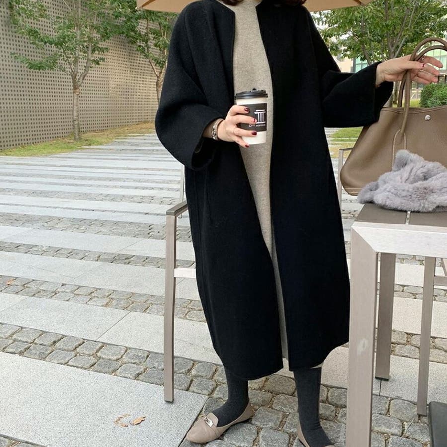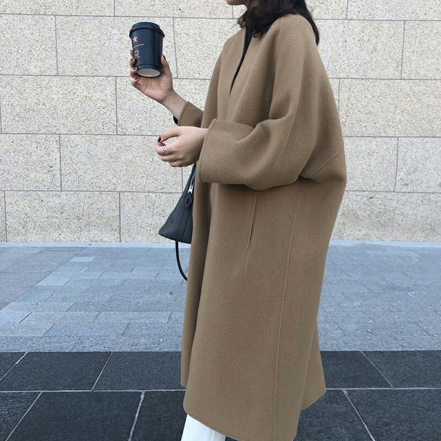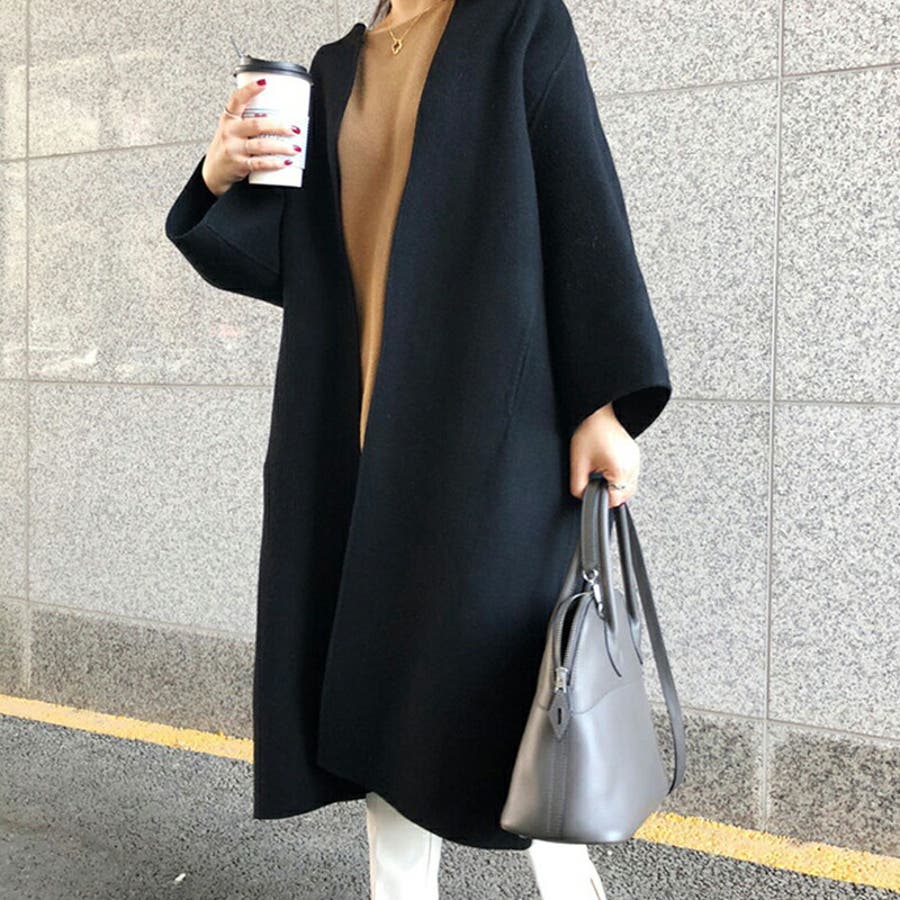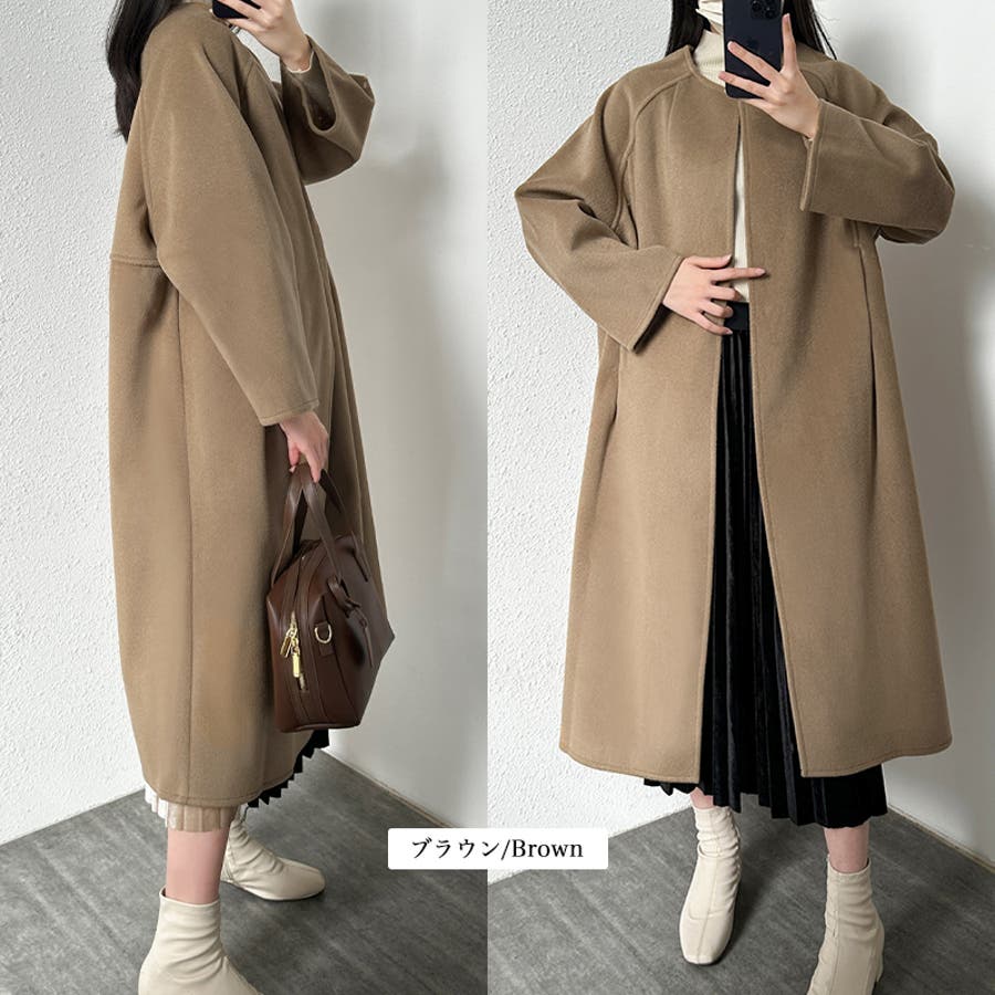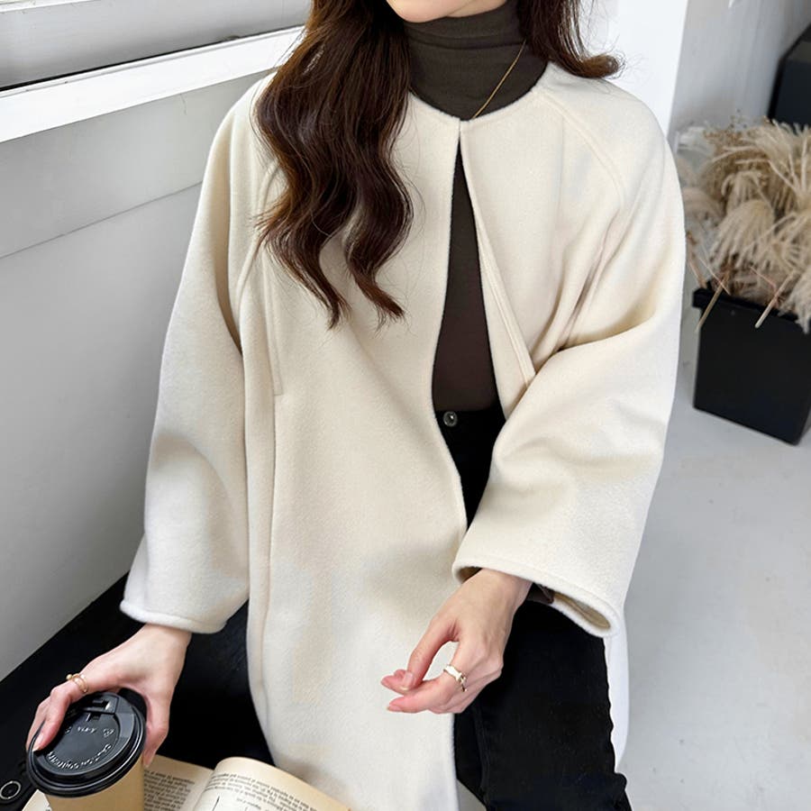 ロングコート ノーカラーコート アウター