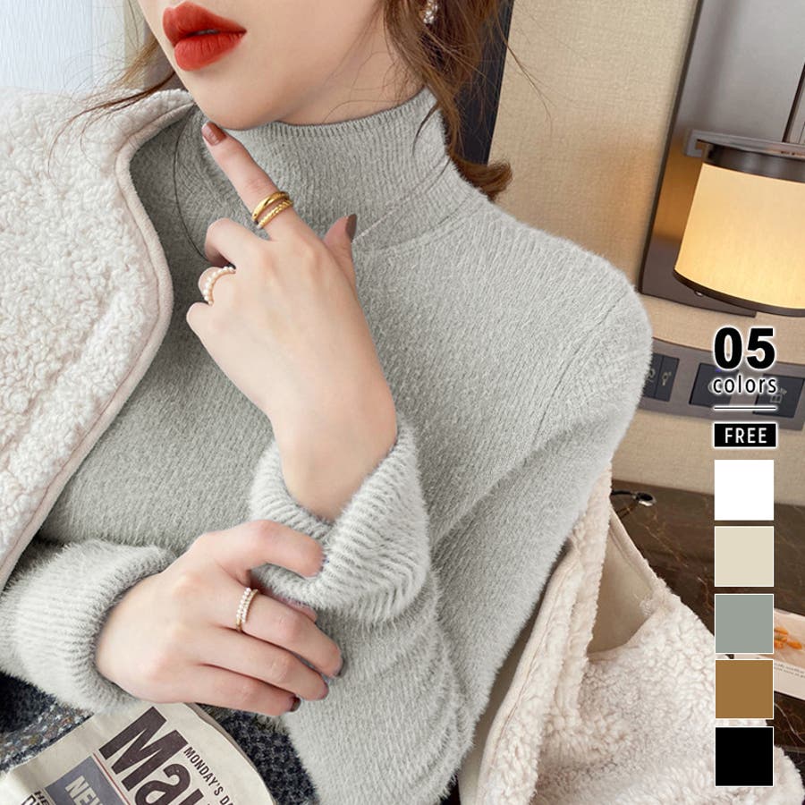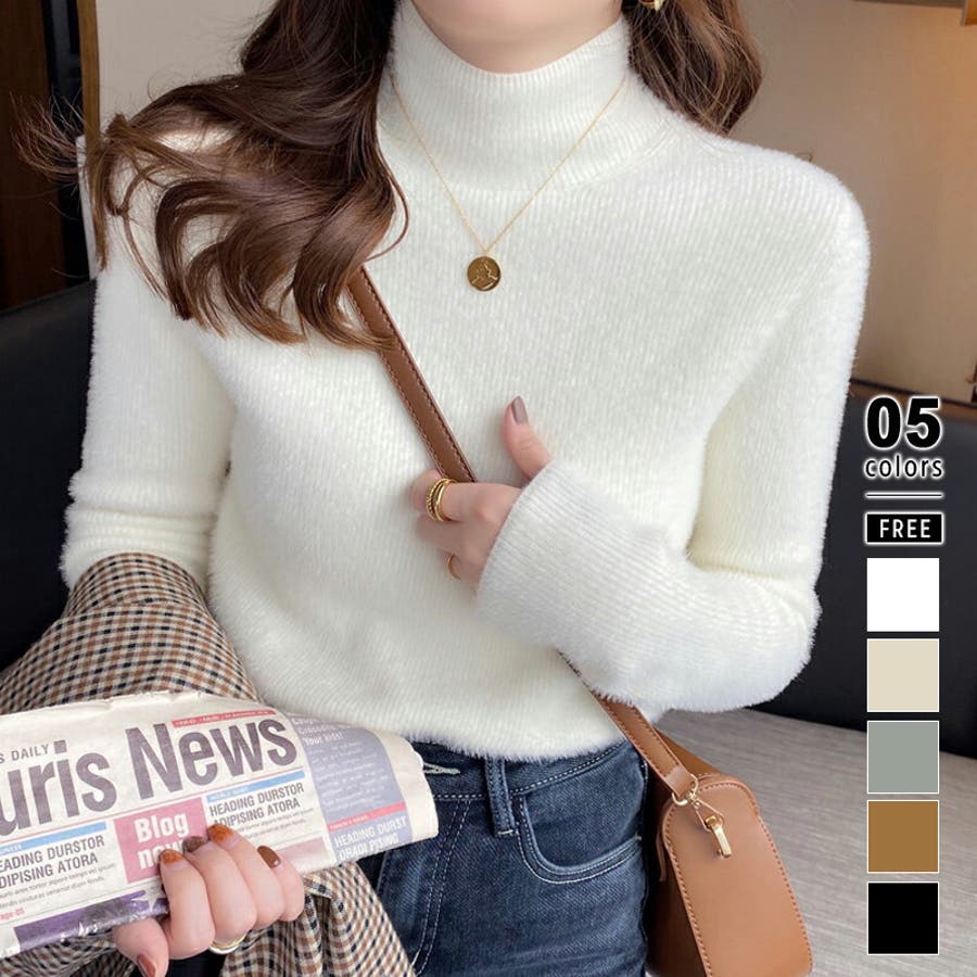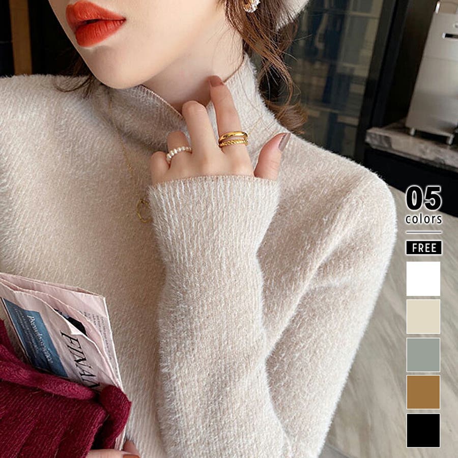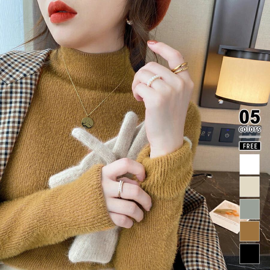レディース タートルネック 長袖 タートルネック ハイネック セクシー もこもこ ふわふわ エレガント リブニット オフィスカジュアル