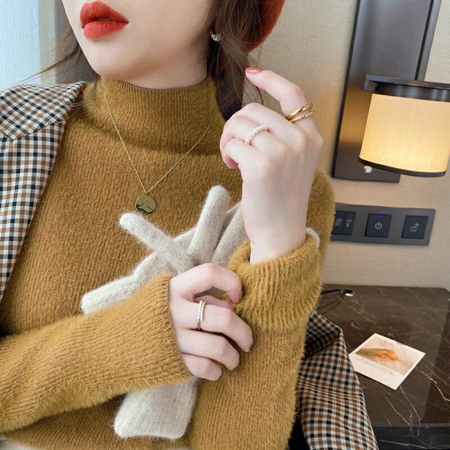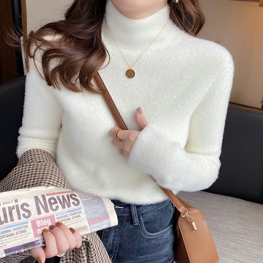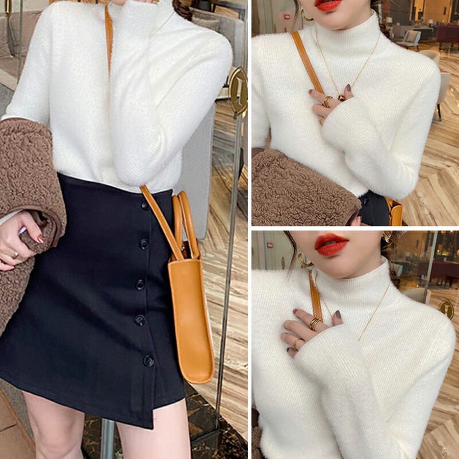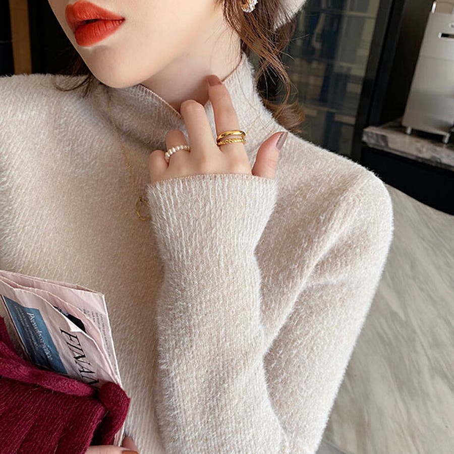 レディース タートルネック 長袖 タートルネック ハイネック セクシー もこもこ ふわふわ エレガント リブニット オフィスカジュアル