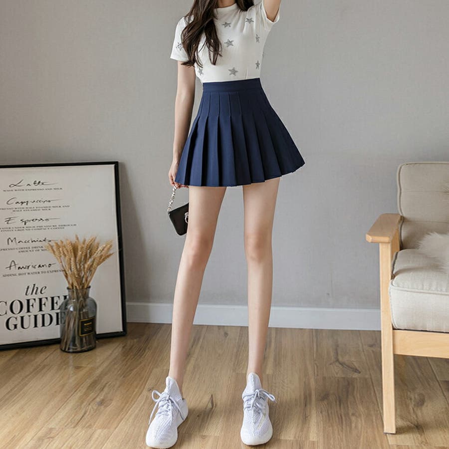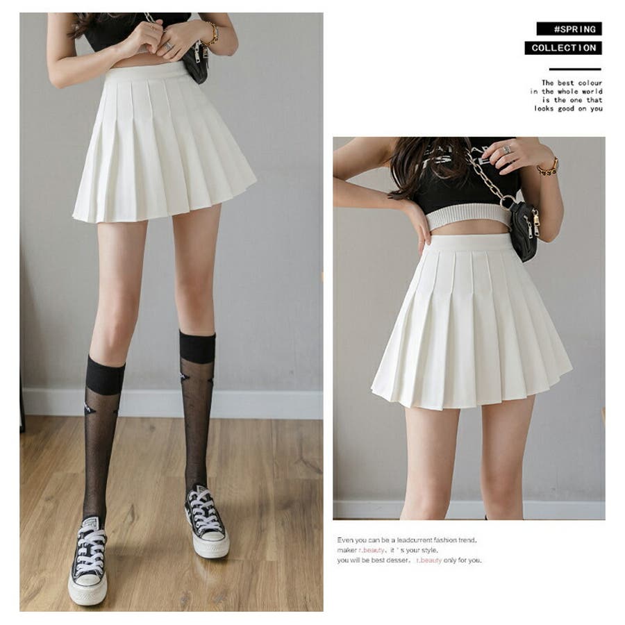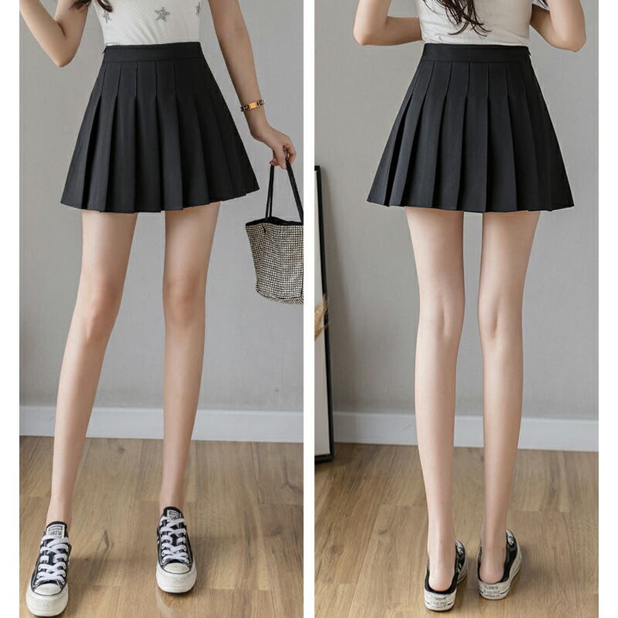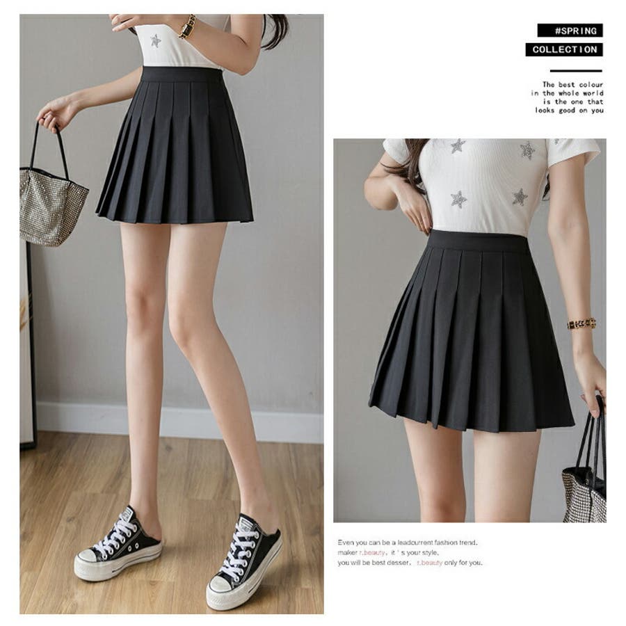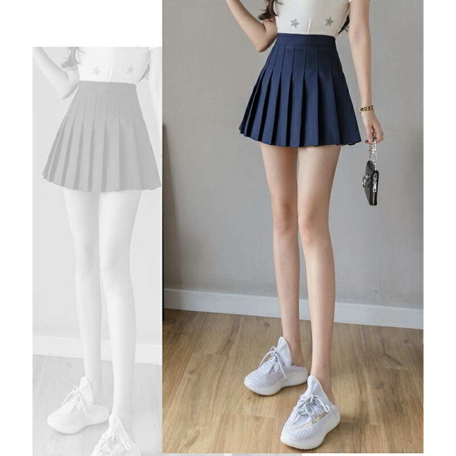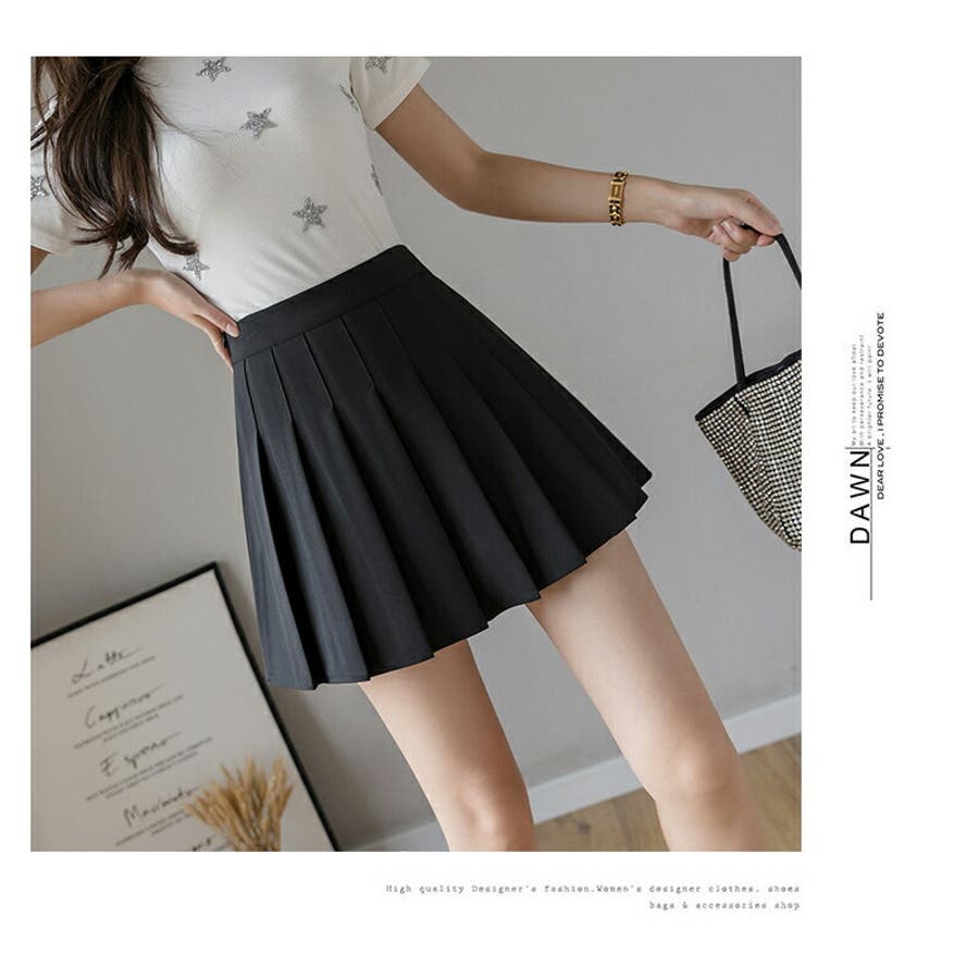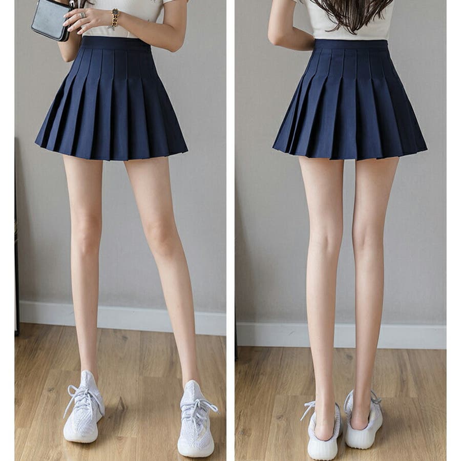 プレッピー プリーツ プレーン レディース スカート スカパン インナーパンツ付き ミニ丈 ショート丈