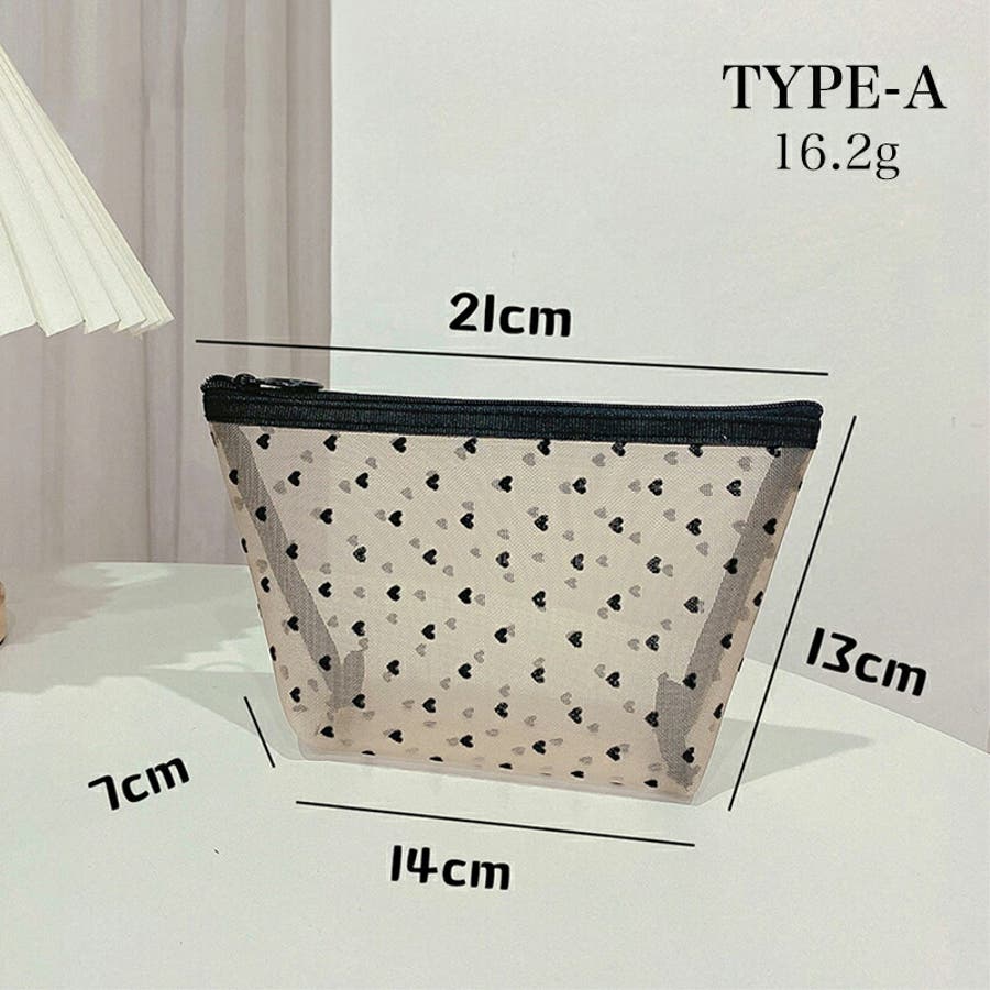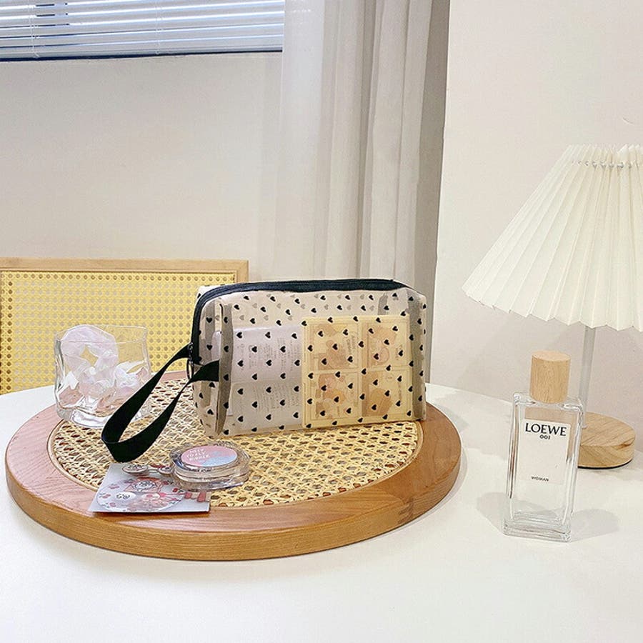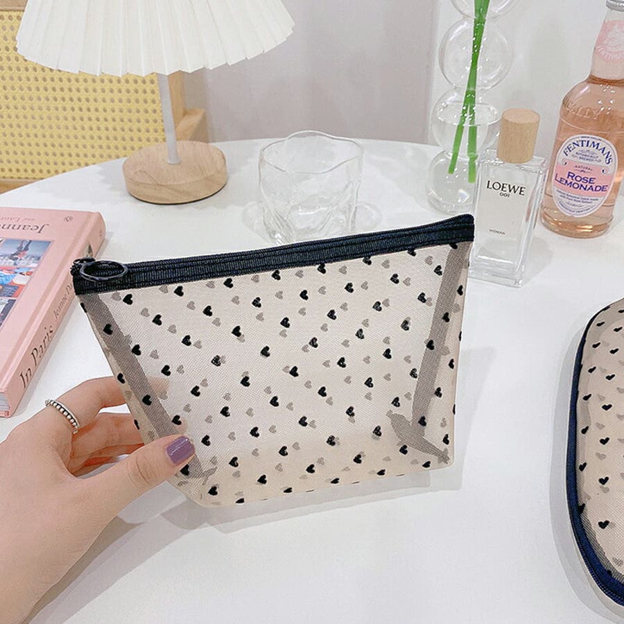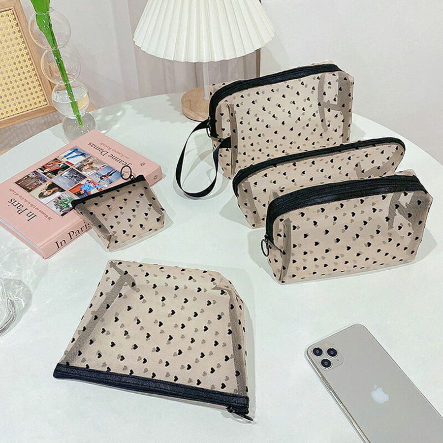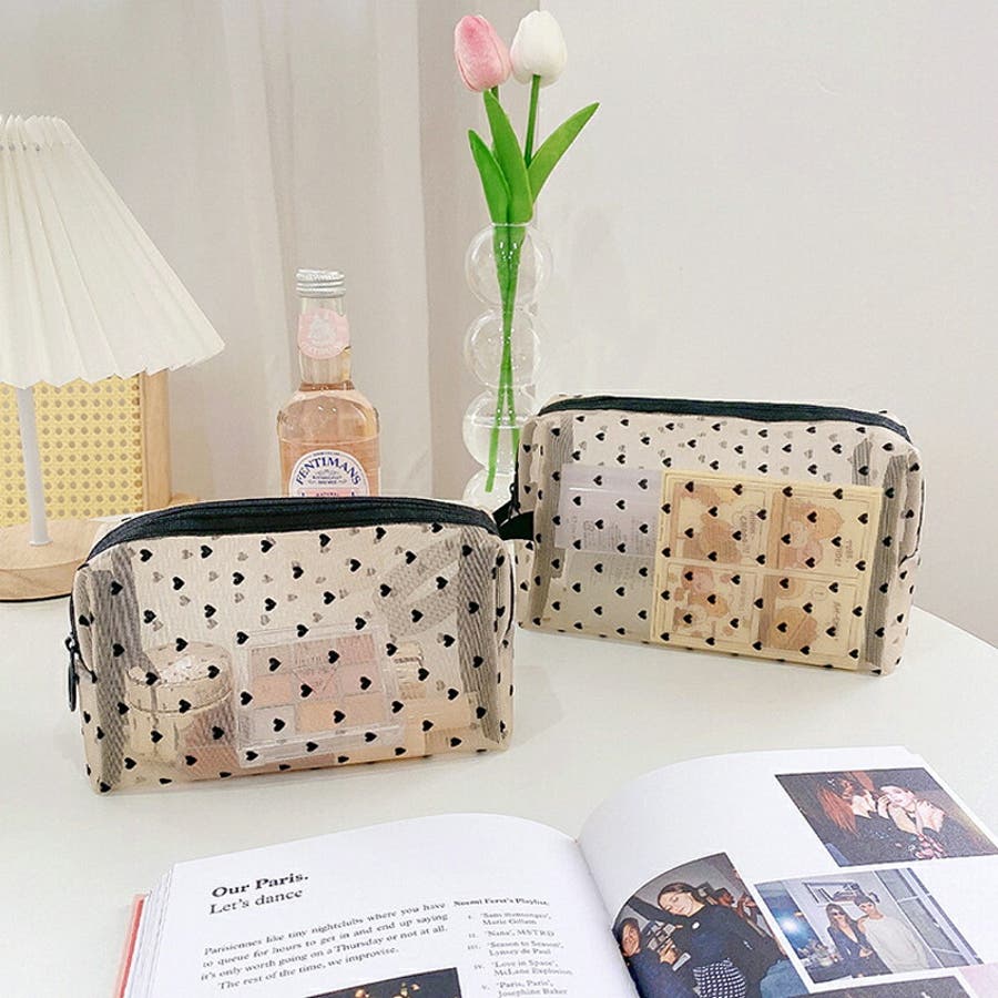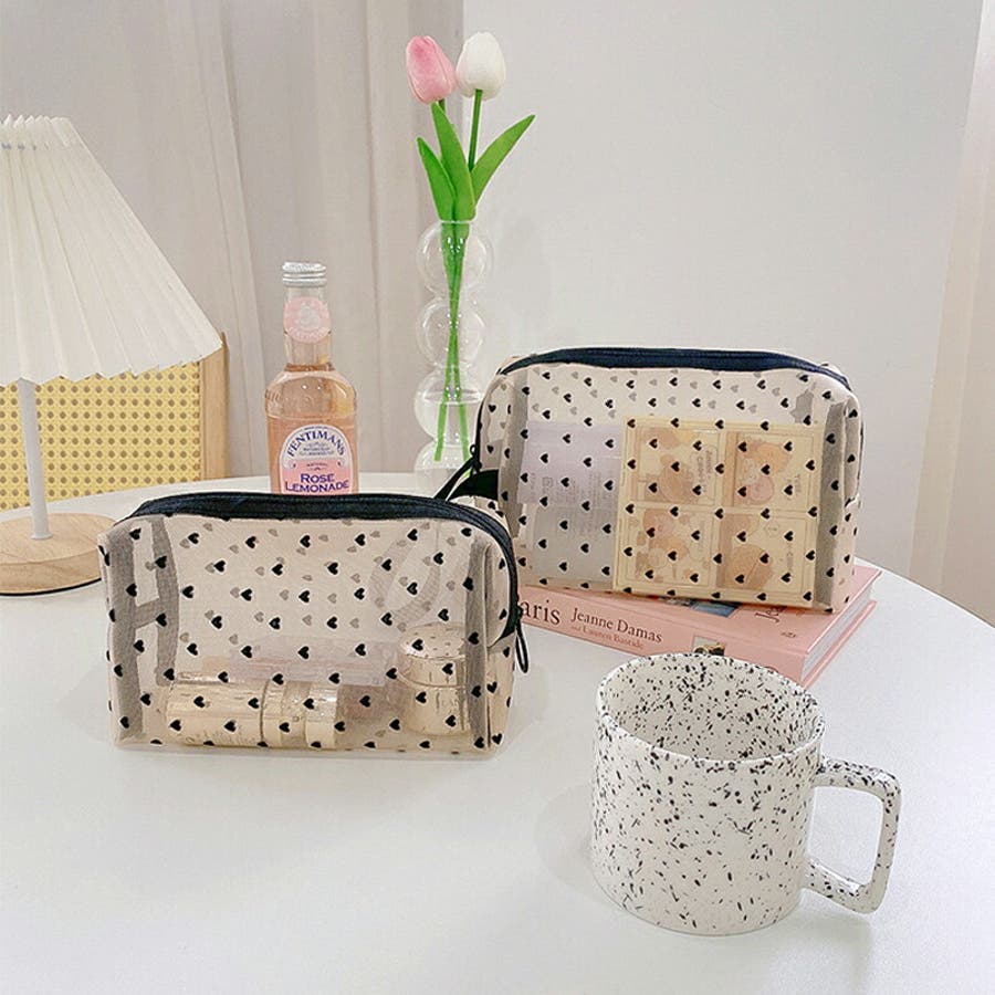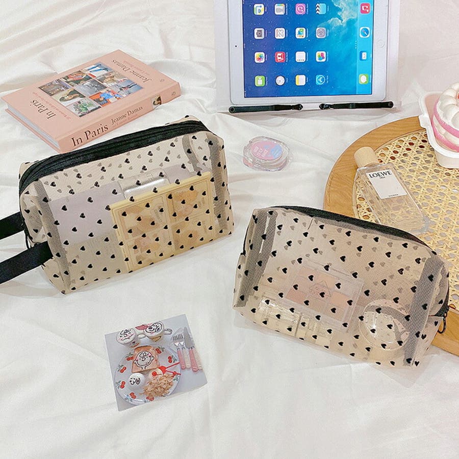 メッシュポーチ ハート柄 プリントポーチ 日用雑貨 バッグ 小物 整理 整頓 旅行 筆箱 デイリーポーチ 収納 可愛い