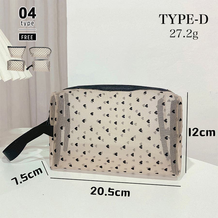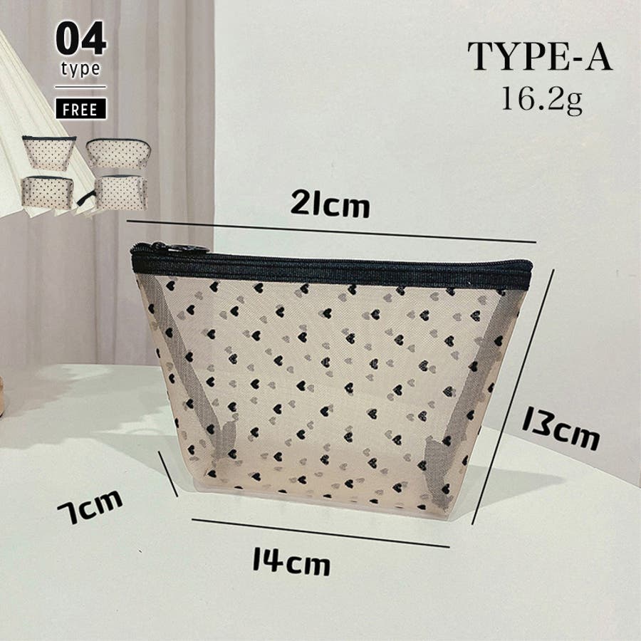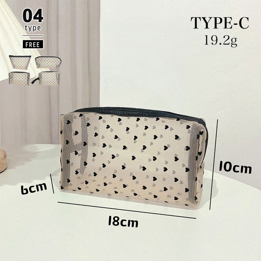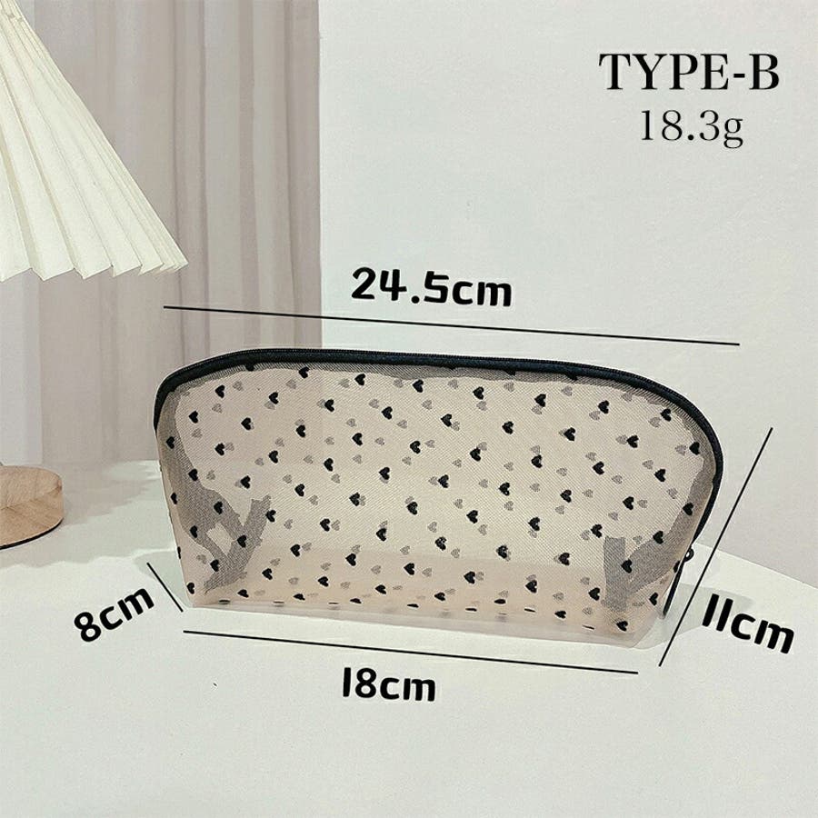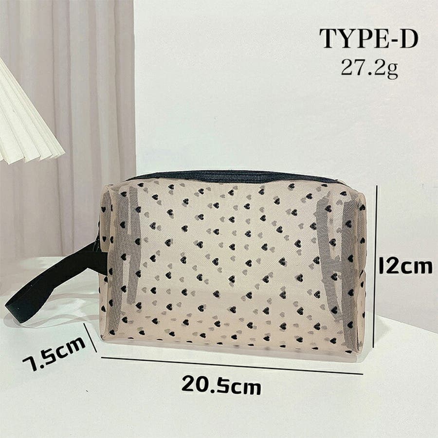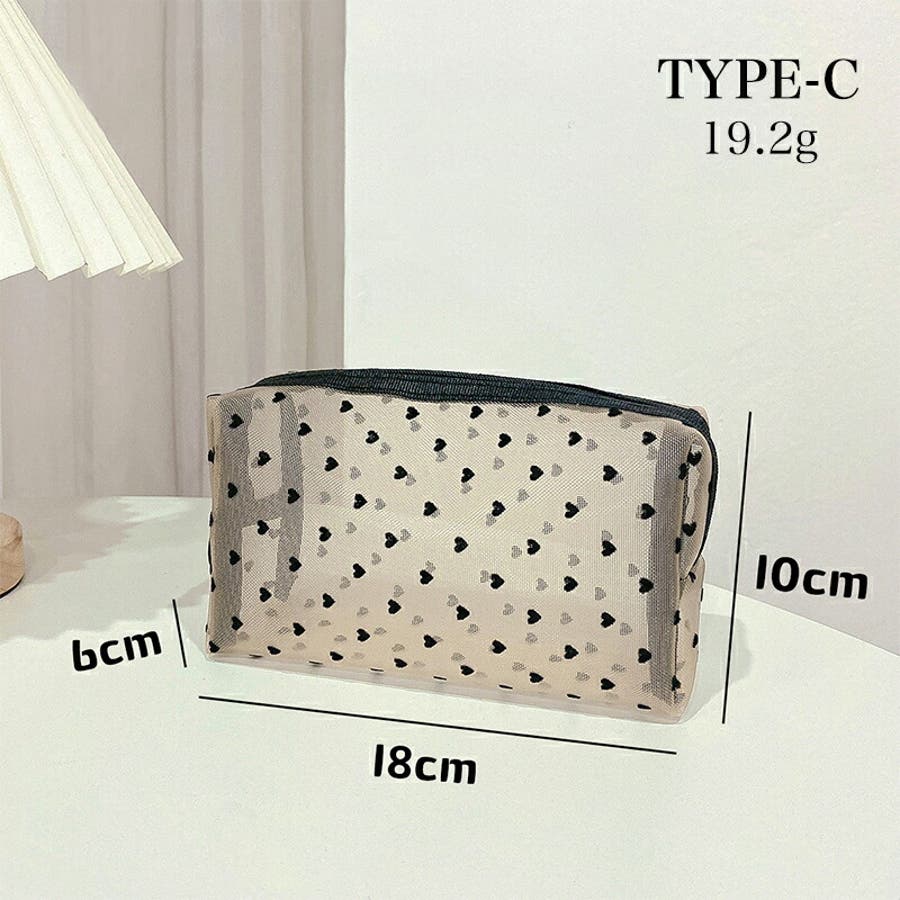 メッシュポーチ ハート柄 プリントポーチ 日用雑貨 バッグ 小物 整理 整頓 旅行 筆箱 デイリーポーチ 収納 可愛い