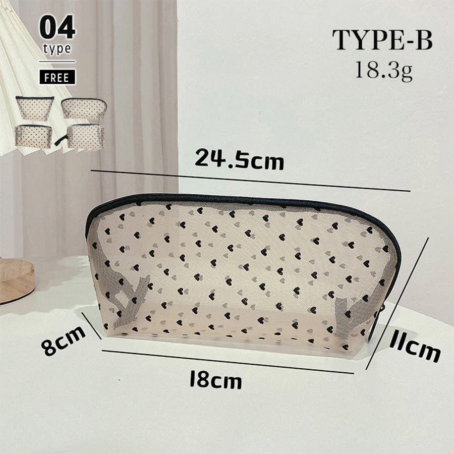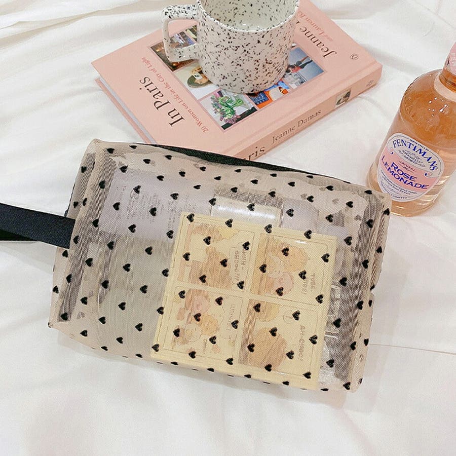 メッシュポーチ ハート柄 プリントポーチ 日用雑貨 バッグ