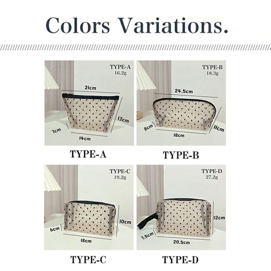 投稿日:2023.02.23もう少し大きなサイズも欲しかったです。中身が見えるポーチは迷いましたが、丸見えな感じはなく、全然大丈夫そう。