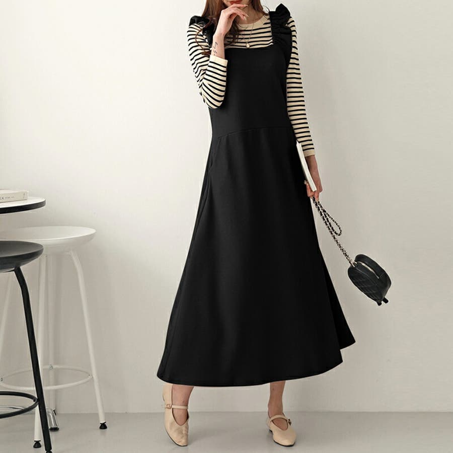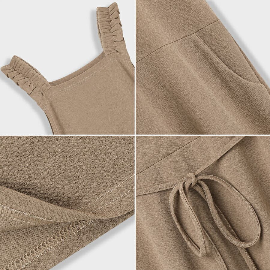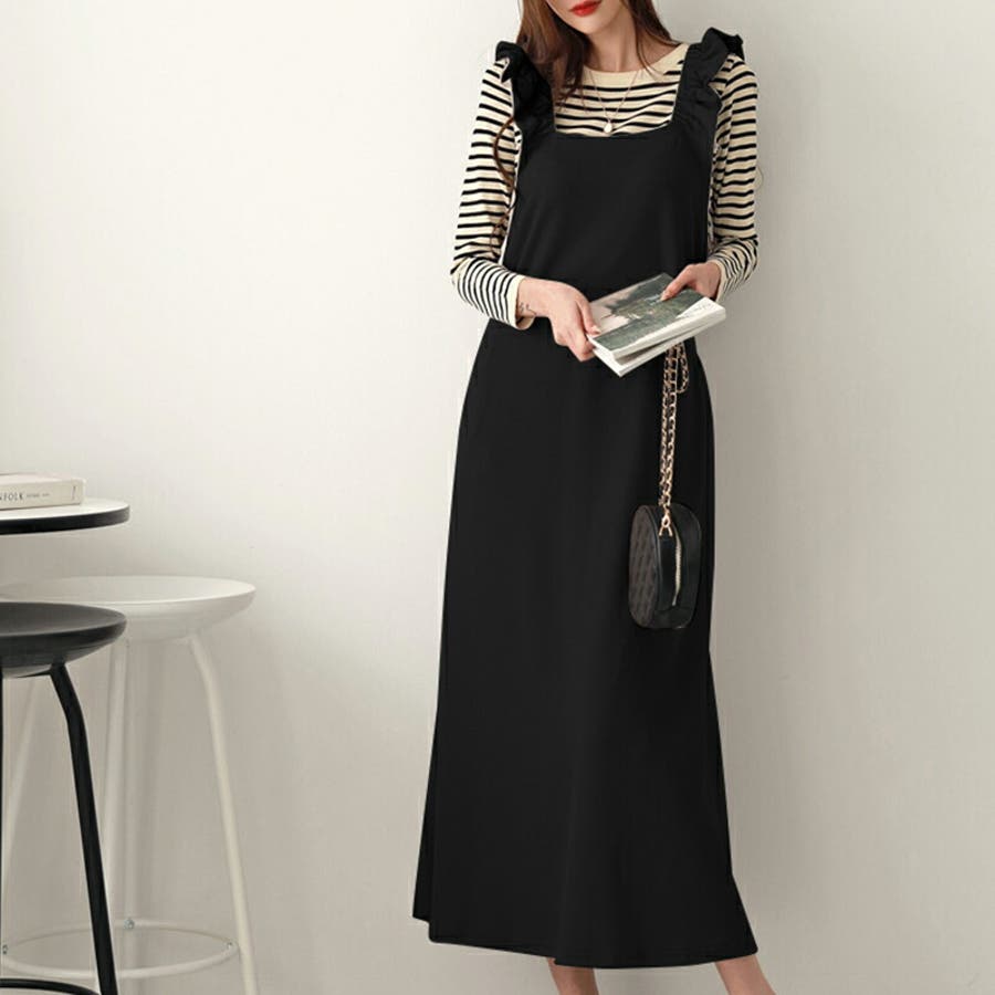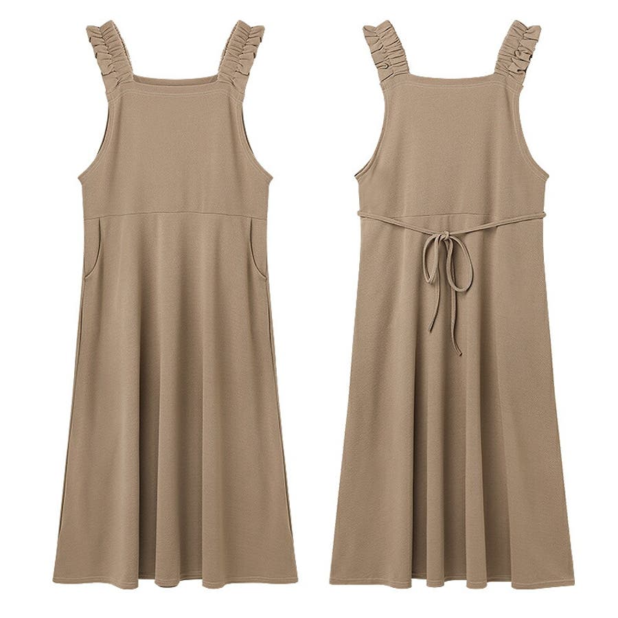 シャーリング肩ひも キャミワンピース 着回し カジュアル おしゃれ ママコーデ 韓国ファッション 20代 30代 40代 50代 cocomomo ココモモ ワンピ 春 夏 春服 夏服 韓国