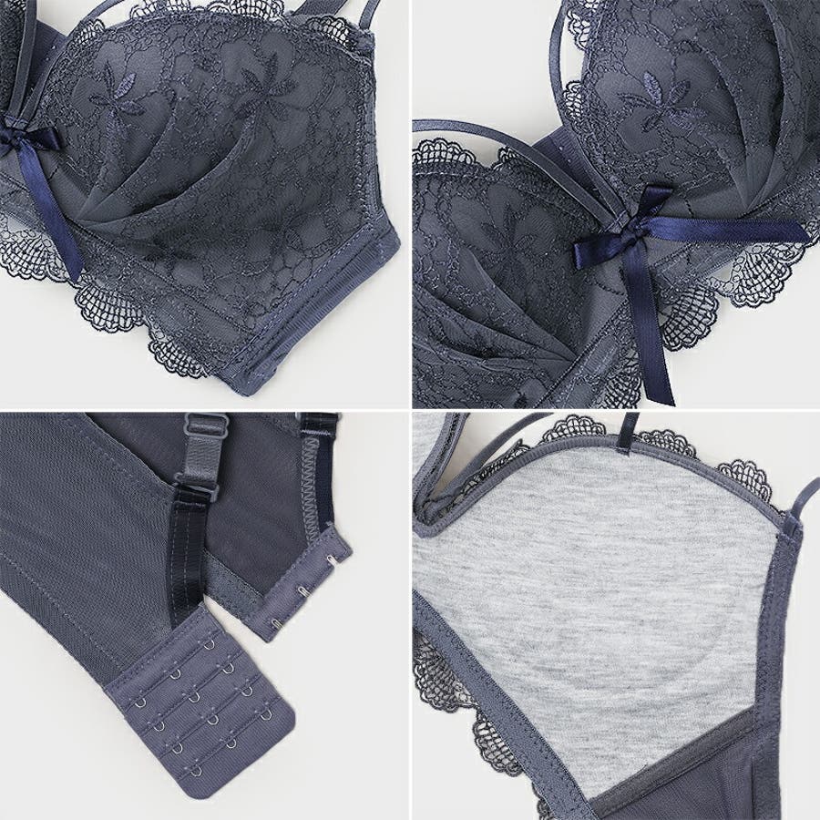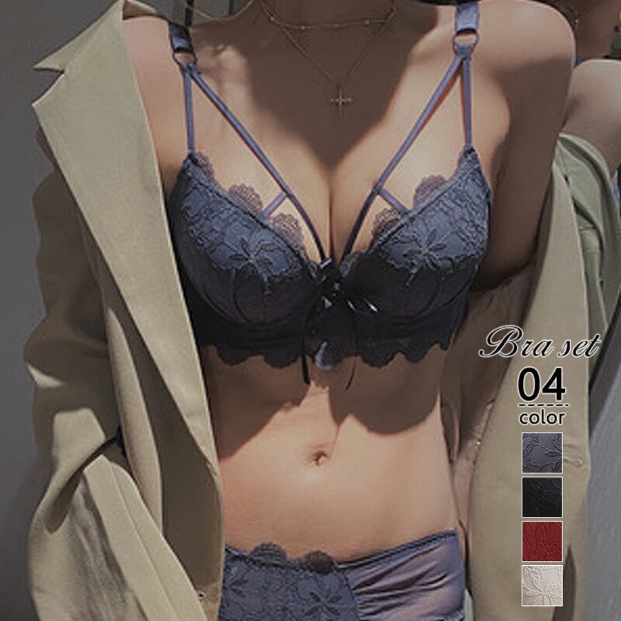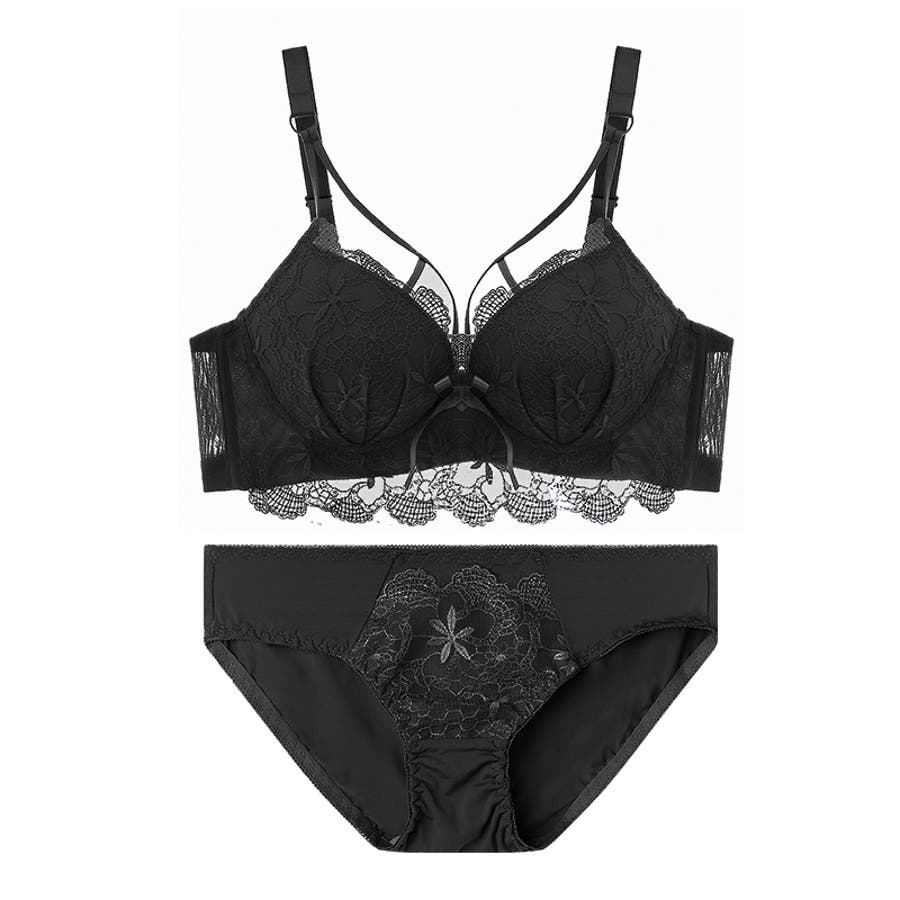 シーズン問わず使えるブラ&ショーツセット 落ち着いた雰囲気の花柄レースが特徴的◎ フロントリボンが可愛くダブルストラップで 大人上品なセクシーさを楽しめる一品♪ ストラップ長さ調整可 ストラップ取り外し不可 ホック4段3列