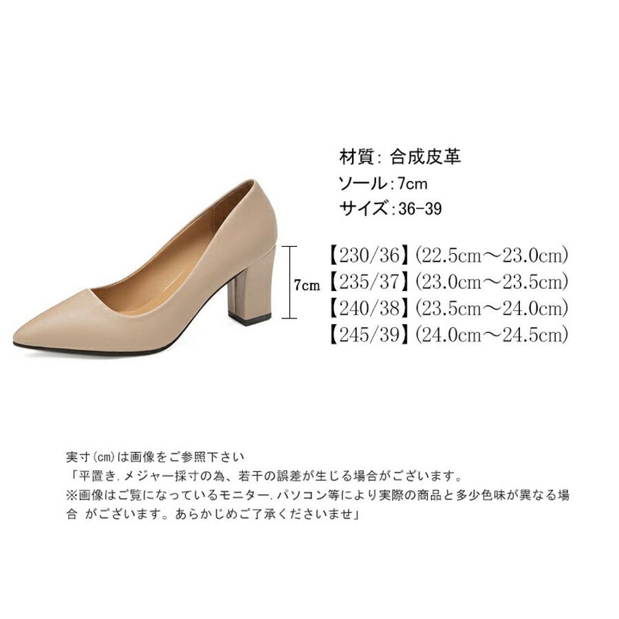 | サイズ | 36:22.5~23.0cm 37:23.0~23.5cm 38:23.5~24.0cm 39:24.0~24.5cm ヒール:7cm |