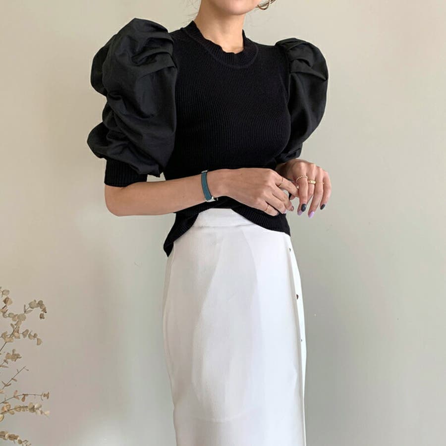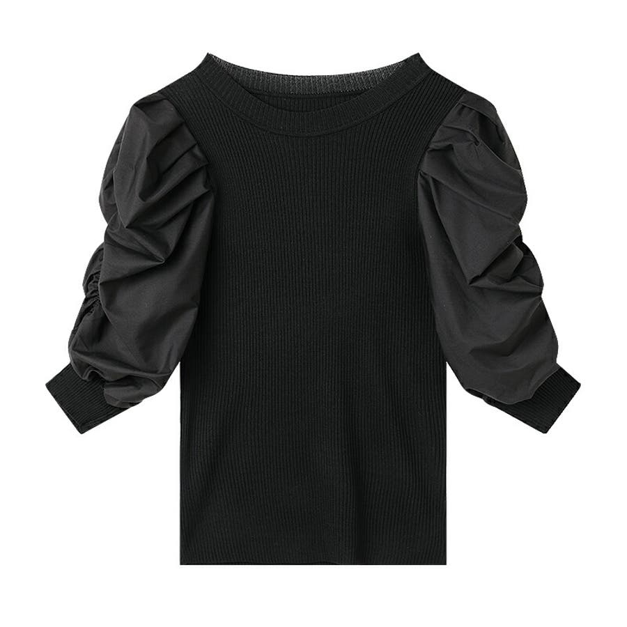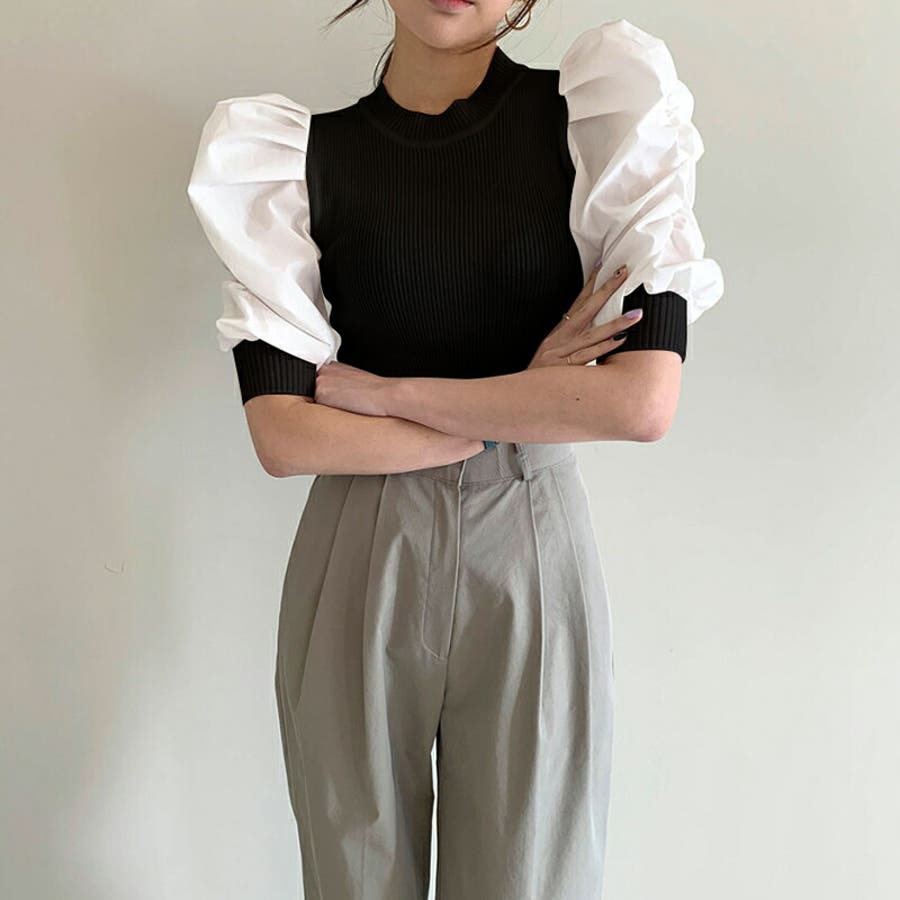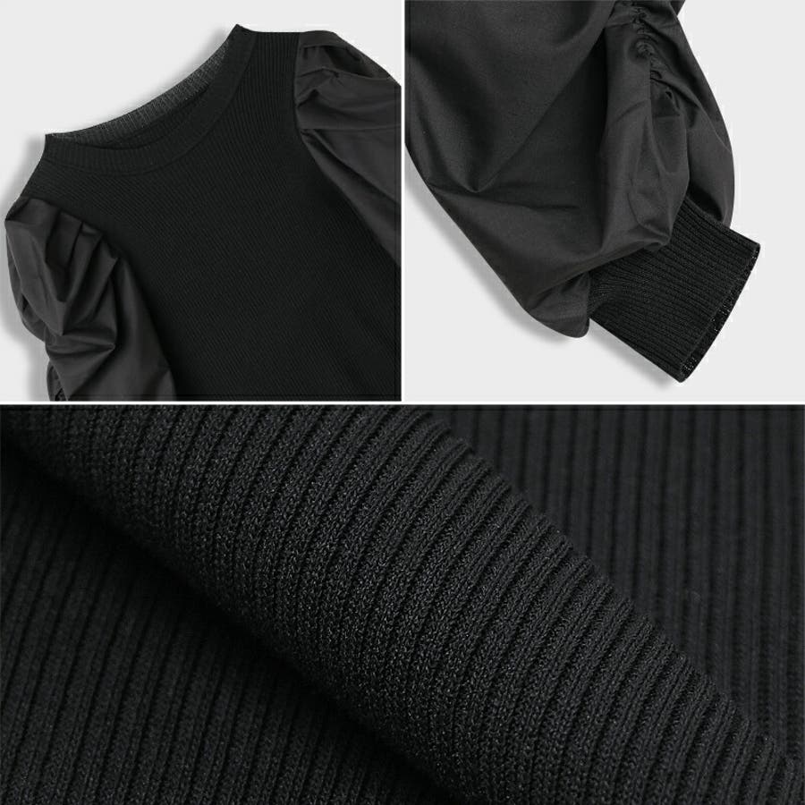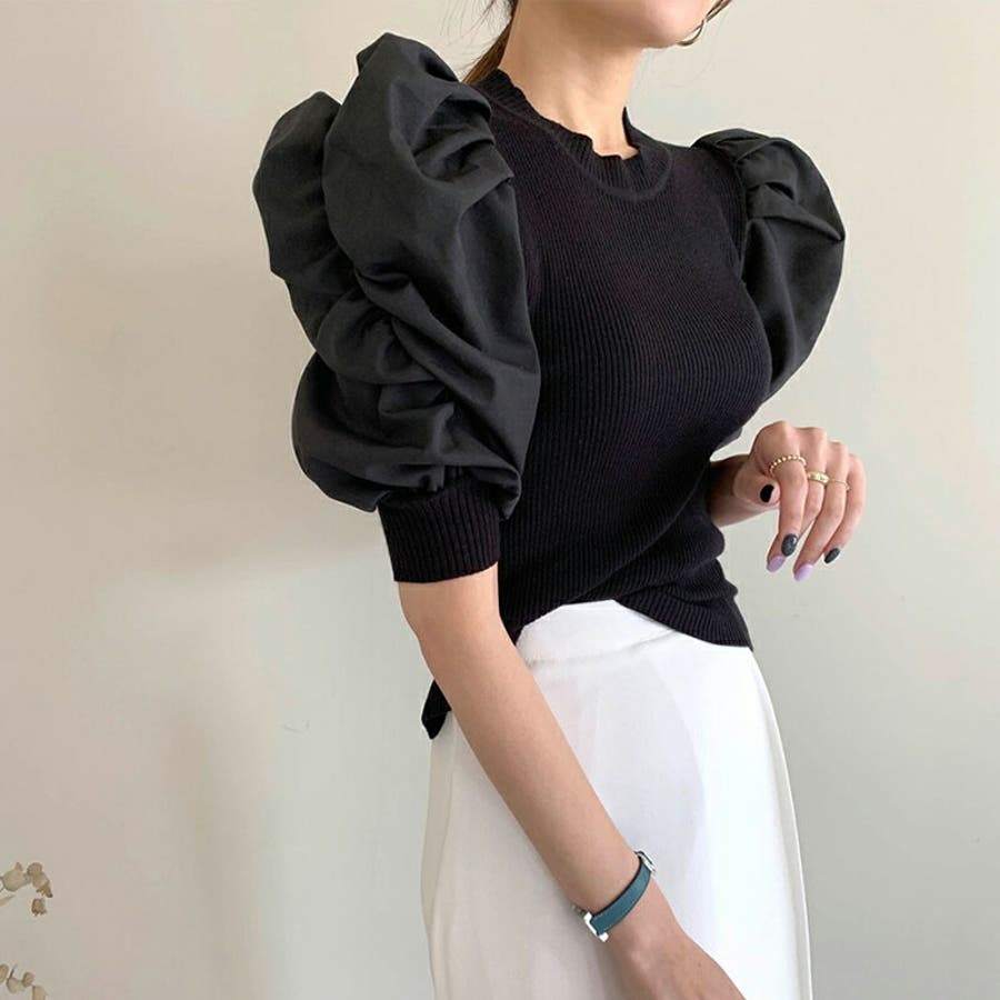 異素材ボリューム袖ドッキングニットプルオーバー 。