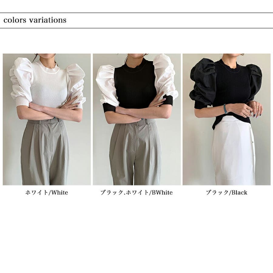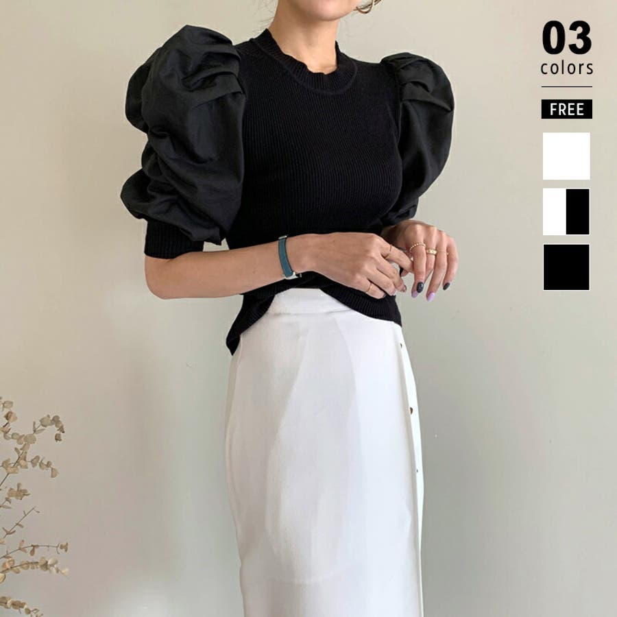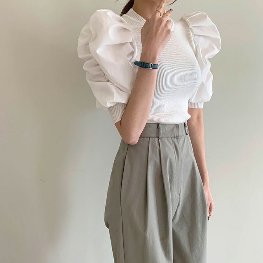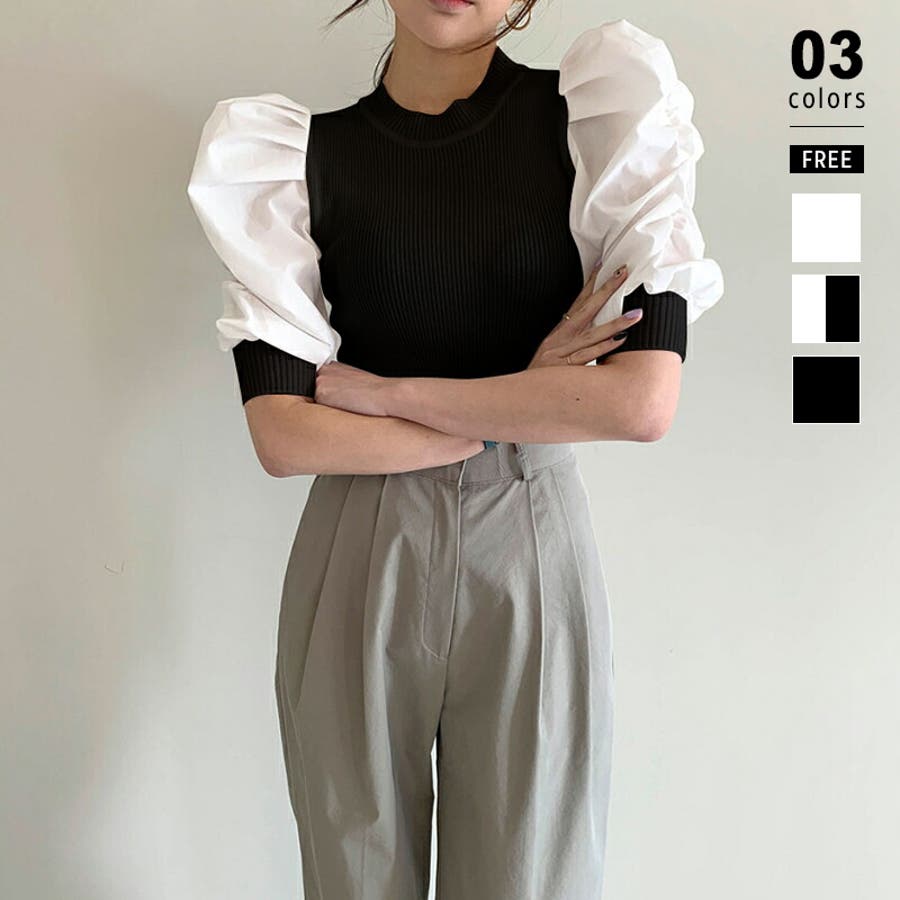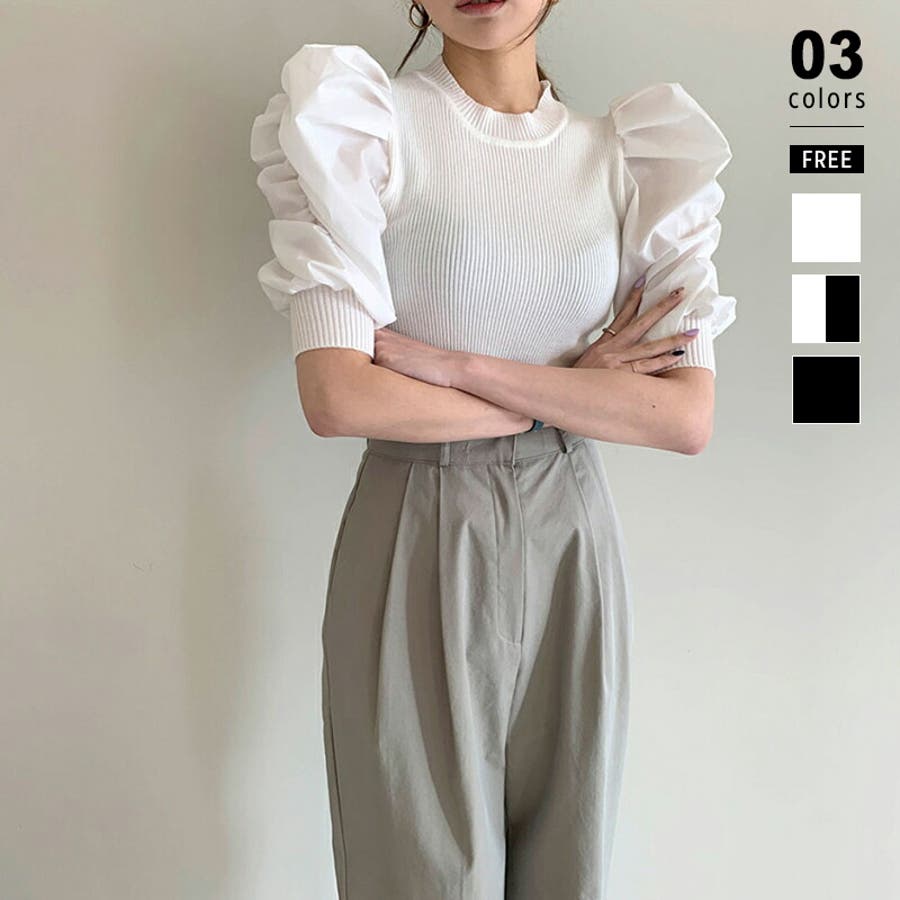 異素材ボリューム袖ドッキングニットプルオーバー 。