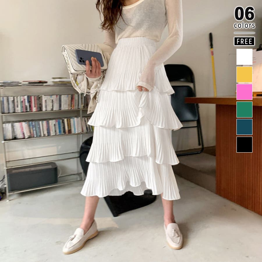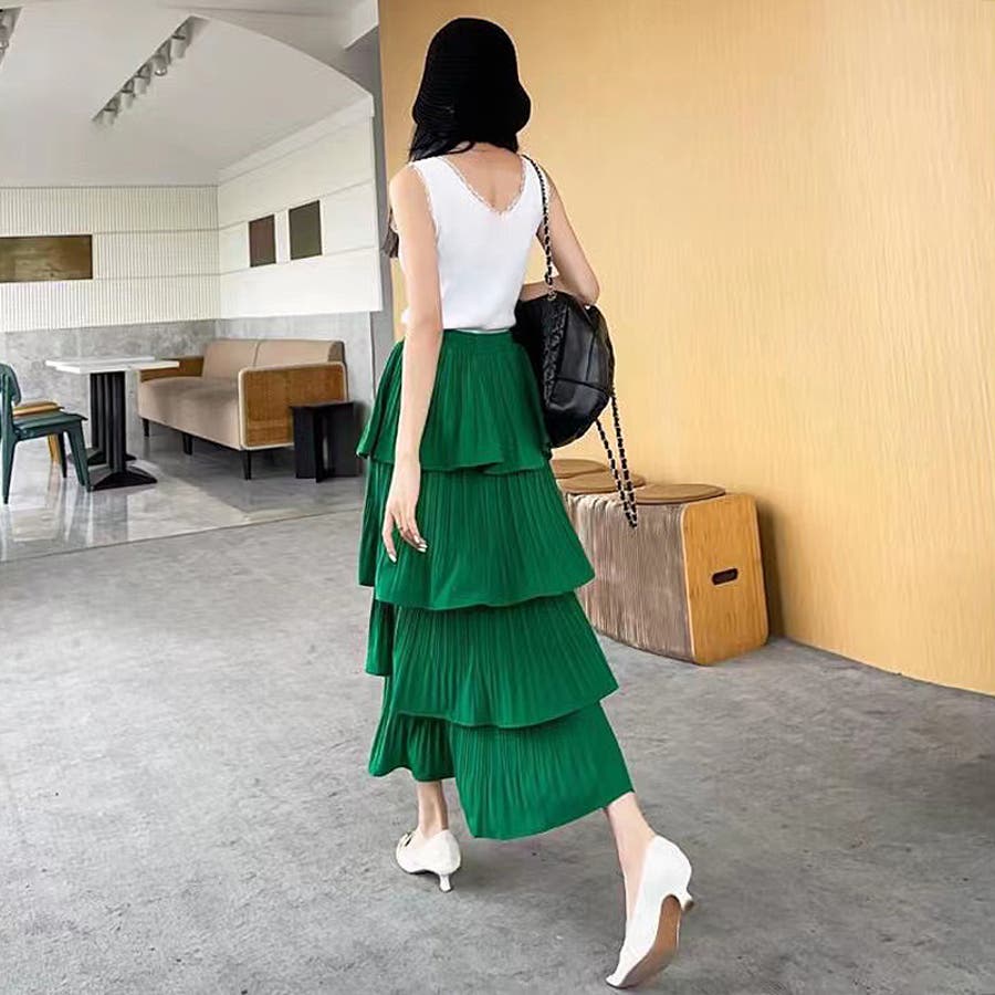 ティアードスカート ティアード スカート プリーツ ギャザー フレア ロングスカート ロング ロング丈 プリーツスカート フレアスカート フリル フリルスカート 4段 ボトムス ハイウエスト レディース ウエストゴム らくちん 楽ちん 楽チン ボリューム 着回し オフィス オフィスカジュアル 華やか カジュアル フェミニン 上品 大人 かわいい 可愛い 大人可愛い オトナ女子 おしゃれ オシャレ 通勤 通学 洗える 洗濯機で洗える トレンド ヒット 商品 おすすめ 服 ファッション コーデ プチプラ 高見え ママ ママコーデ 母 女性 ホワイト 白 グリーン 緑 ブラック 黒 イエロー 黄色 新作 aw 春物 夏物 秋物 春用 夏用 秋用 春秋 春 夏 秋 春服 夏服 秋服 韓国 韓国ファッション 10代 20代 30代 40代 50代 cocomomo ココモモ