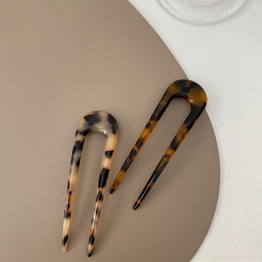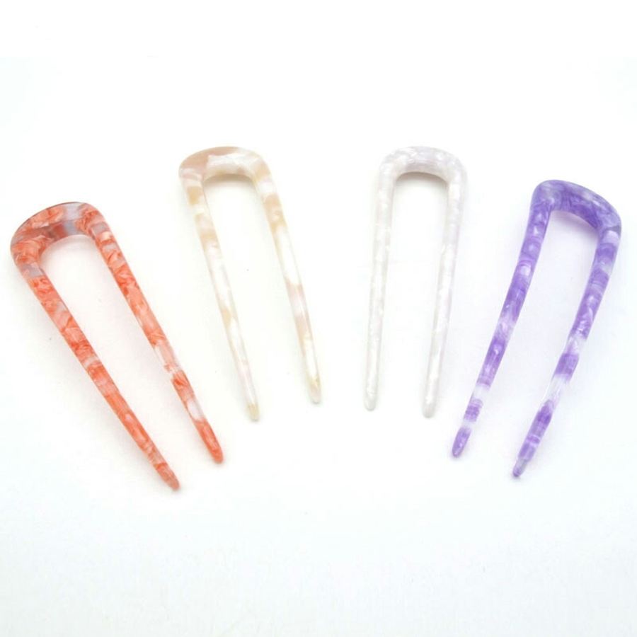 U字コーム かんざし ヘアピン ヘアアクセサリー ヘアアレンジ U字かんざし レディース クレセント プラスチック マーブル柄 大人 上品