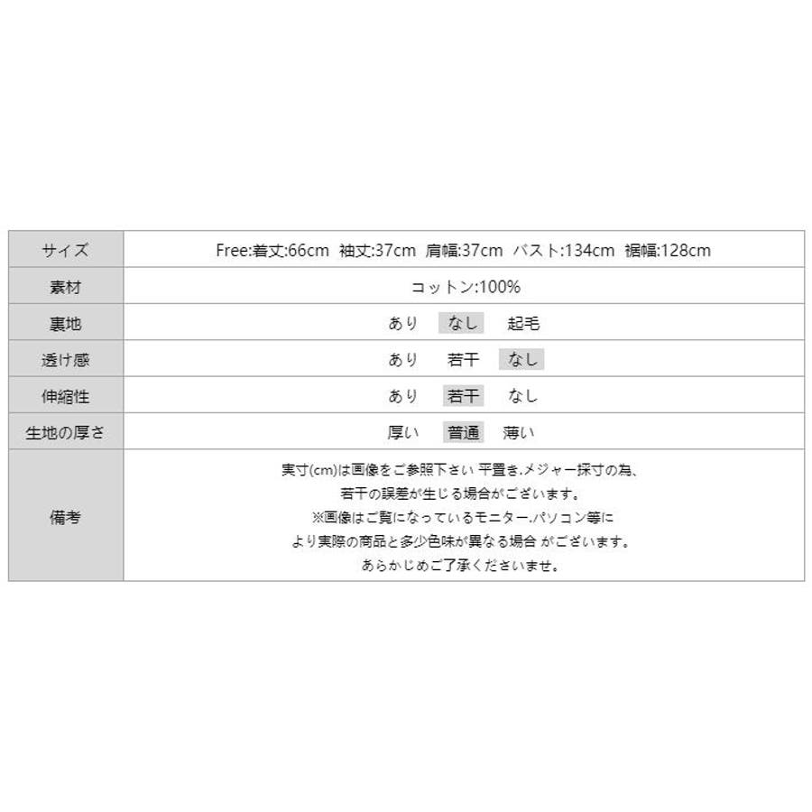 | サイズ | Free: 着丈 66cm 袖丈 37cm 肩幅 37cm バスト 134cm 裾幅 128cm |