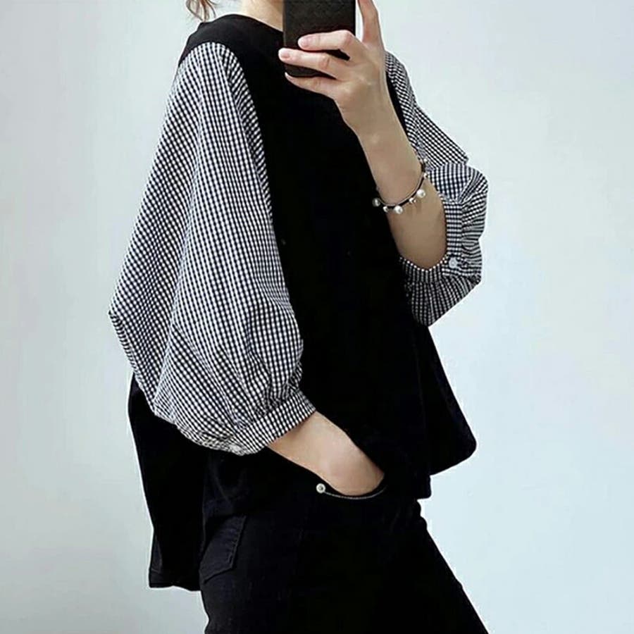 上品 切替 チェック柄 おしゃれ 可愛い ママコーデ 着回し 春 夏 秋 韓国 韓国ファッション 20代 30代 40代 50代 cocomomo ココモモ 春服 夏服