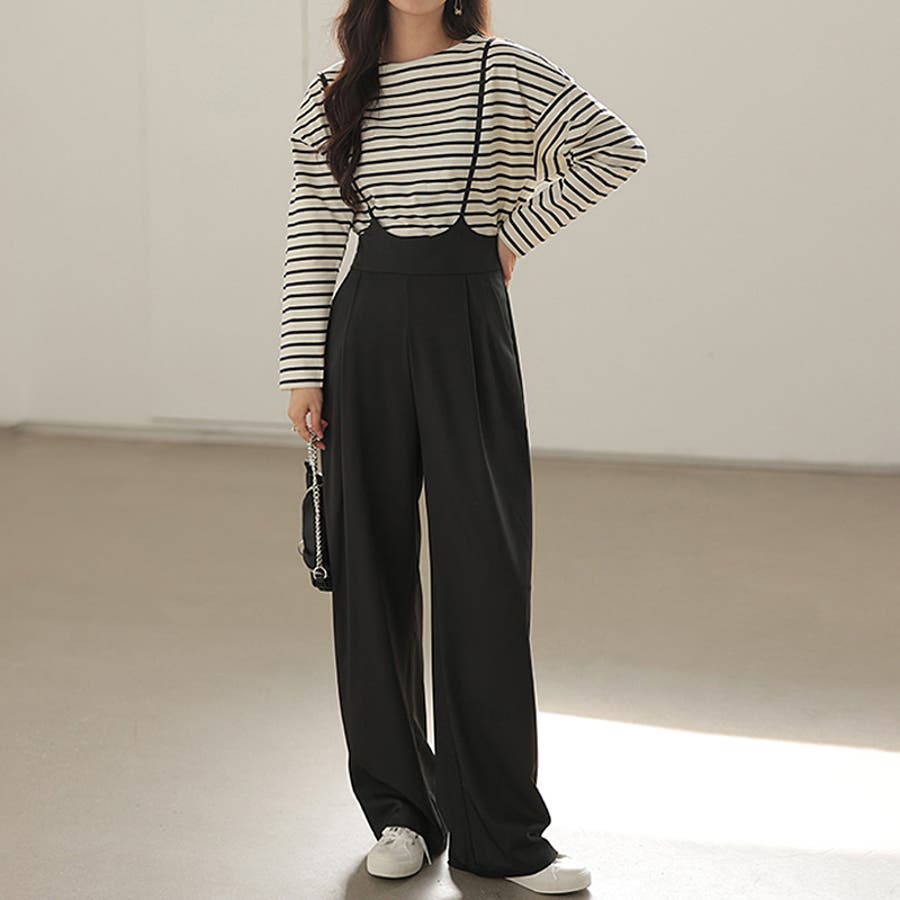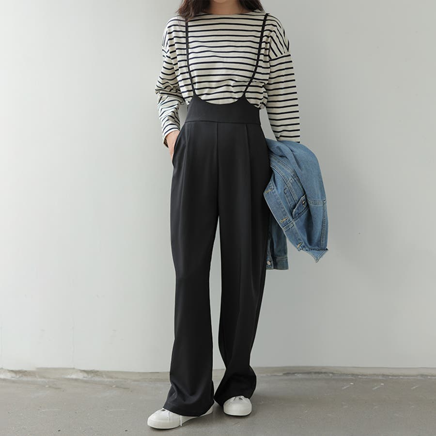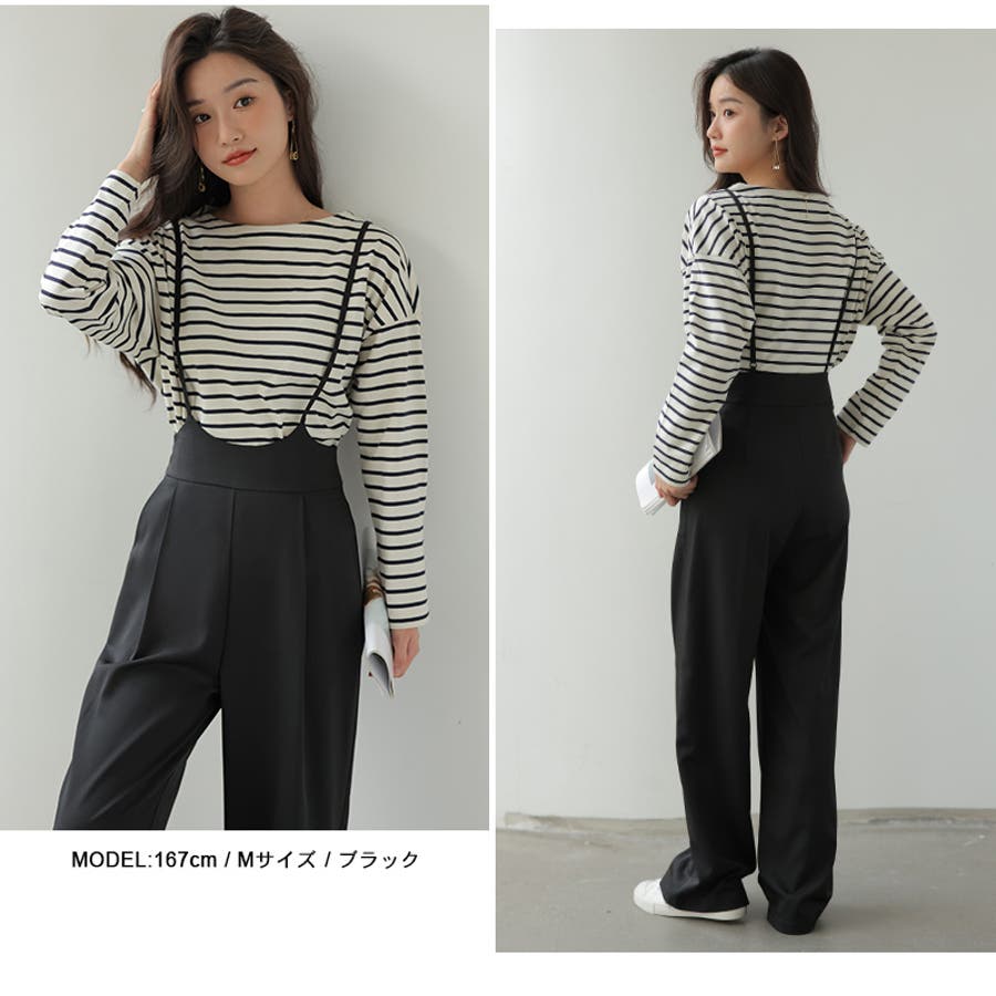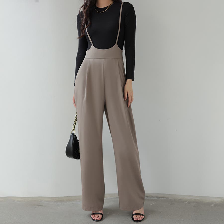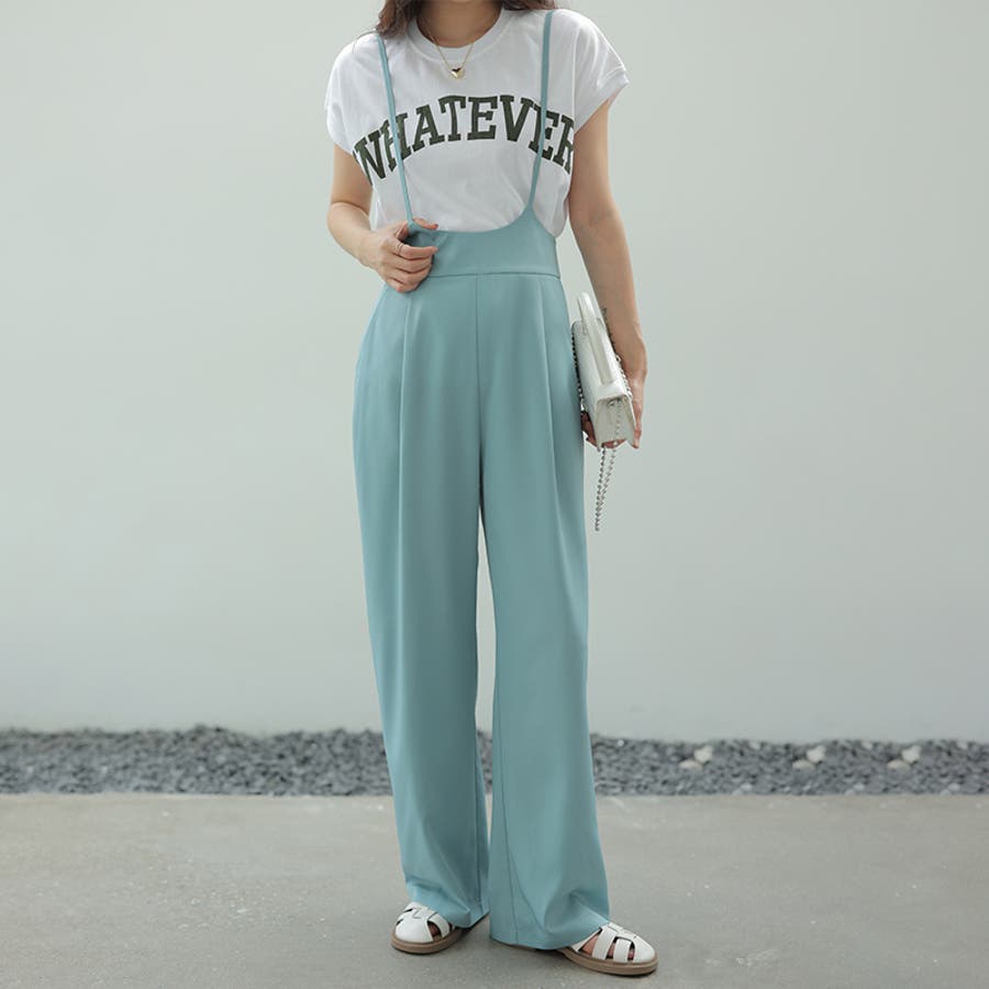 すらっと脚長 サロペットパンツ ハイウエストパンツ