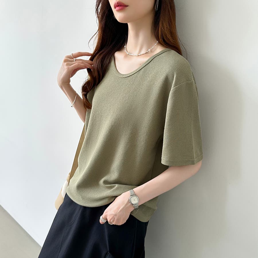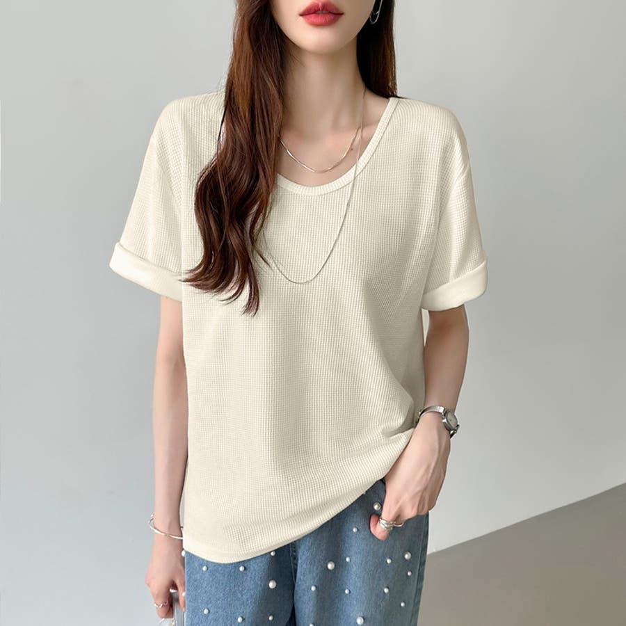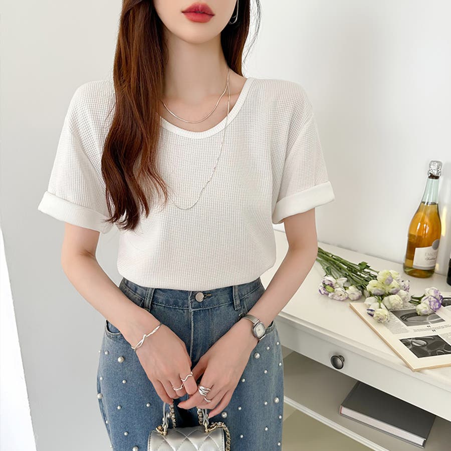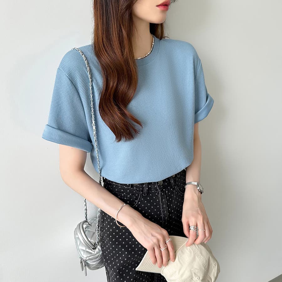 tシャツ ワッフルtシャツ 半袖 カットソー レディース ワッフル トップス vネック ラウンドネック Tシャツ ゆったり 体型カバー 二の腕カバー 二の腕 カバー 隠し プルオーバー 半袖tシャツ 半袖t 半袖tシャツ コットンtシャツ 半袖シャツ ティーシャツ v Vネック ワッフルカットソー コットン 綿 綿混 ポリエステル 涼しい やわらかい シンプル 無地 ベーシック ラインきれい ラウンド ドロップショルダー 伸縮性 ストレッチ 袖 袖口 ワイド 広め ネック tops tシャツ 細見え 着痩せ 着回し 1枚で決まる 夏トップス 夏トップスレディース 夏トップスレディース韓国 夏Tシャツ ワンマイルウェア お出かけ おでかけ 旅行 イベント 楽ちん リラックス カジュアル ナチュラル きれいめ キレイめ きれい め 綺麗め オトナ女子 大人 かわいい 可愛い 大人可愛い おしゃれ オシャレ 母 ママ ママコーデ 女性 プチプラ 高見え トレンド ヒット 商品 おすすめ 服 ファッション コーデ おすすめ トレンド ランキング 人気 フリー サイズ フリーサイズ ホワイト 白 グリーン 緑 ピンク オレンジ アイボリー スカイブルー 青 水色 ライトグレー グレー 灰色 ブラック 黒 白T 白tシャツ 黒t 黒tシャツ レディース春 サマー ワンツーコーデ 新作 春夏 春 夏 秋 春服 夏服 秋服 春物 夏物 秋物 韓国 韓国ファッション 10代 20代 30代 40代 50代 60代 cocomomo ココモモ