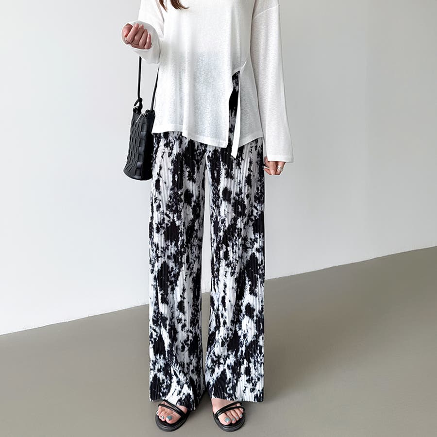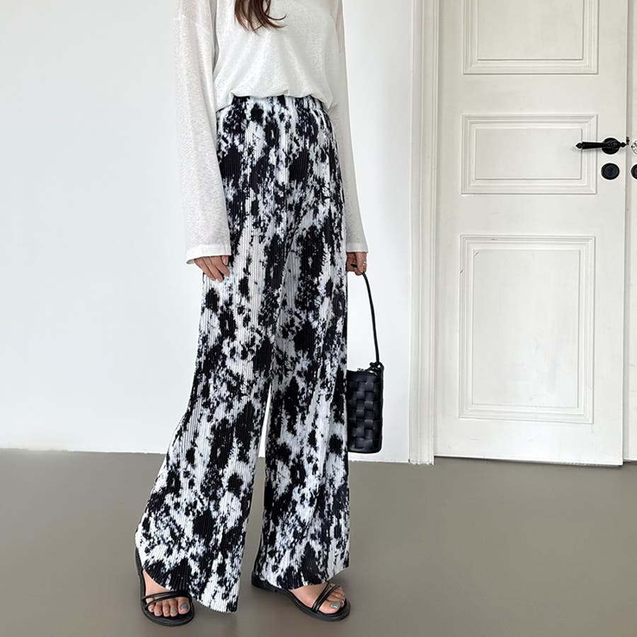 ワイドパンツ プリーツパンツ 夏 柄 イージーパンツ ワイド ストレート ゆったり レディース プリーツ パンツ 涼しい 夏用 ウエストゴム ボトムス リラックスパンツ ハイウエスト ニュアンス柄 マーブル柄 総柄 プリーツワイドパンツ リラックス リラックスパンツレディース セミワイドパンツ ハイウエストパンツ ハイウエストワイドパンツ ズボン 長ズボン ストレートパンツ ロングパンツ ロング 切りっぱなし 大きめ 大きい サイズ 大きいサイズ オーバーサイズ 細見え 着痩せ 脚長 カジュアル おしゃれ 大人 可愛い かわいい 大人可愛い ナチュラル リゾート ビーチ 旅行 部屋着 ルームウエア ワンマイル リラックスコーデ ママコーデ ホワイト 白 ブラック 黒 グリーン 緑 春夏 春 夏 春服 夏服 春物 夏物 韓国 韓国ファッション 10代 20代 30代 40代 50代 cocomomo ココモモ
