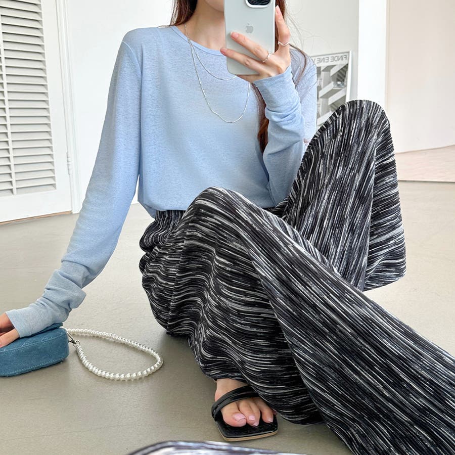 プリーツワイドパンツ。