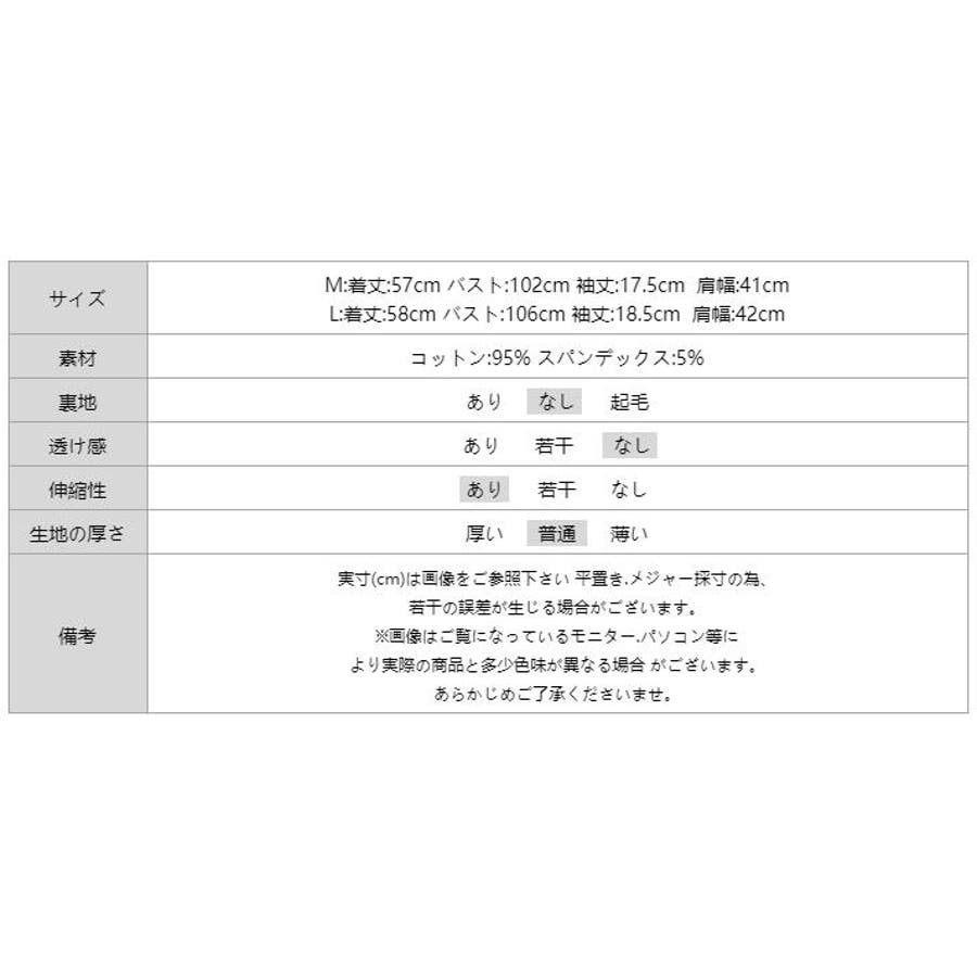| サイズ | M: 着丈 57cm バスト 102cm 袖丈 17.5cm 肩幅 41cm L: 着丈 58cm バスト 106cm 袖丈 18.5cm 肩幅 42cm |