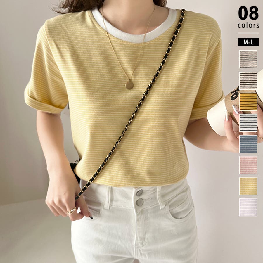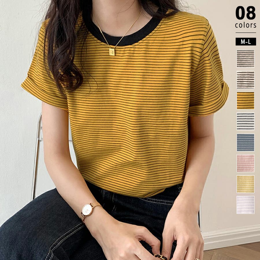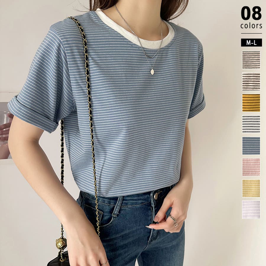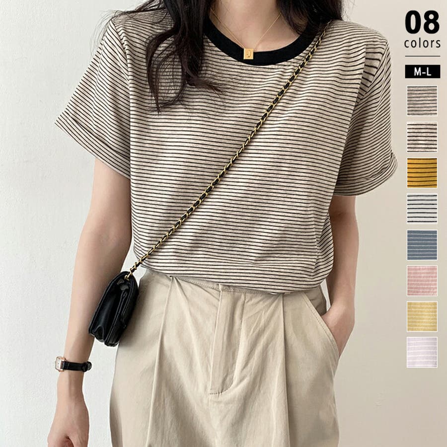Tシャツ ボーダートップス カットソーレディース 半袖 クルーネック ラウンドネック トップス ボーダー コットン カットソー ボーダーTシャツ
