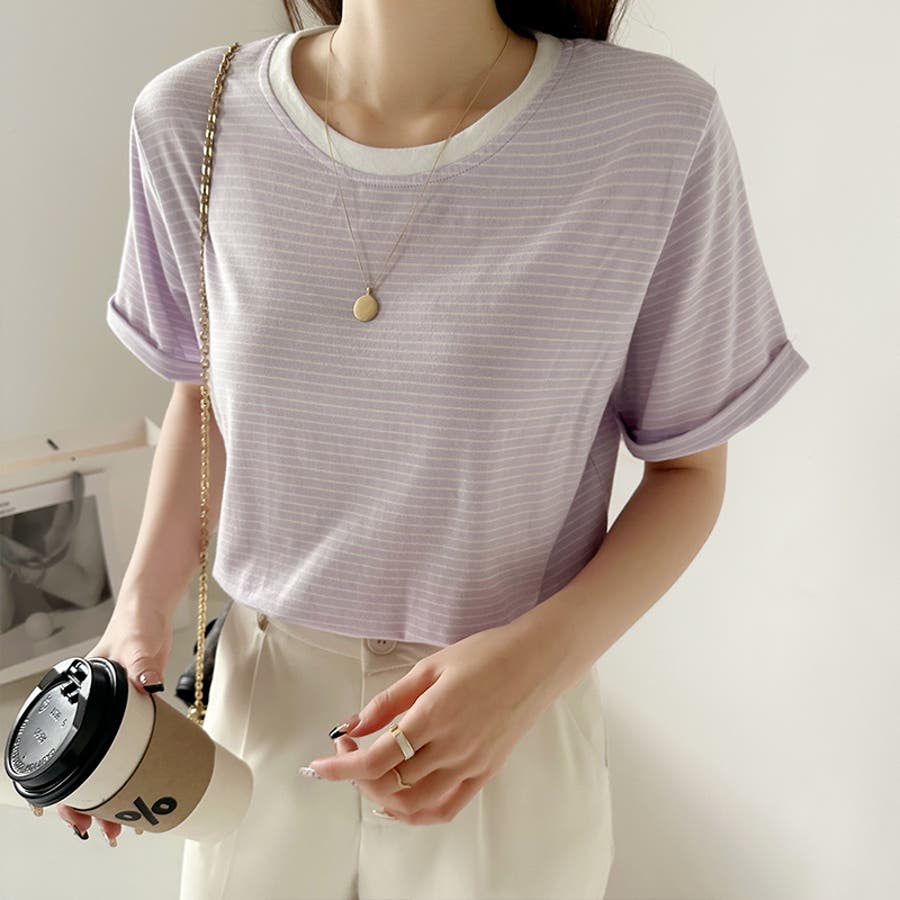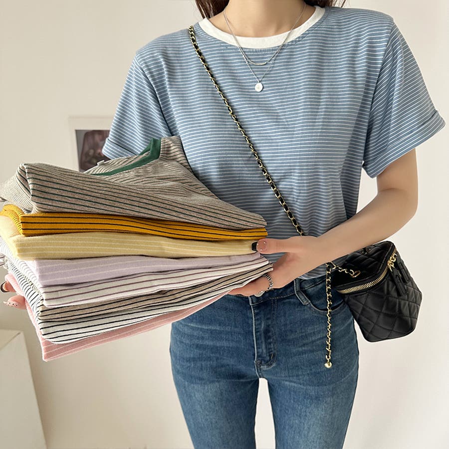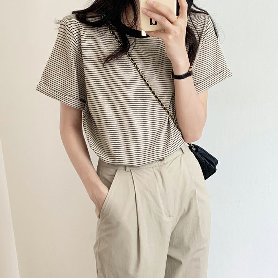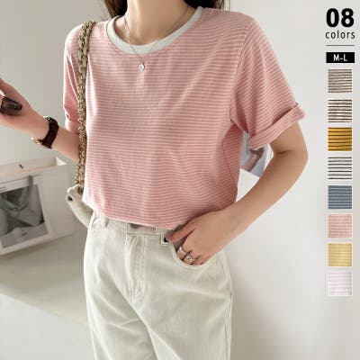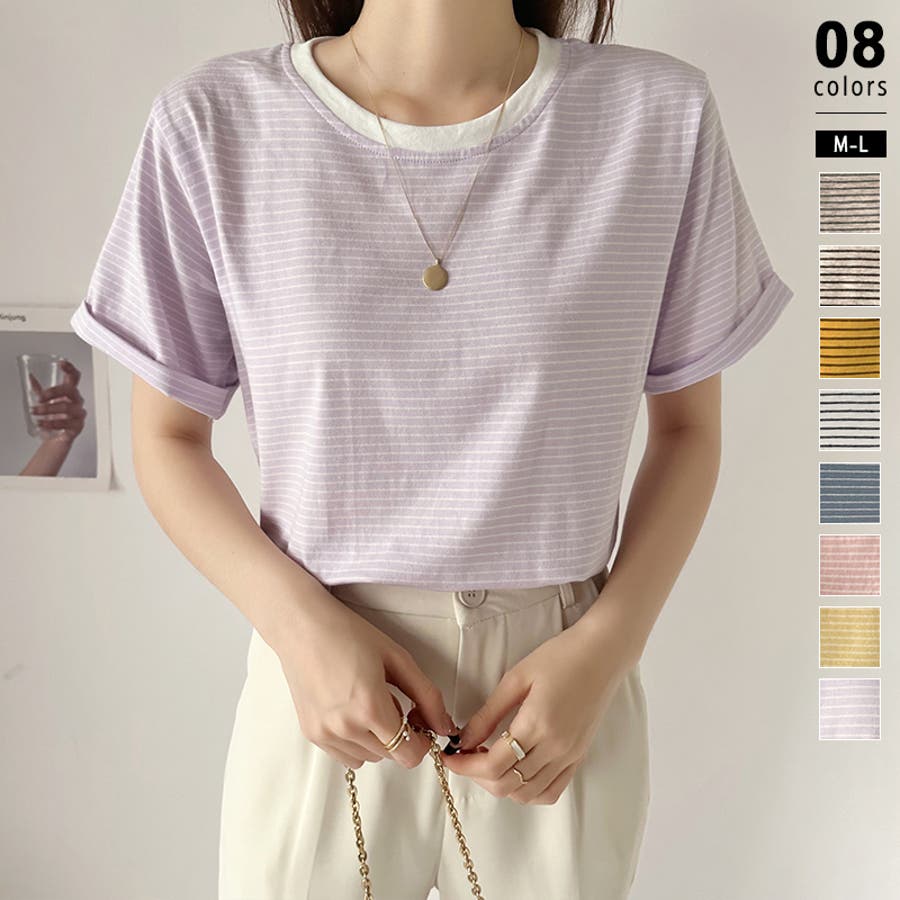 Tシャツ ボーダートップス カットソーレディース 半袖 クルーネック ラウンドネック トップス ボーダー コットン カットソー ボーダーTシャツ